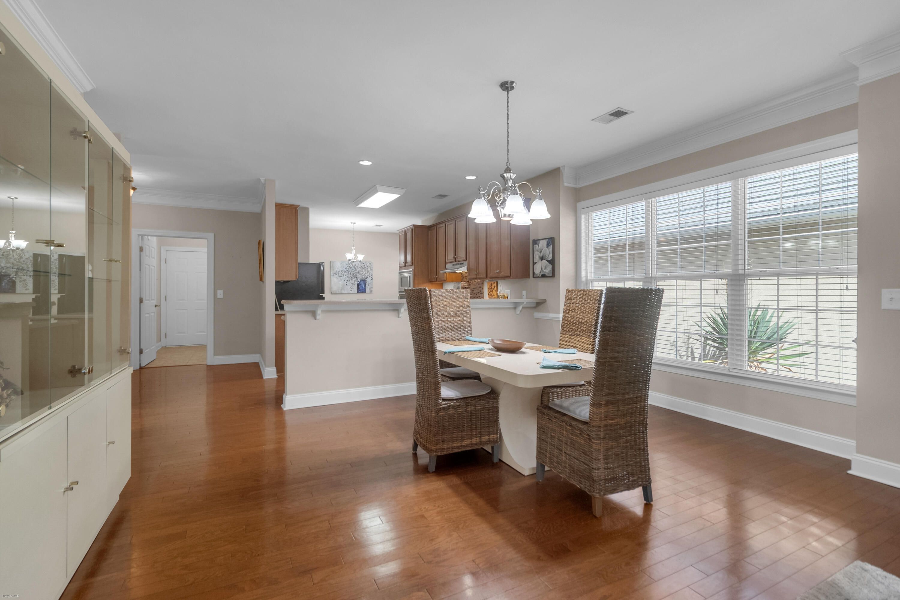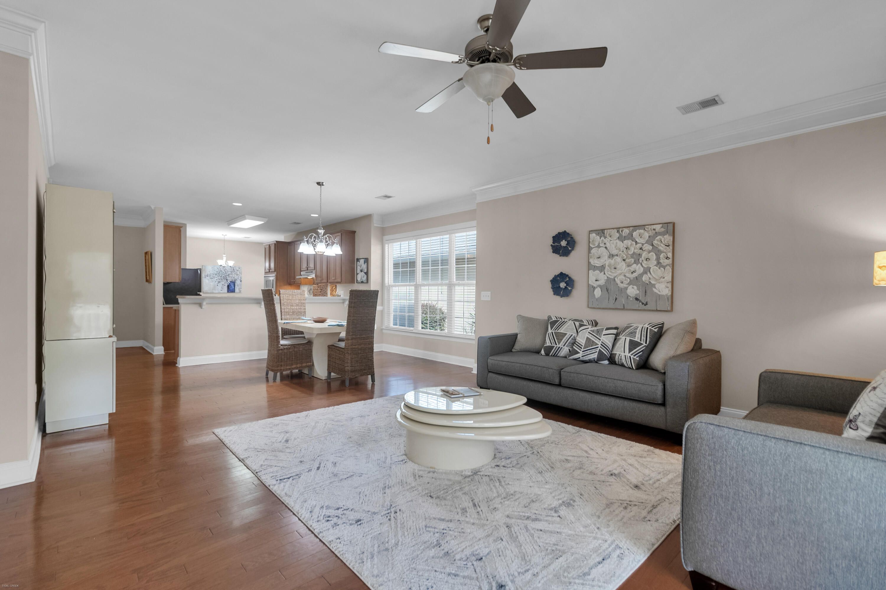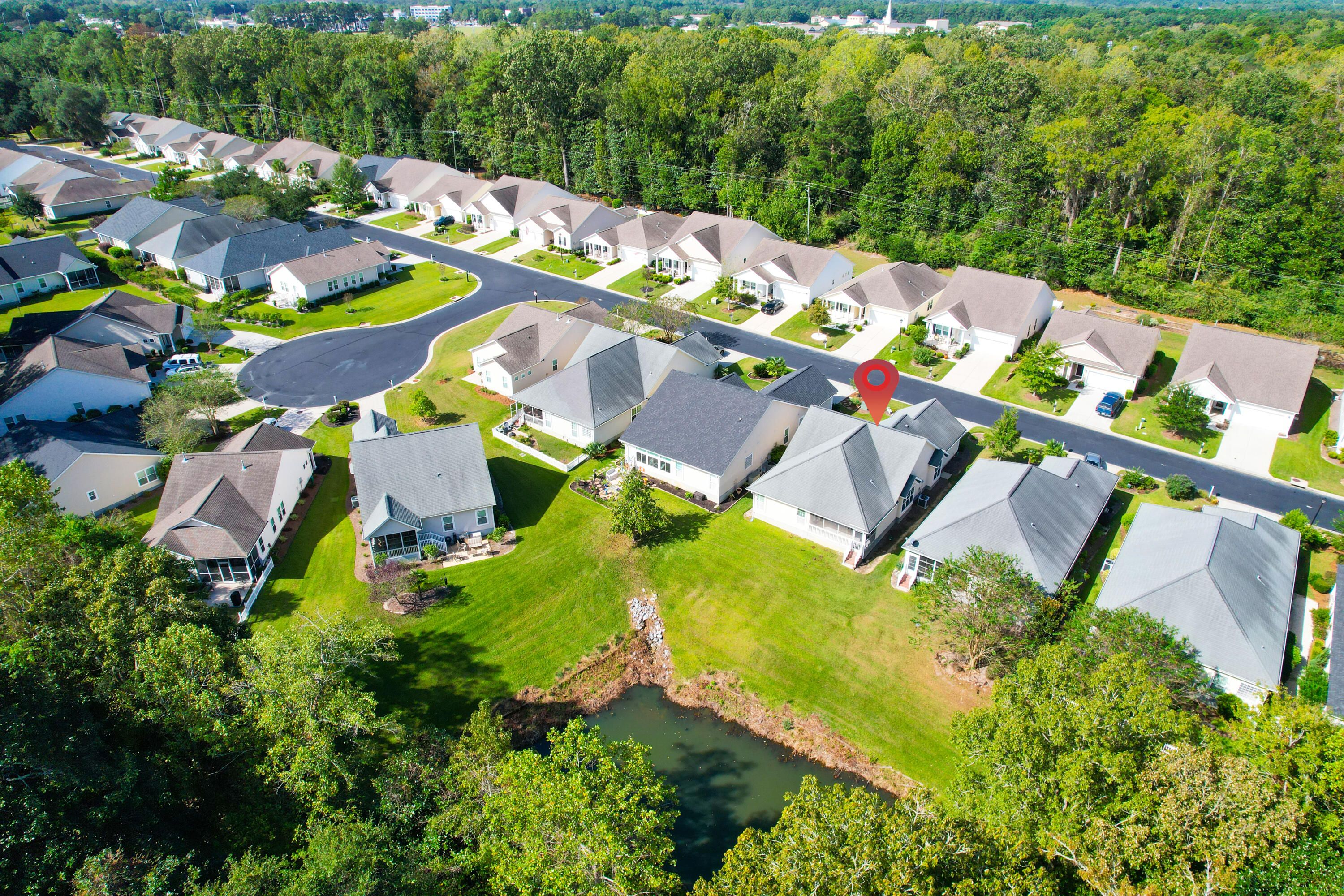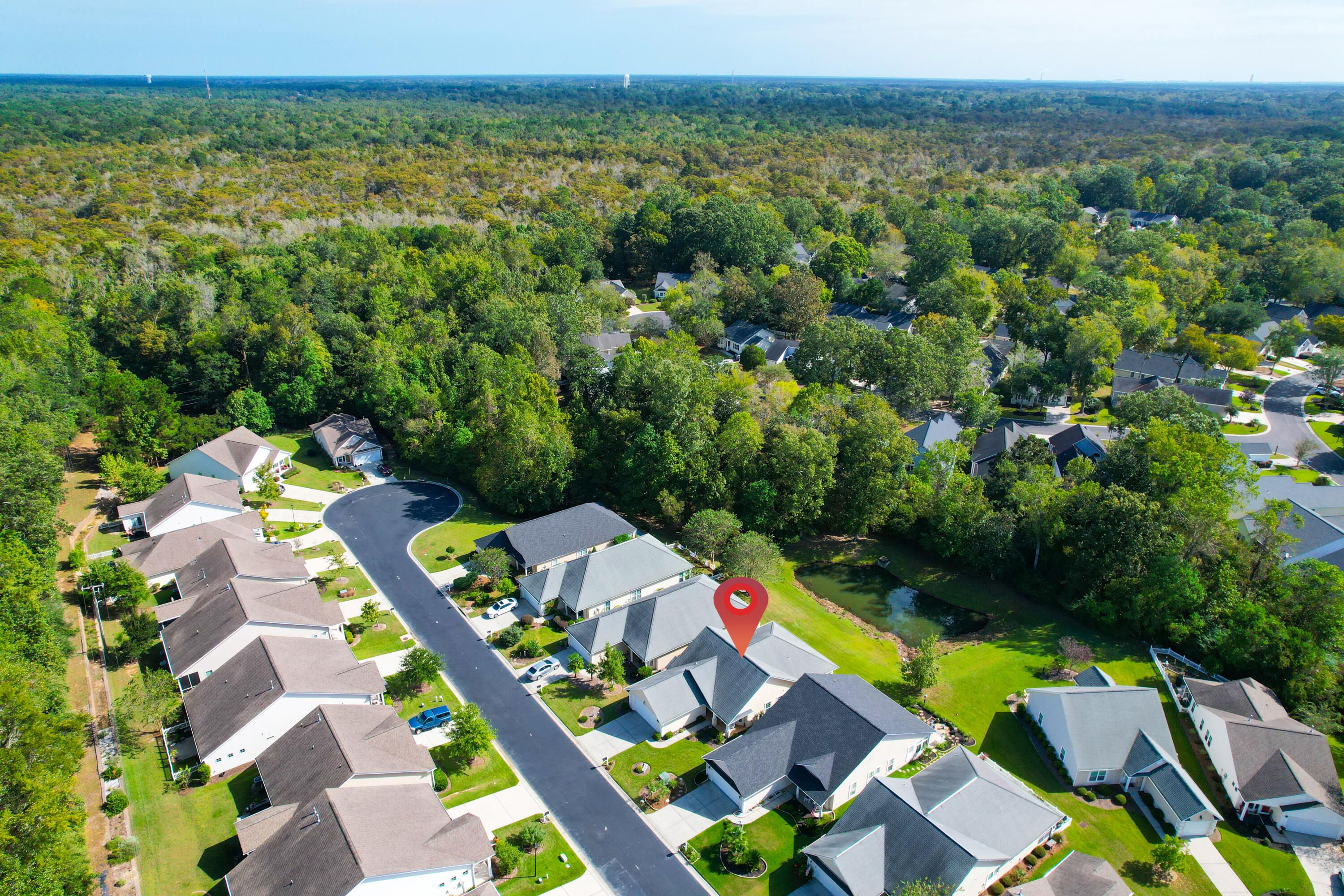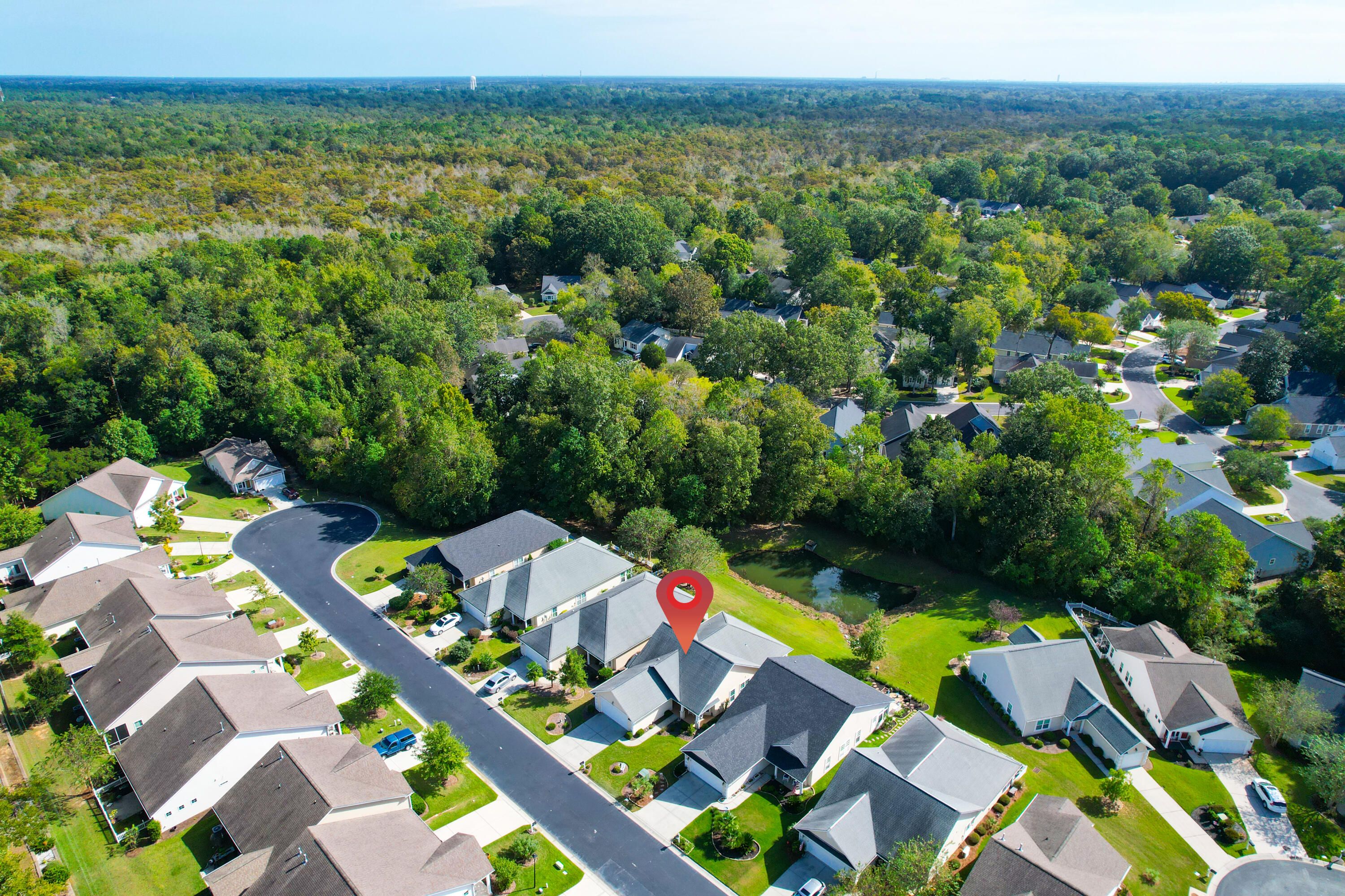 This warm & welcoming home in The Elms of Charleston, a premier 55+ gated community, is on a quiet street with no thru traffic - culs de sac on both ends. The home backs to a pond & woods, set back from the street, full front porch, rear screened porch overlooking the pond and mature trees. The interior is very comfortable with large living areas & bedrooms, a kitchen well suited for cooking & entertaining, or just enjoying casual dining in the bright & charming breakfast area. All rooms are spacious & light-filled: living/dining rm, large kitchen, owner's suite w/ walk-in closet and access to screen porch, 2 add'l good-sized bedrooms, laundry rm (w/ utility sink), & 2-car garage. A wonderful home for entertaining, house guests, and enjoyment of the screened porch in privacy.A wonderful home for entertaining, house guests, and enjoyment of the screened porch in privacy. The community has been well maintained and the landscaping continues to grow. The Elms of Charleston also has a number of amenities to choose from: Clubhouse, Pool, Tennis and Pickleball Courts. No traffic noise, close to shopping, dining, medical care, airport, downtown Charleston, & the Islands. It is an ideal 55+ Community with all the comforts of home, both inside and out. And it is move-in ready.