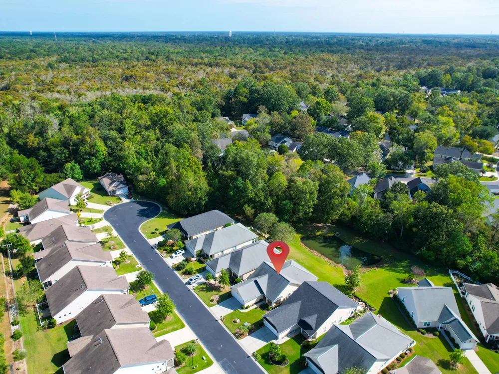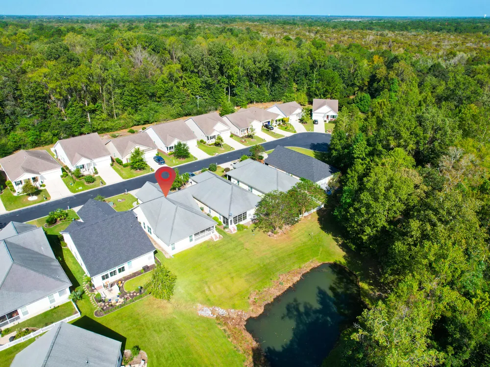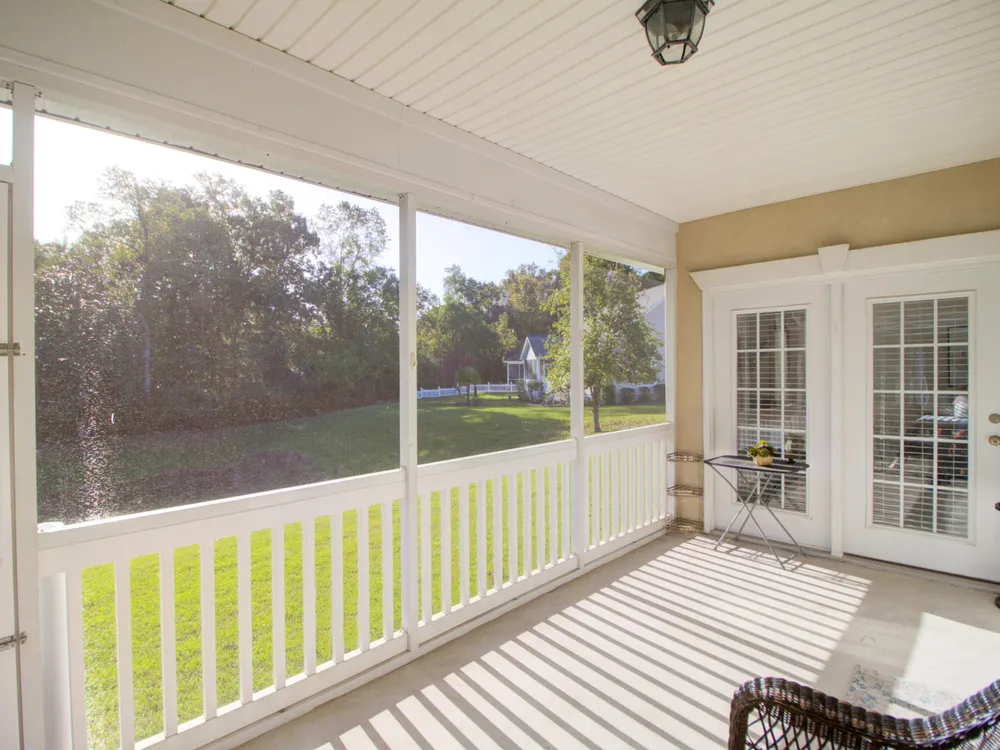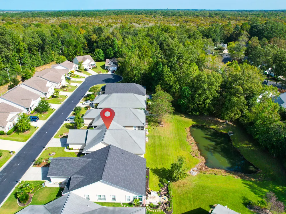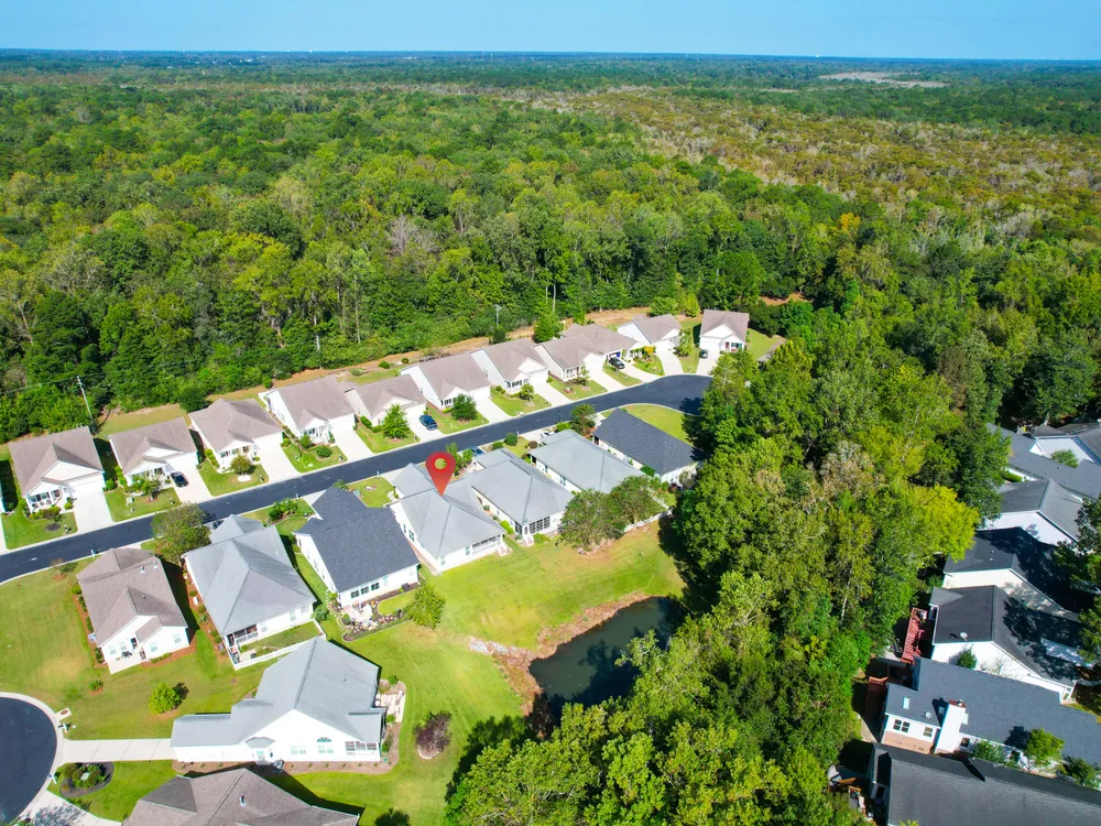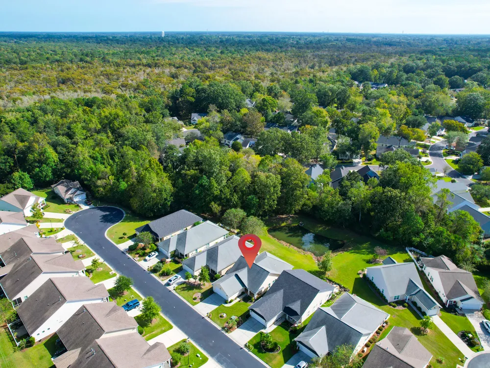 This warm & welcoming home in The Elms of Charleston, a premier 55+ gated community, is on a quiet street with no thru traffic - culs de sac on both ends. The home backs to a pond & woods, set back from the street, full front porch, rear screened porch overlooking the pond and mature trees. The interior is very comfortable with large living areas & bedrooms, a kitchen well suited for cooking & entertaining, or just enjoying casual dining in the bright & charming breakfast area. All rooms are spacious & light-filled: living/dining rm, large kitchen, owner's suite w/ walk-in closet and access to screen porch, 2 add'l good-sized bedrooms, laundry rm (w/ utility sink), & 2-car garage. A wonderful home for entertaining, house guests, and enjoyment of the screened porch in privacy.community that has been well maintained and the landscaping continues to grow. The Elms of Charleston also has a number of amenities to choose from: Clubhouse, Pool, Tennis and Pickleball Courts. No traffic noise, close to shopping, dining, medical care, airport, downtown Charleston, & the Islands. It is an ideal 55+ Community with all the comforts of home, both inside and out.
