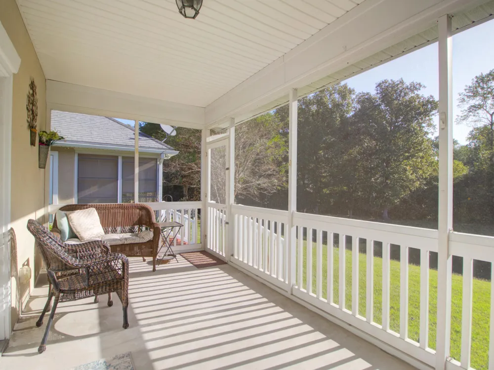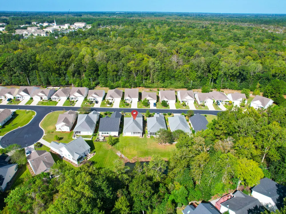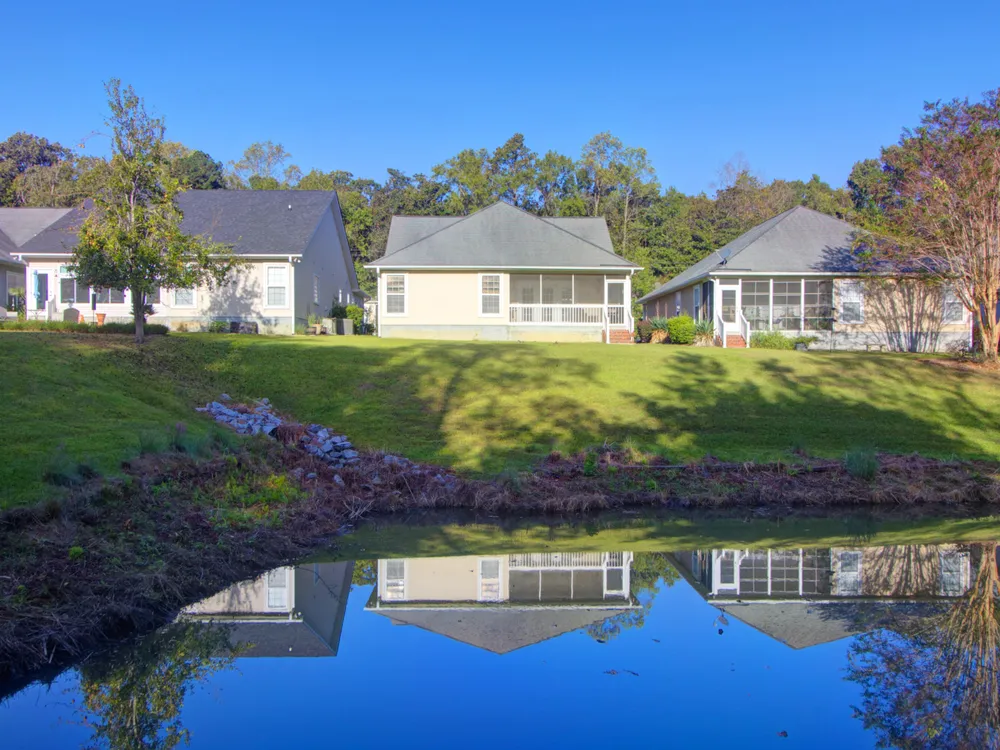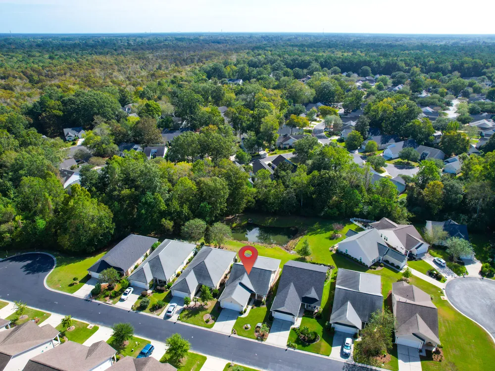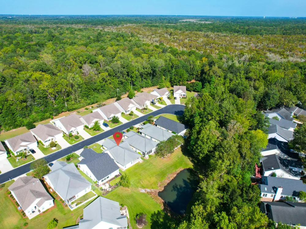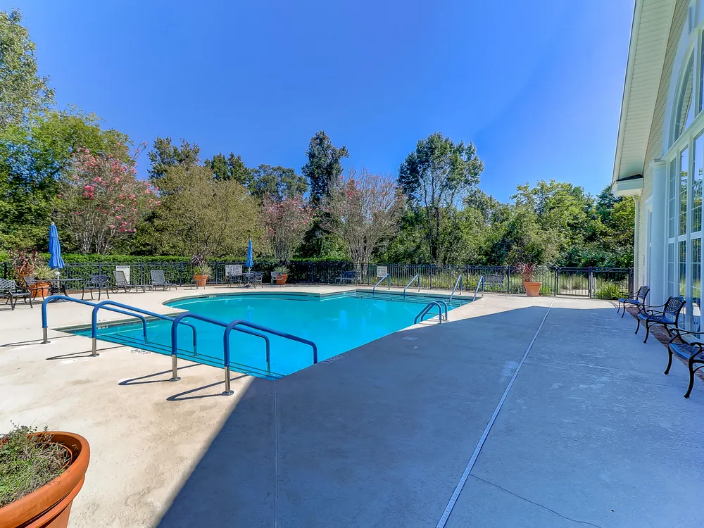 This warm & welcoming home in The Elms of Charleston, a premier 55+ gated community, is on a quiet street with no thru traffic - culs de sac on both ends. The home backs to a pond & woods, set back from the street, full front porch, rear screened porch overlooking the pond and mature trees. The interior is very comfortable with large living areas & bedrooms, a kitchen well suited for cooking & entertaining, or just enjoying casual dining in the bright & charming breakfast area. All rooms are spacious & light-filled: living/dining rm, large kitchen, owner's suite w/ walk-in closet and access to screen porch, 2 add'l good-sized bedrooms, laundry rm (w/ utility sink), & 2-car garage. A wonderful home for entertaining, house guests, and enjoyment of the screened porch in privacy.community that has been well maintained and the landscaping continues to grow. The Elms of Charleston also has a number of amenities to choose from: Clubhouse, Pool, Tennis and Pickleball Courts. No traffic noise, close to shopping, dining, medical care, airport, downtown Charleston, & the Islands. It is an ideal 55+ Community with all the comforts of home, both inside and out.