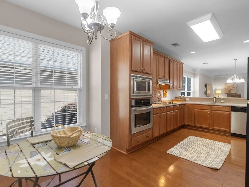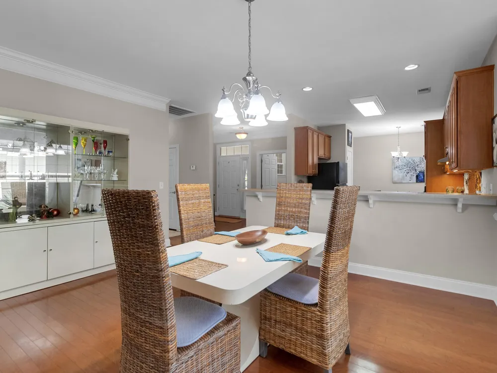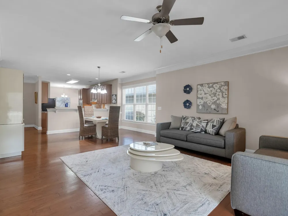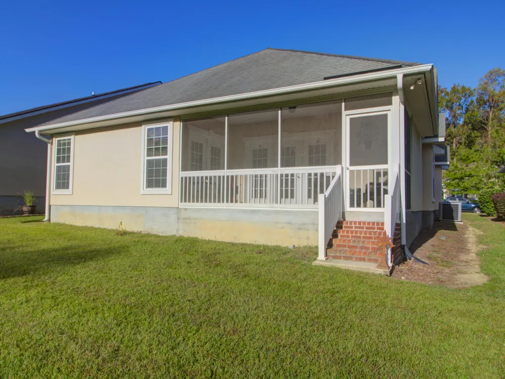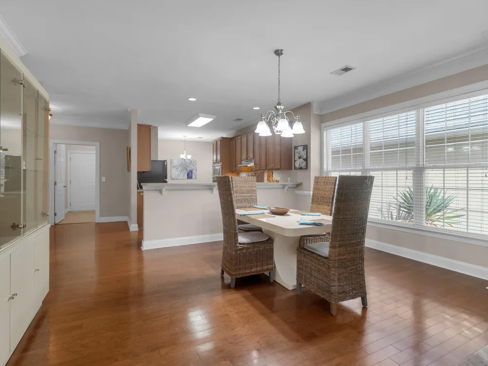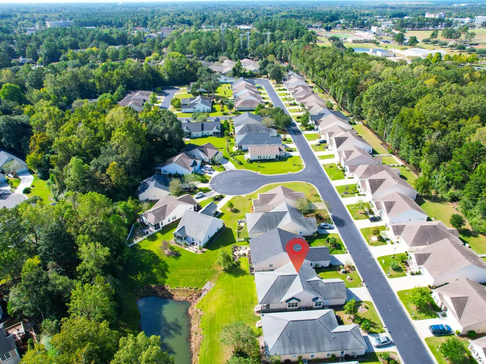 This warm & welcoming home in The Elms of Charleston, a premier 55+ gated community, is on a quiet street with no thru traffic - culs de sac on both ends. The home backs to a pond & woods, set back from the street, full front porch, rear screened porch overlooking the pond and mature trees. The interior is very comfortable with large living areas & bedrooms, a kitchen well suited for cooking & entertaining, or just enjoying casual dining in the bright & charming breakfast area. All rooms are spacious & light-filled: living/dining rm, large kitchen, owner's suite w/ walk-in closet and access to screen porch, 2 add'l good-sized bedrooms, laundry rm (w/ utility sink), & 2-car garage. A wonderful home for entertaining, house guests, and enjoyment of the screened porch in privacy.community that has been well maintained and the landscaping continues to grow. The Elms of Charleston also has a number of amenities to choose from: Clubhouse, Pool, Tennis and Pickleball Courts. No traffic noise, close to shopping, dining, medical care, airport, downtown Charleston, & the Islands. It is an ideal 55+ Community with all the comforts of home, both inside and out.