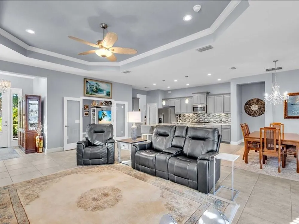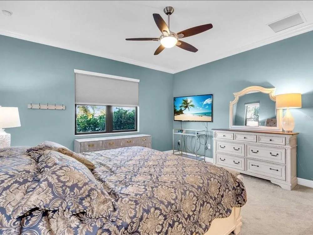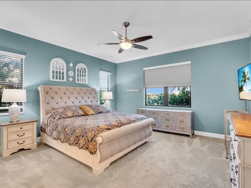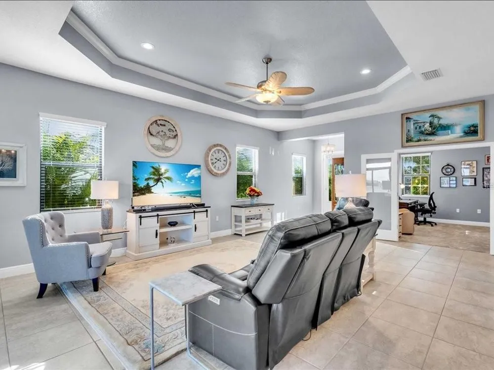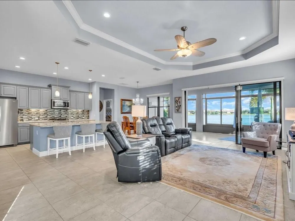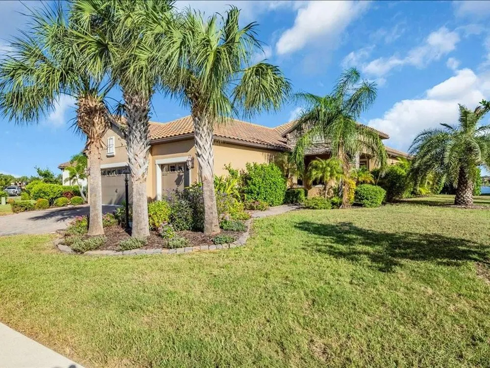 This is the house you have been waiting for! Located in Boca Royale, this luxurious home sits on an oversized lot and offers one of the most expansive water views for your pleasure. With 3 spacious bedrooms, 2 baths, a den, and a 300 sq ft All-Season Room overlooking the water, it is truly a private oasis. The modern kitchen features pull-outs in the cabinets, attractive Quartz countertops, a walk-in pantry, under-cabinet lighting, a custom backsplash, and a Brazilian granite island with ample room for seating. The Great Room is accentuated by crown molding tracing the lines of the tray ceiling and includes a ceiling fan, while the dining room is large enough for a rectangular table to seat eight, illuminated by a beautiful crystal chandelier. The generous office/den is separated from the Great Room by French doors to provide privacy, and the primary bedroom offers a large ceiling fan with a custom solid oak barn door leading to the bathroom, which features quartz countertops and a Riverstone floor in the Roman shower. The landscaping is spectacular with eight palm trees thoughtfully planted for privacy in both the front and back yards, and the backyard showcases special grass planted by the homeowner for a lush look. An underground sprinkler system services both yards, and all flower beds are equipped with a drip watering system. The three-car garage provides extra shelving for storage and includes a sink. Residents of Boca Royale enjoy access to a resort-style pool and clubhouse, a newly renovated championship golf course, tennis and pickleball courts, and a state-of-the-art fitness center, all within a welcoming gated community spread across 1,000 acres of oak trees and nature preserves—a breathtaking backdrop for relaxation and recreation. At the heart of the community is the Georgian-style clubhouse, offering fine and casual dining alongside an active calendar filled with wine dinners, trivia nights, and themed events for easy socializing. Walking and biking trails, a dog park, and outdoor recreation areas invite residents to enjoy the fresh air, while Manasota Key’s white sand beaches, Venice Island’s boutiques and restaurants, and the shops and entertainment of Wellen Park are just minutes away. With nearby marinas, parks, and everyday conveniences, Boca Royale perfectly blends coastal charm with a vibrant, connected lifestyle, making it the ideal place to call home. CALL TODAY FOR A SHOWING!