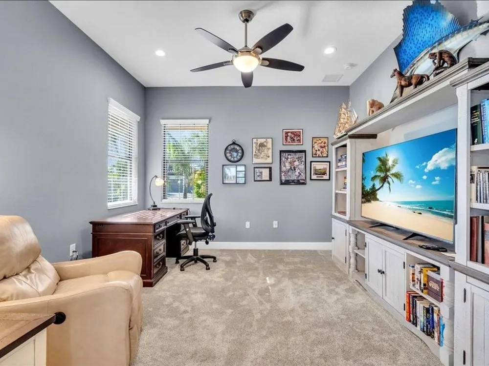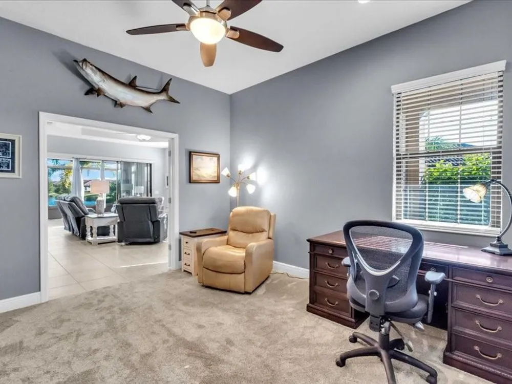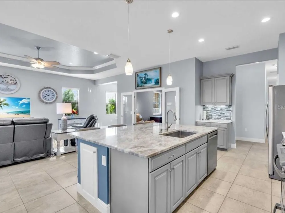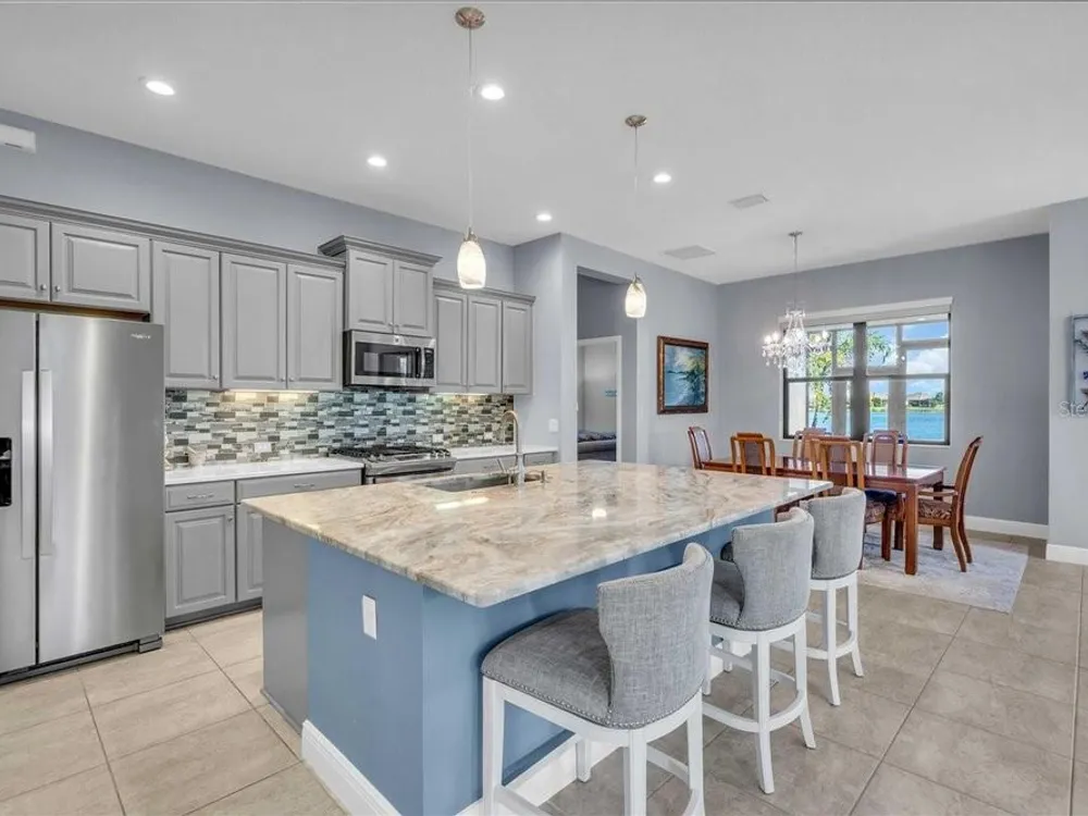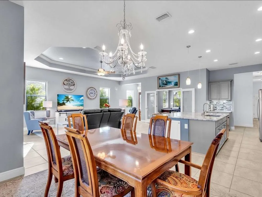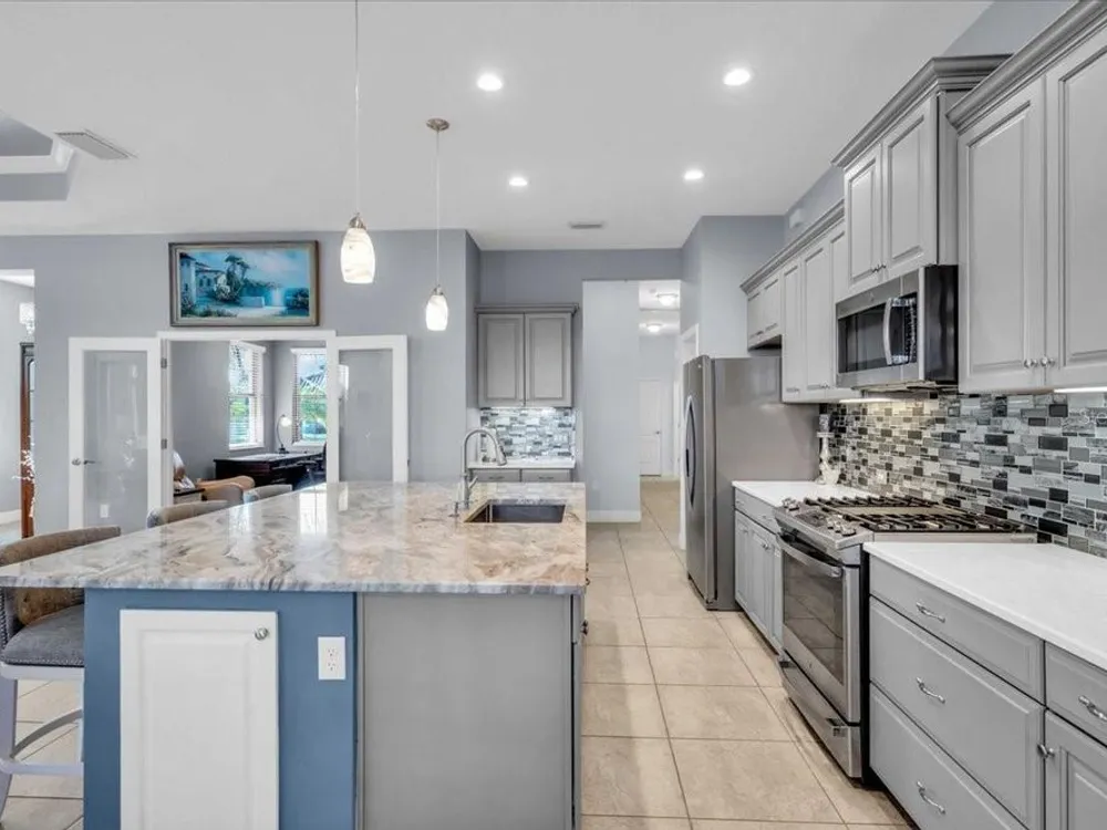 This is the house you have been waiting for! Located in Boca Royale, this luxurious home sits on an oversized lot and offers one of the most expansive water views for your pleasure. With 3 spacious bedrooms, 2 baths, a den, and a 300 sq ft All-Season Room overlooking the water, it is truly a private oasis. The modern kitchen features pull-outs in the cabinets, attractive Quartz countertops, a walk-in pantry, under-cabinet lighting, a custom backsplash, and a Brazilian granite island with ample room for seating. The Great Room is accentuated by crown molding tracing the lines of the tray ceiling and includes a ceiling fan, while the dining room is large enough for a rectangular table to seat eight, illuminated by a beautiful crystal chandelier. The generous office/den is separated from the Great Room by French doors to provide privacy, and the primary bedroom offers a large ceiling fan with a custom solid oak barn door leading to the bathroom, which features quartz countertops and a Riverstone floor in the Roman shower. The landscaping is spectacular with eight palm trees thoughtfully planted for privacy in both the front and back yards, and the backyard showcases special grass planted by the homeowner for a lush look. An underground sprinkler system services both yards, and all flower beds are equipped with a drip watering system. The three-car garage provides extra shelving for storage and includes a sink. Residents of Boca Royale enjoy access to a resort-style pool and clubhouse, a newly renovated championship golf course, tennis and pickleball courts, and a state-of-the-art fitness center, all within a welcoming gated community spread across 1,000 acres of oak trees and nature preserves—a breathtaking backdrop for relaxation and recreation. At the heart of the community is the Georgian-style clubhouse, offering fine and casual dining alongside an active calendar filled with wine dinners, trivia nights, and themed events for easy socializing. Walking and biking trails, a dog park, and outdoor recreation areas invite residents to enjoy the fresh air, while Manasota Key’s white sand beaches, Venice Island’s boutiques and restaurants, and the shops and entertainment of Wellen Park are just minutes away. With nearby marinas, parks, and everyday conveniences, Boca Royale perfectly blends coastal charm with a vibrant, connected lifestyle, making it the ideal place to call home. CALL TODAY FOR A SHOWING!