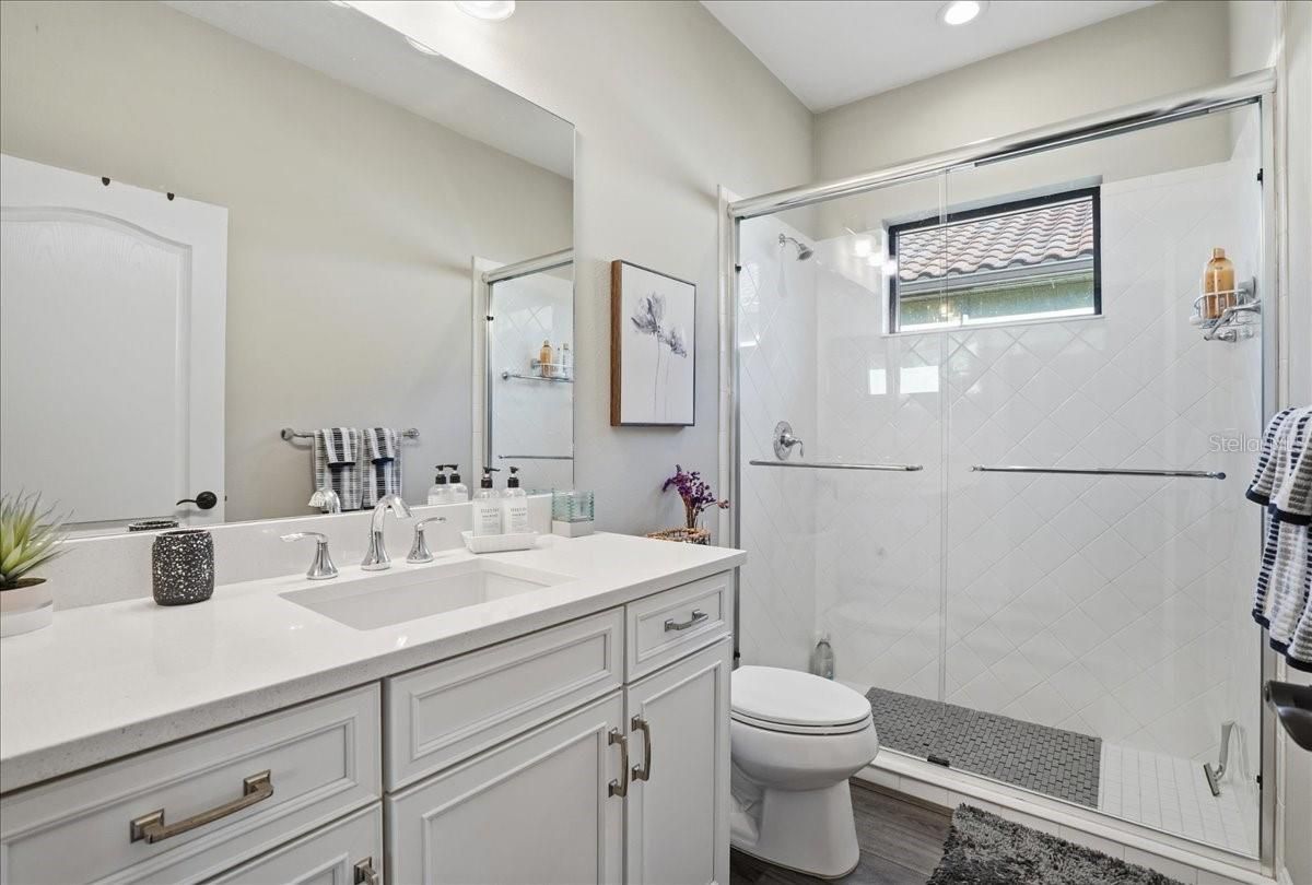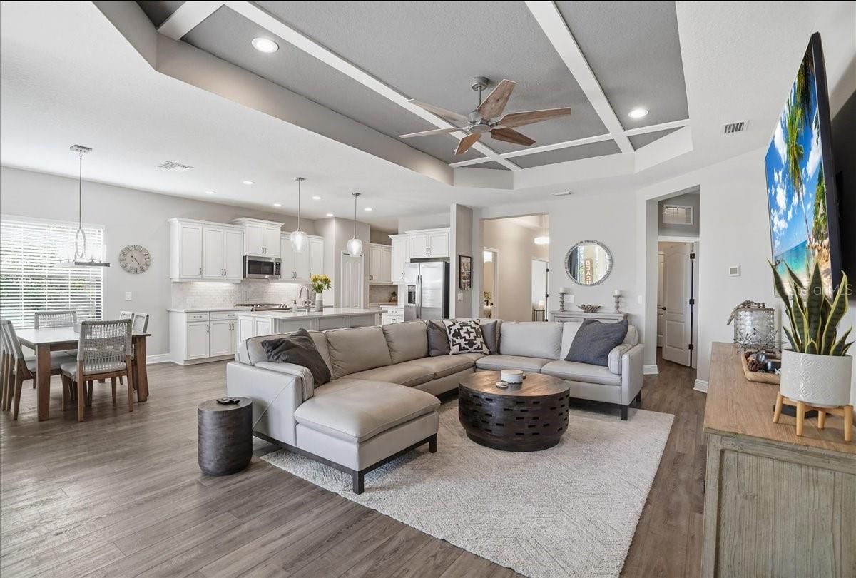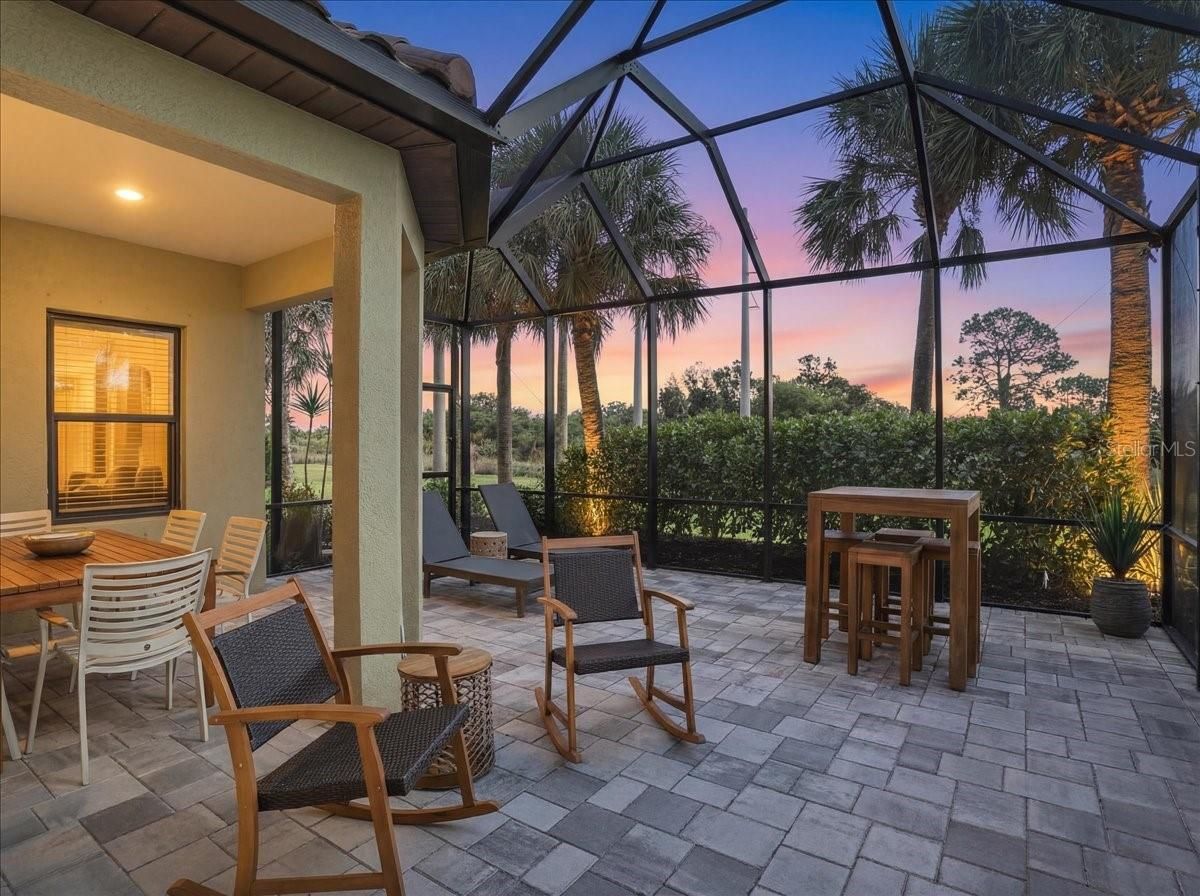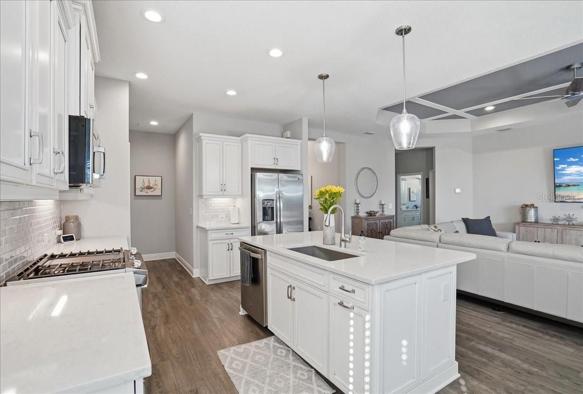Nestled in a vibrant, amenity-rich golf course community, this stunning home welcomes you with an upscale neutral design and a thoughtfully planned split floorplan for maximum privacy. A paver driveway and walk-way leads to a bright, open interior featuring luxury vinyl floors and an island kitchen appointed with quartz counters, a gas stove, stainless steel appliances, and a convenient butler’s pantry. This open concept floorplan features a flex room that adds versatility for a home office, hobby space, or guest retreat. Step outside to the tranquil extended lanai, perfectly set up for an outdoor kitchen and ideal for relaxed Florida living. Residents enjoy an impressive array of community features, including a newly renovated 18-hole golf course, driving range, putting green, pro shop, sports bar, restaurant, outdoor pavilion, social director with planned events, clay tennis courts, pickleball courts, fitness room, resort-style pool, tiki bar, and clubhouse. All of this is just minutes from historic Dearborn Street, Englewood Beach, and Manasota Key Beach—offering the perfect blend of luxury, comfort, and coastal convenience.