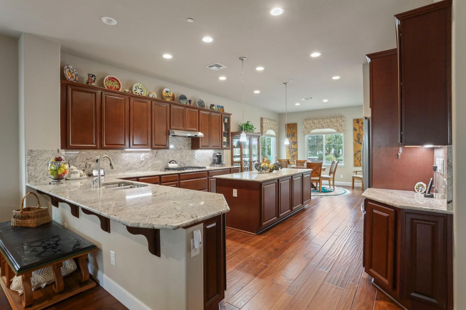 - Bedroom on Main Level, Dining Room, Family Room Lower Level, Primary Bedroom, Kitchen