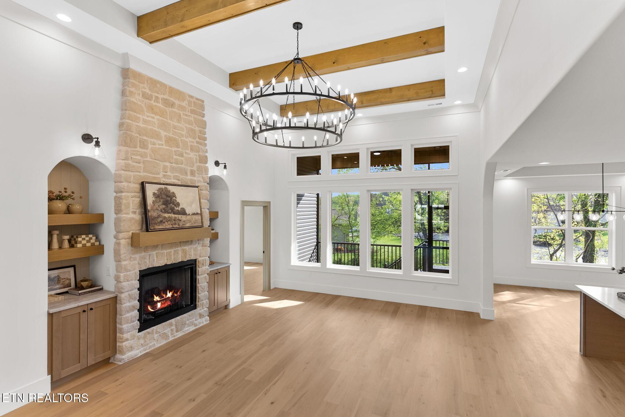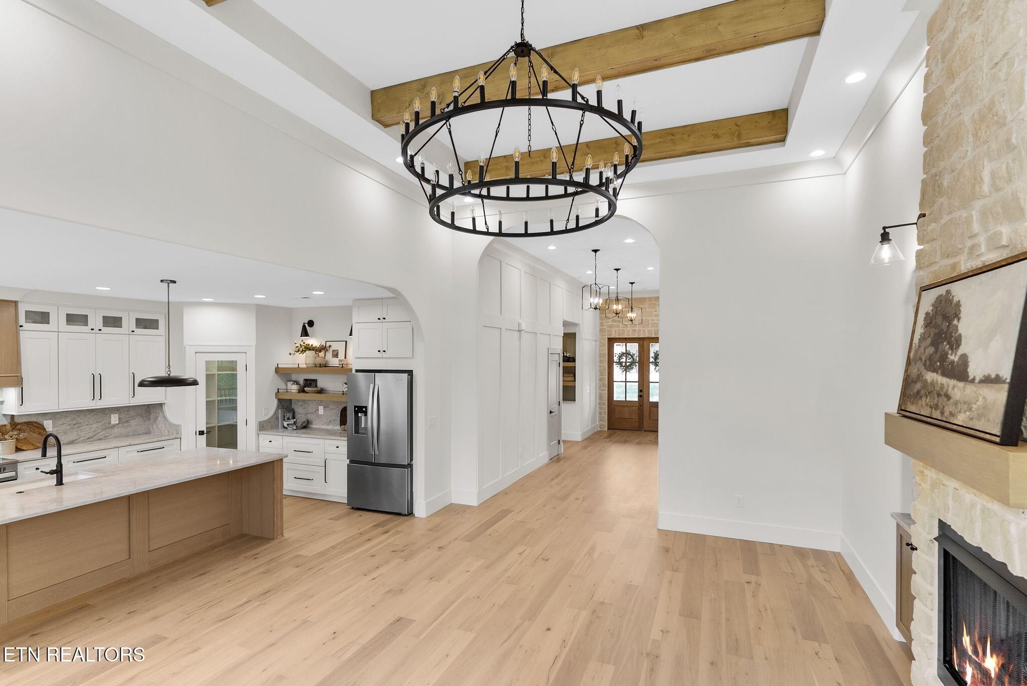 Welcome to Your Dream Home! Packed with builder upgrades from the moment you step in the driveway! Featuring 3 bedrooms, and 2 baths with a 4 car Large Garage, desirable open floor living area, this Home is a true standout. The exterior showcases a charming blend of brick and vinyl siding, enhancing the home's curb appeal. Offering 2300 sqft of meticulously designed living space, this home features an open-concept layout filled with natural light and stylish finishes throughout. The grand foyer area features tall 14 ft ceilings and charming light fixtures. Spacious Living Room serves as the heart of the home, featuring elegant cabinetry, beautiful countertops, a floor-to-ceiling stone design gas fireplace, along with a 14-foot ceiling that creates an open and inviting layout. Gourmet kitchen is a chef's dream, with beautiful countertops and backsplash, white and natural wood cabinetry, SS appliances and ample cabinet space. Large master suite boasts high ceilings with an accent wall and a spa-like spacious bathroom with double vanities, walk-in shower, freestanding tub, and stunning custom tile work. Each closet is equipped with custom built-in shelving, offering both organization and luxury. Laundry room features generous cabinet space and a convenient sink; Luxurious engineered flooring flows seamlessly throughout the home, enhancing its beauty and functionality. Outside, black windows, extra-large storage space in the crawlspace, concrete patio for practical outdoor living, large side yard, while professionally landscaped grounds include an irrigation system and a spacious screened porch, perfect for outdoor living. This exceptional home offers both style and comfort! Don't miss out! Schedule Your Showing Today!! Buyer to reimburse Seller at closing the one-time Loudon County Impact tax 1.00 dollar per finished sqft