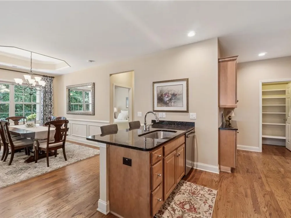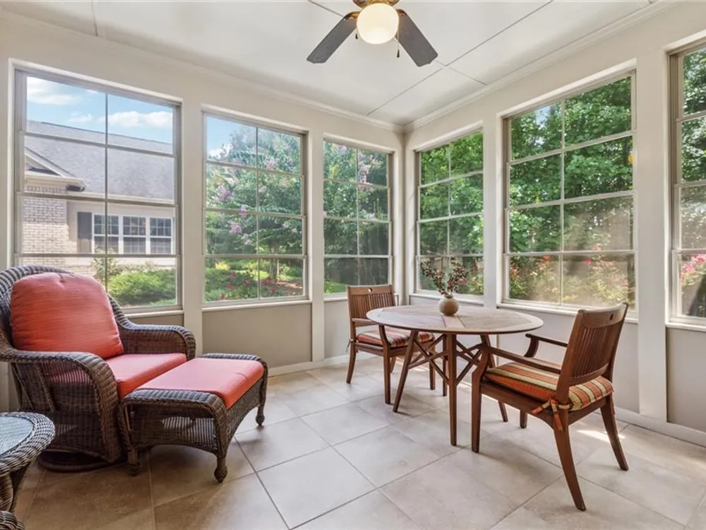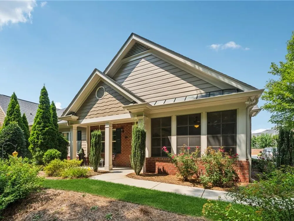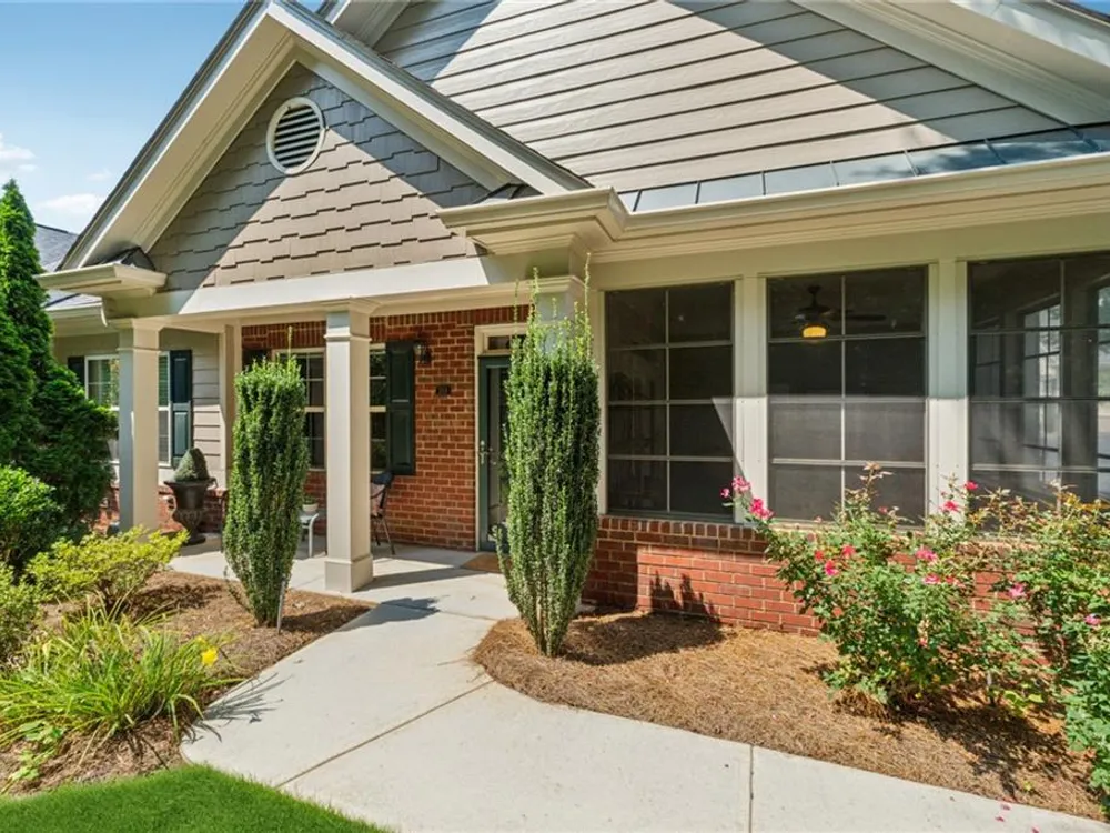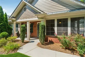 Welcome to The Orchards of East Cherokee! Enjoy the privacy of this quiet wooded corner in a sought after active adult community. Many builder upgrades, including beautiful trim, trey ceilings, chair rail and custom built-in cabinets in the great room, custom built ins in the pantry, master closet and laundry room. The kitchen features an extra wall of cabinets, stainless steel appliances and granite counter tops. Hardwood floors in the kitchen, dining and living rooms. Relax and enjoy your morning coffee while taking in the natural view in the comfortable three season room. This community offers a maintenance-free lifestyle, with the HOA maintaining lawn care, painting, and roofing. Community includes a clubhouse with a fitness area and kitchen adjacent to the community pool. Its prime Woodstock location is close to dining, shopping, and the convenience of the public library and Northside Cherokee hospital.
