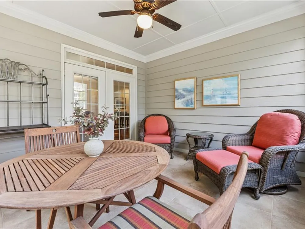 - Bookcases, Double Vanity, Entrance Foyer, High Ceilings, Permanent Attic Stairs, Tray Ceiling(s), Walk-In Closet(s), Plantation Shutters, Sunroom