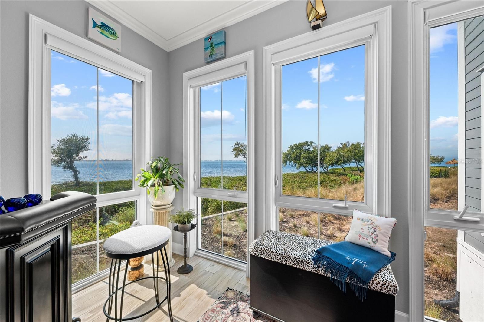 THIS IS THE ONE YOU HAVE BEEN WAITING FOR! THE CREME DE LA CREME! Look no further for your fabulous waterfront home—with perfect, unparalleled unobstructed views of Anna Maria Sound and spectacular sunsets from every room—the ultimate waterfront vantage point. This unrivaled coastal luxury home is located in the prestigious, beautiful, gated community of Harbour Isle. Enjoy sweeping views of the Sound, Anna Maria Island, Tampa Bay, Egmont Key and out into the Gulf. This highly sought after spacious, ground level, four bedroom and three bath Abaco style home is a true masterpiece of light, water and sophisticated design, and is located in a highly desired area of the community—just two homes away from the spectacular 23,000 square foot Beach Club where you can walk over and raise a glass at the SkyBar lounge and then continue with the heated resort pool, spa, private beach to launch kayaks into the Sound and 4,200 square foot fitness center. There are a multitude of upgrades in the interior of this luxury coastal home. To name a few - wood look plank tile flooring through most of the home, crown molding, Plantation shutters, a gourmet kitchen featuring Quartz countertops, all wood soft close cabinets with rollout drawers, high-end stainless steel appliances, GE front control Double oven, New LG microwave, In Owners’ Retreat are custom window treatments, Blackout blinds, also it has an ensuite bathroom with dual Quartz vanities and frameless glass shower, custom closets with lockable jewelry drawers.There are artistic wall finishes, seascape mural in the sunroom that extends the natural open-water horizon, faux finish painting in the common bathroom and many more high-end features that you must see! Peace of mind comes standard with full hurricane impact windows and doors, solid core doors, block construction with Hardie Plank siding and built to LEED-Certified energy efficient standards for ultimate strength and efficiency. The oversized two-car garage provides extra depth for larger vehicles and maximum storage. Harbour Isle is second to none. Inside the gates explore two miles of walking trails or find a hammock for relaxing. There are four pools for your enjoyment in the community featuring cabanas and grills, a splash pad and playground. Truly an active lifestyle! The Safe Harbor Marina with wet/dry slips, Margaritaville inspired Compass Hotel and Floridays Restaurant are just outside the gates. This gorgeous home is just a little over a mile from the sugar sand beaches and quaint island charm of Anna Maria Island and a mile from the famous Robinson Preserve with miles of walking, biking and kayaking. If you are looking for perfection in a waterfront home this is it! This is the crown jewel of this floor plan and is in the most coveted position in Harbour Isle. Call and schedule your private showing. Truly Paradise and it can all be yours.