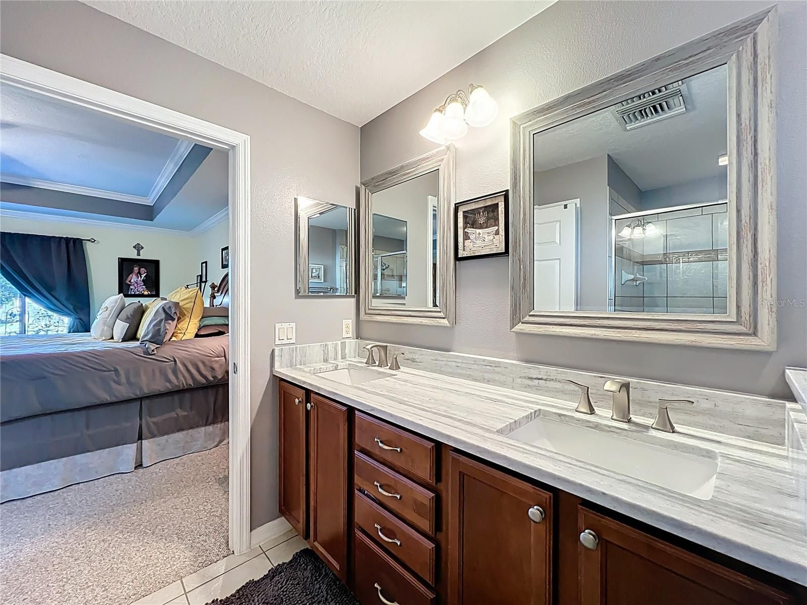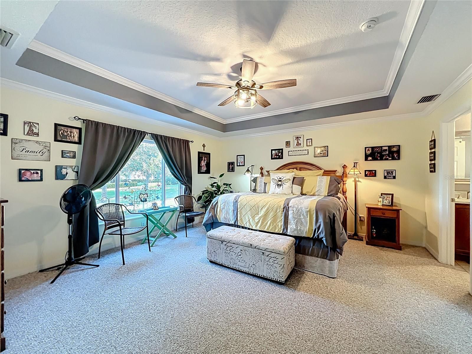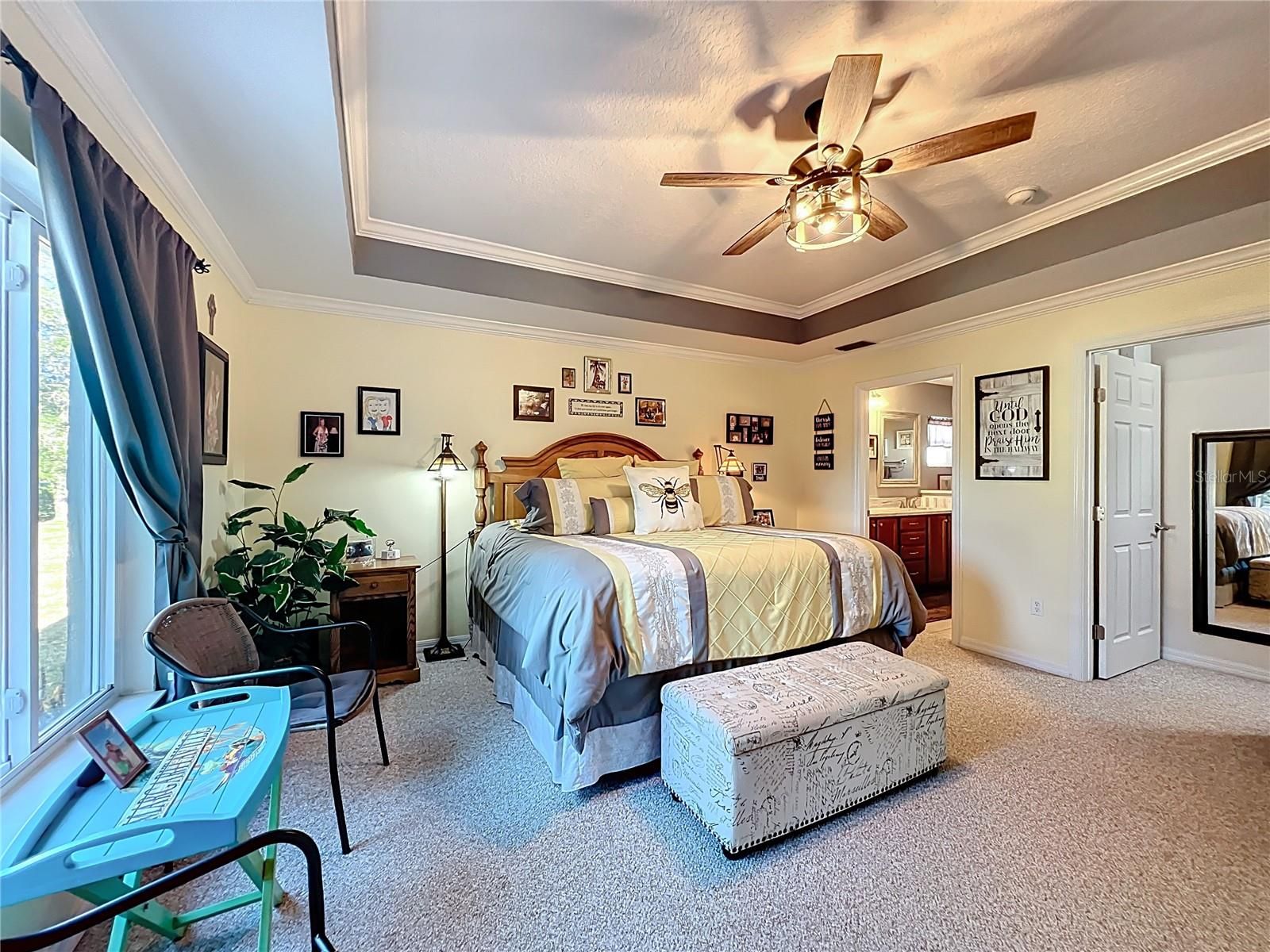 - Ceiling Fan(s), Crown Molding, Stone Counters, Tray Ceiling(s), Walk-In Closet(s), Window Treatments