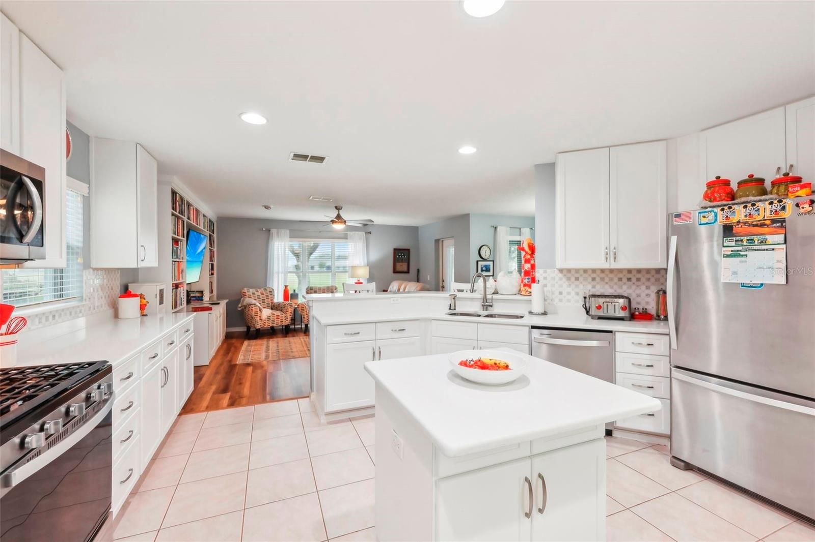 NO BOND! NEW ROOF (2024) & NEW HVAC (2024)! Offered at $429,000!!! Enjoy golf course and sunset views from your private lanai in the highly sought-after Arlington Ridge community! This MOVE-IN READY home offers peace of mind with major updates already done — including a brand-new roof, new HVAC system, fresh interior and exterior paint, luxury vinyl plank flooring, refreshed landscaping, quartz countertops, modern ceiling fans, and an added vanity in the guest bathroom. Arlington Ridge offers resort-style amenities including championship golf, restaurant, pools, fitness center, and clubhouse activities. Conveniently located just 30 minutes to The Villages and about 40 minutes to Orlando attractions, shopping, and dining. Turnkey Florida living at its finest — schedule your private showing today!