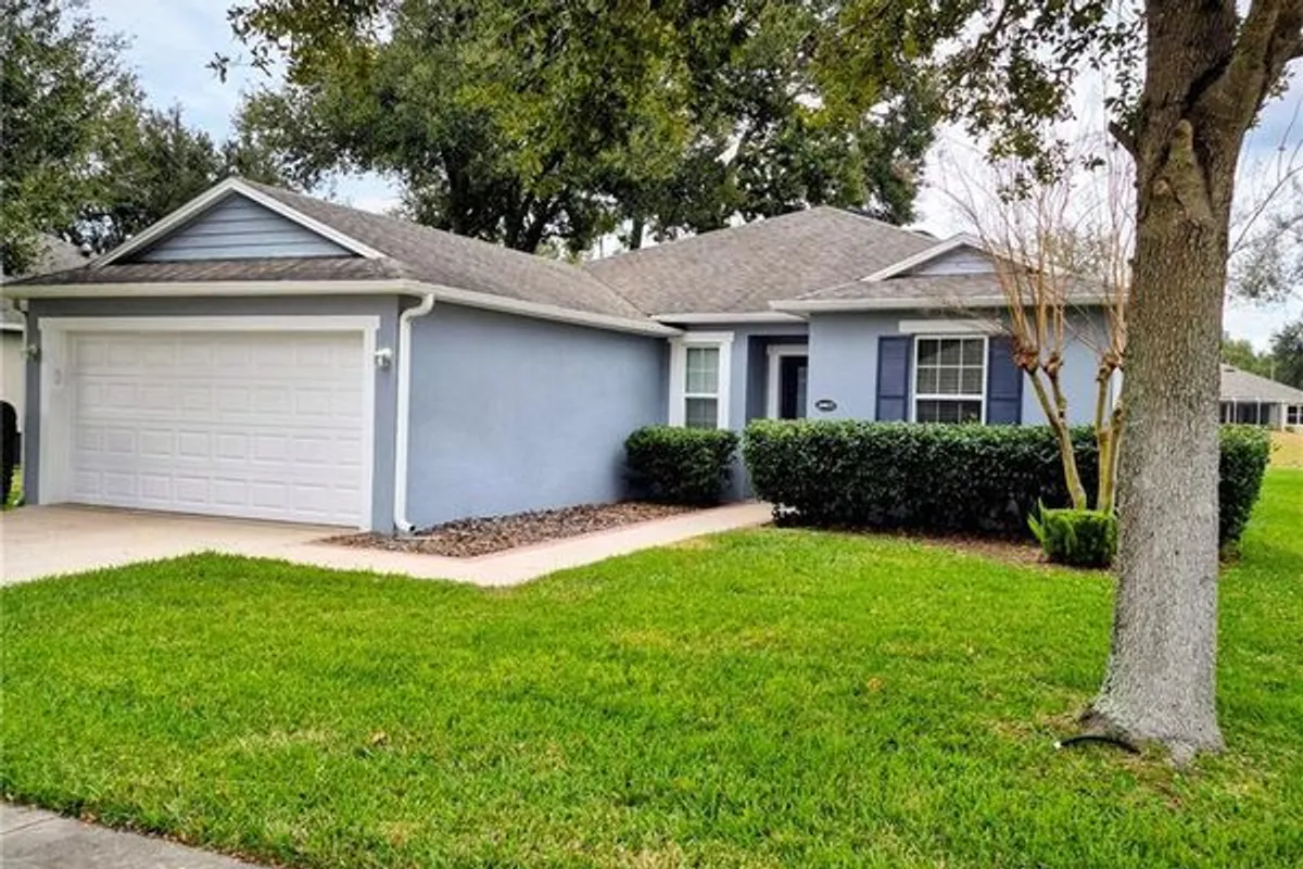 Exceptional view from one of the top lots in the entire community. It is open at the rear with scenic long distance views, plus it has the rare advantage of being just 500ft from all the amenities (clubhouse, restaurant, and pub). The owners searched for 7 years and at several communities to find such a homesite. Open living with no rear neighbors by the clubhouse. It is situated on the lush Championship golf course at the 7th tee box, so it is safe from fly balls. Many times it is vacant due to weather conditions, evening, or time of the year. Then you can enjoy the benefits when not in play, like taking a stroll in a beautiful park that they maintain, or just not having congestion in back of you. The 3 bedroom 2 bath split is an open floor plan and has been well maintained with recent paint job. Additionally, the owner has a complete set of plans for a golf cart garage addition to the front right. Come check it out! Park here, walk to the clubhouse and see this special home with its unique property location. It can come furnished if needed. List provided and negotiable. This home was built by the top builders in the U.S., D.R> Horton. It includes: screened partially enclosed lanai, granite countertops, breakfast bar, solid wood cabinets, 5 burner gas range, double ovens, closet pantry, laundry room, and walk-in closet and shower in master suite. The community has 24 hr guard, 18 hole championship golf course, resort style lap pool, organized community activities & functions, cinema, fitness center, plus restaurant & pub. 2 grocery stores, many restaurants, turnpike, airport access and city of Leesburg all close by. HOA includes lawn care, cable, high-speed internet, & community maintenance.