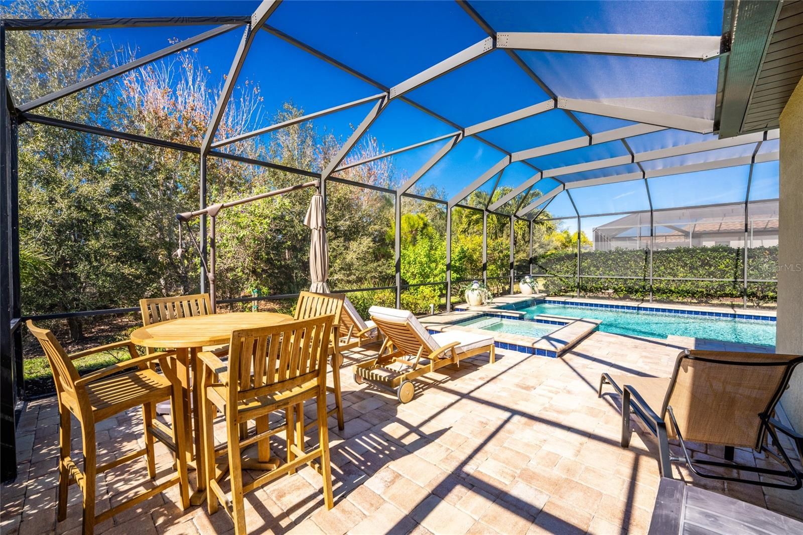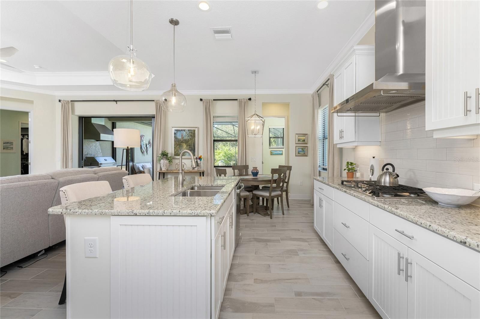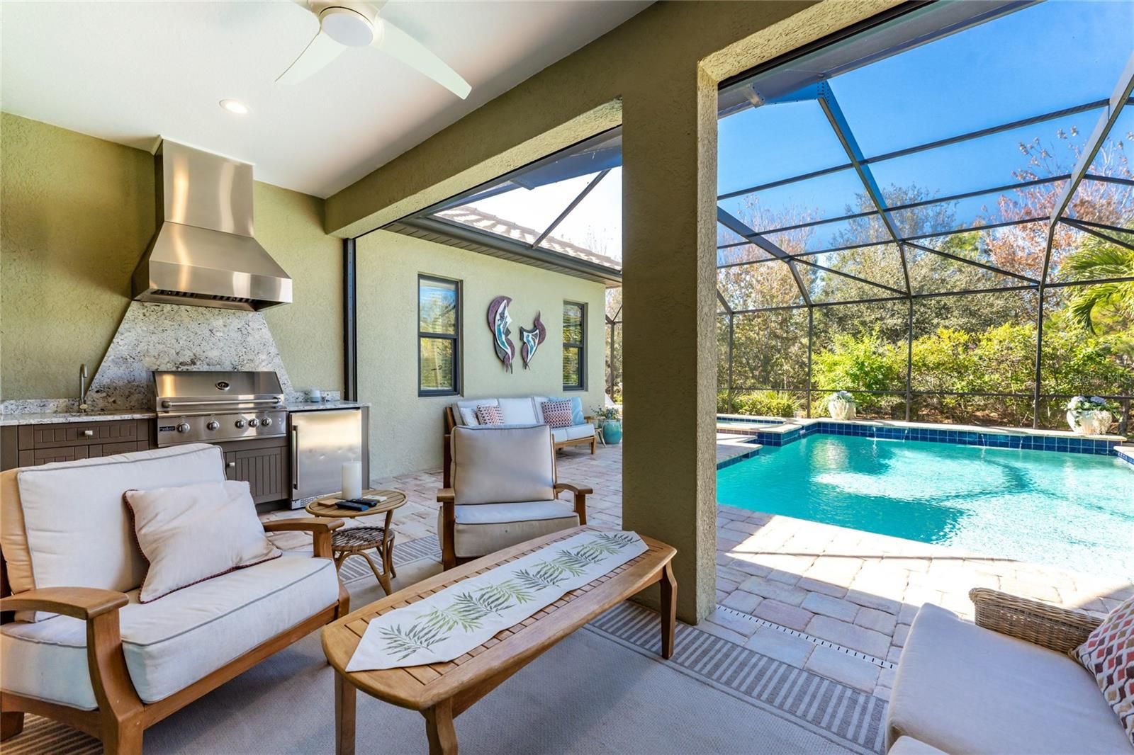 Built in 2019 and thoughtfully upgraded throughout, this 3 bedroom plus den, 2.5 bath residence offers a refined, coastal-inspired interior paired with an exceptional outdoor living experience. All within the sought-after Boca Royale Golf & Country Club community. Step inside to a bright, open great room layout designed for both everyday comfort and effortless entertaining. Wood plank tile flooring runs throughout the main living areas, complemented by a tray ceiling with crown molding that adds architectural interest and dimension. A formal dining space provides flexibility for gatherings, while the overall aesthetic feels straight out of a high-end coastal design catalog - clean, inviting, and timeless. The kitchen is a true centerpiece, combining function and style with shaker-style cabinetry, granite countertops, a counter-height center island with breakfast bar seating, and a natural gas cooktop. A built-in wall oven and microwave enhance convenience, while the spacious walk-in pantry offers impressive storage rarely found at this price point. The adjacent breakfast nook overlooks the outdoor living area, creating a seamless connection between indoor and outdoor spaces. Privately positioned, the primary suite is generously sized and designed as a true retreat. The expansive en-suite bath (approximately 10x10) features dual sinks, an oversized walk-in shower, and two large walk-in closets. Sliding glass doors provide direct access to the lanai and pool area, allowing for a quiet morning coffee or evening unwind just steps from your bedroom. The split-bedroom floor plan ensures privacy for guests, while the den offers versatility for a home office, media room, or additional flex space. Outdoor living is where this property truly stands apart. The extended lanai with brick pavers creates a resort-style setting anchored by a HEATED SALTWATER POOL AND SPA that is noticeably larger than many others in the community. The BUILT-IN SUMMER KITCHEN makes entertaining effortless, while the expansive pool deck offers ample room for dining, lounging, and hosting. A private preserve view provides a peaceful backdrop with no future development, enhancing both privacy and long-term value. Additional features include a 2-car garage with epoxy flooring, IMPACT WINDOWS, MOTORIZED HURRICANE SHUTTERS AND GENERATOR (both installed in 2020) for added peace of mind. The interior has been freshly painted, and select furnishings may be available separately. Not located in a flood zone and with no CDD fee, this property offers both financial and practical advantages. Boca Royale Golf & Country Club residents enjoy access to a full-service restaurant and bar, resort-style pool, fitness center, and an active social calendar. A social membership is included in the HOA, with optional golf and racquet memberships (tennis and pickleball) available. A community dog park and proximity to multiple Gulf beaches further enhance the lifestyle appeal. This is a home that delivers on both presentation and livability. Well suited as a full-time residence or a seasonal retreat, with features and upgrades that are increasingly hard to find.