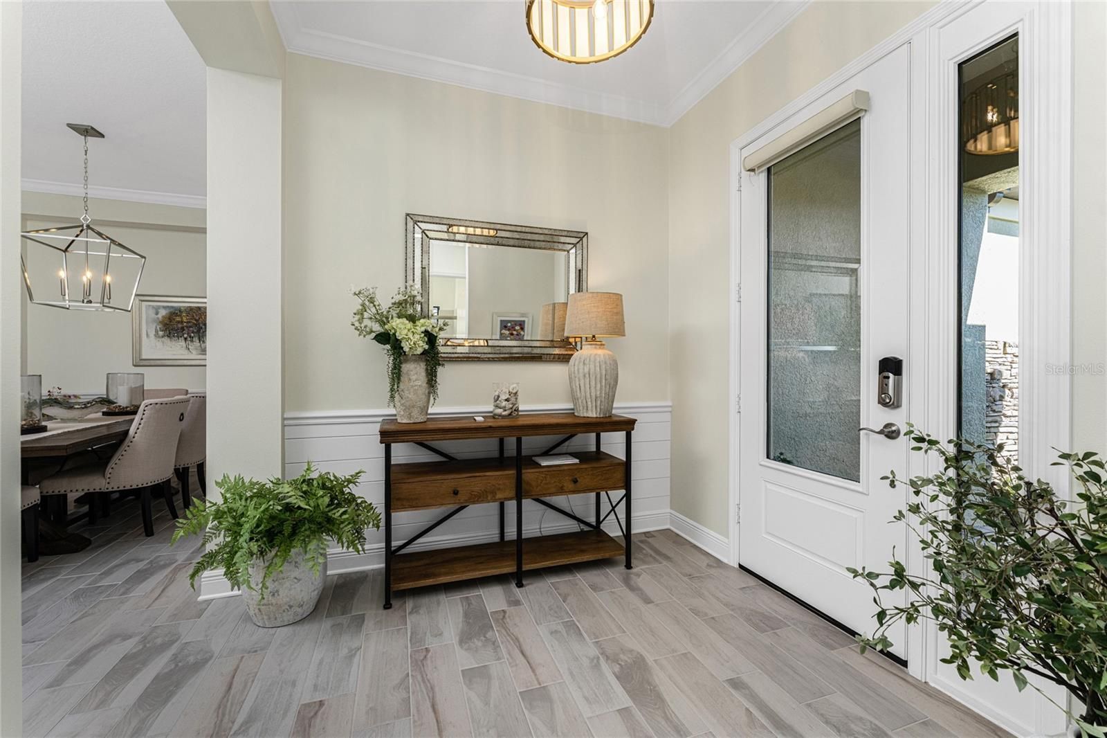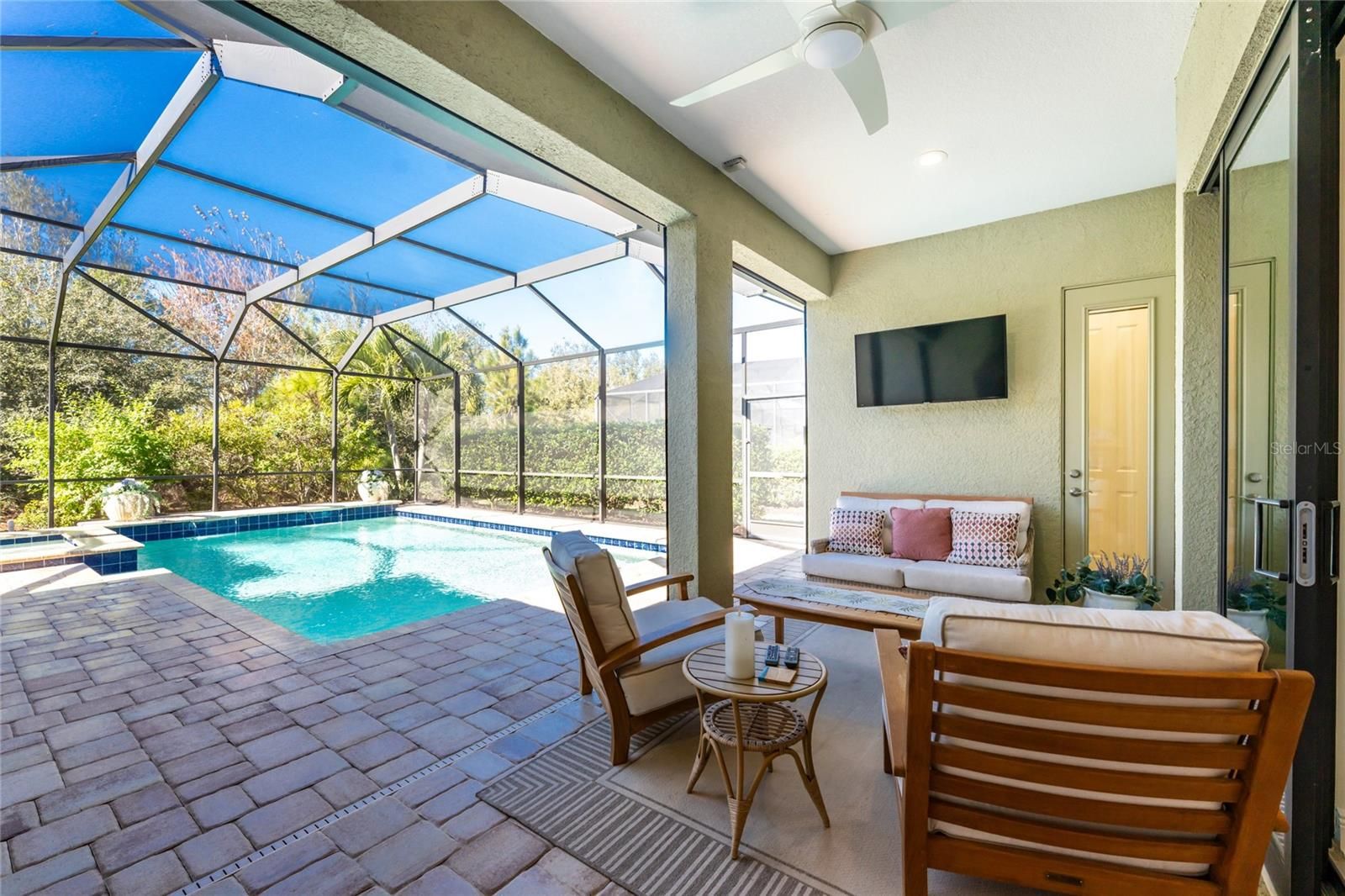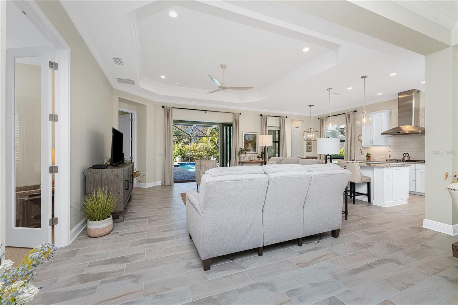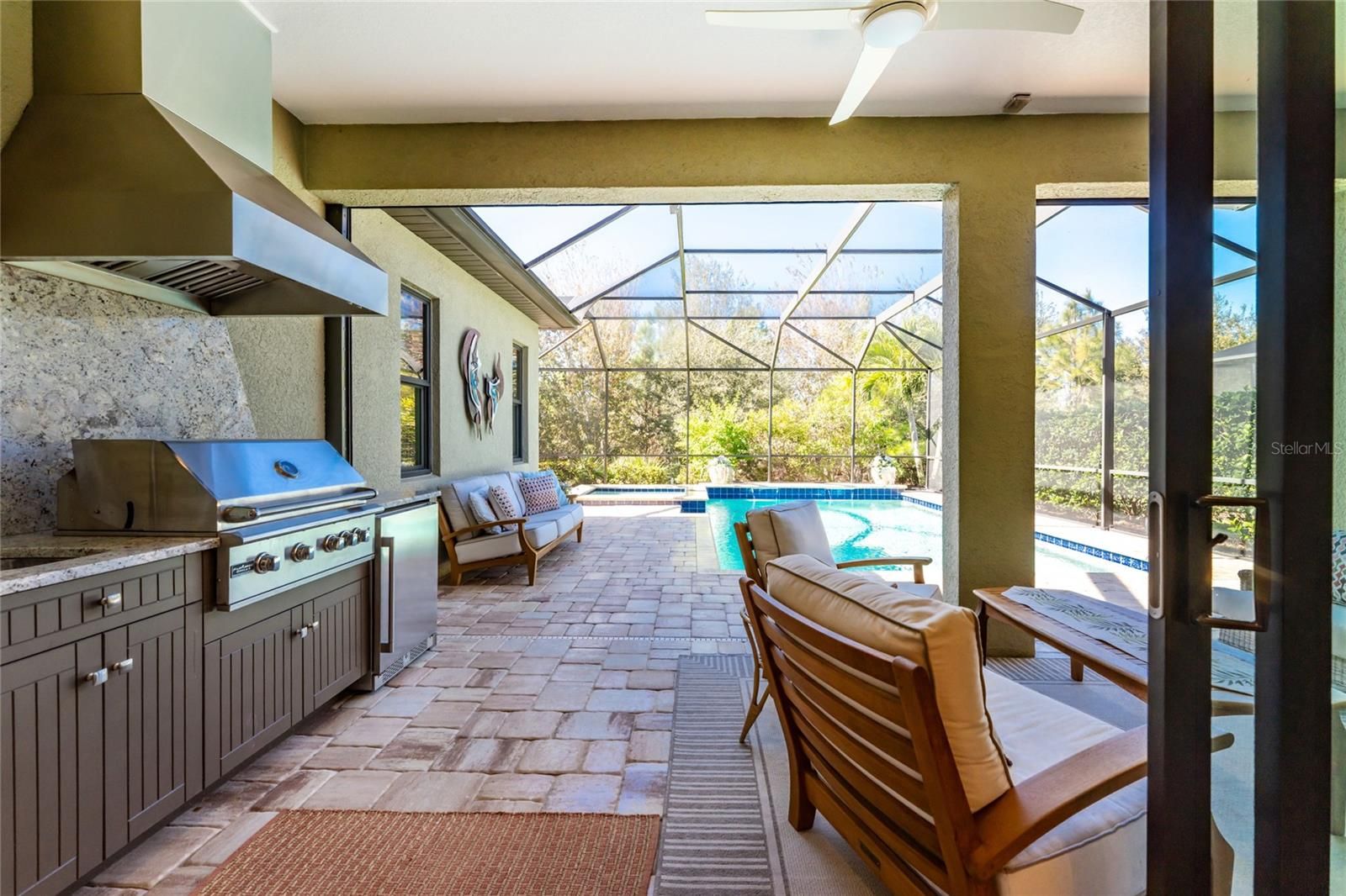 Built in 2019 and thoughtfully upgraded throughout, this 3 bedroom plus den, 2.5 bath residence offers a refined, coastal-inspired interior paired with an exceptional outdoor living experience. All within the sought-after Boca Royale Golf & Country Club community. Step inside to a bright, open great room layout designed for both everyday comfort and effortless entertaining. Wood plank tile flooring runs throughout the main living areas, complemented by a tray ceiling with crown molding that adds architectural interest and dimension. A formal dining space provides flexibility for gatherings, while the overall aesthetic feels straight out of a high-end coastal design catalog - clean, inviting, and timeless. The kitchen is a true centerpiece, combining function and style with shaker-style cabinetry, granite countertops, a counter-height center island with breakfast bar seating, and a natural gas cooktop. A built-in wall oven and microwave enhance convenience, while the spacious walk-in pantry offers impressive storage rarely found at this price point. The adjacent breakfast nook overlooks the outdoor living area, creating a seamless connection between indoor and outdoor spaces. Privately positioned, the primary suite is generously sized and designed as a true retreat. The expansive en-suite bath (approximately 10x10) features dual sinks, an oversized walk-in shower, and two large walk-in closets. Sliding glass doors provide direct access to the lanai and pool area, allowing for a quiet morning coffee or evening unwind just steps from your bedroom. The split-bedroom floor plan ensures privacy for guests, while the den offers versatility for a home office, media room, or additional flex space. Outdoor living is where this property truly stands apart. The extended lanai with brick pavers creates a resort-style setting anchored by a HEATED SALTWATER POOL AND SPA that is noticeably larger than many others in the community. The BUILT-IN SUMMER KITCHEN makes entertaining effortless, while the expansive pool deck offers ample room for dining, lounging, and hosting. A private preserve view provides a peaceful backdrop with no future development, enhancing both privacy and long-term value. Additional features include a 2-car garage with epoxy flooring, IMPACT WINDOWS, MOTORIZED HURRICANE SHUTTERS AND GENERATOR (both installed in 2020) for added peace of mind. The interior has been freshly painted, and select furnishings may be available separately. Not located in a flood zone and with no CDD fee, this property offers both financial and practical advantages. Boca Royale Golf & Country Club residents enjoy access to a full-service restaurant and bar, resort-style pool, fitness center, and an active social calendar. A social membership is included in the HOA, with optional golf and racquet memberships (tennis and pickleball) available. A community dog park and proximity to multiple Gulf beaches further enhance the lifestyle appeal. This is a home that delivers on both presentation and livability. Well suited as a full-time residence or a seasonal retreat, with features and upgrades that are increasingly hard to find.