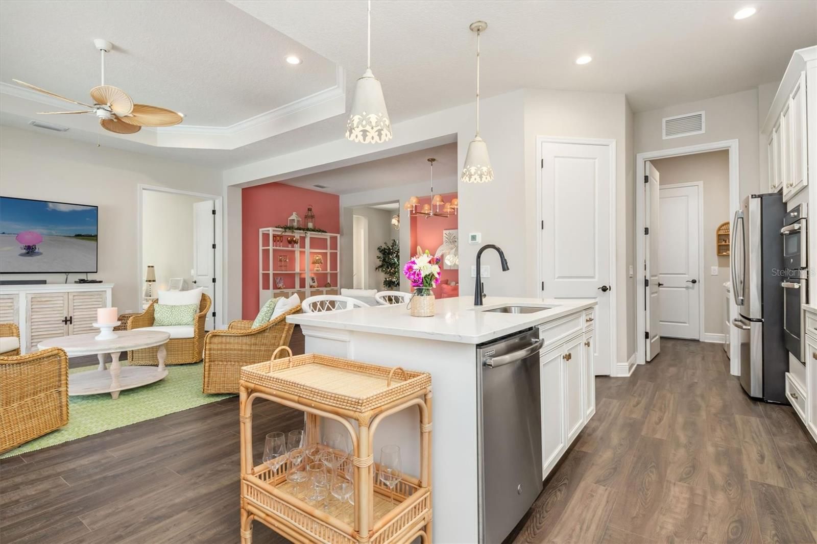 Discover this stunning Endless Summer 3 model in Boca Royale Golf & Country Club, move-in ready and freshly enhanced in 2024. Offering 3 bedrooms, 2.5 baths, a den, and a private pool, it delivers the perfect mix of luxury, comfort, and everyday livability. Step inside to luxury vinyl plank flooring throughout, plantation shutters, and a freshly painted interior accented with designer wallpaper. Updated lighting complements 8' doors, 10' ceilings, and coffered ceilings in both the great room and primary suite. The kitchen showcases quartz countertops, 42" upper cabinets, a gas cooktop with vented hood, upgraded double oven/microwave, extended buffet cabinetry, and a built-in wine refrigerator—perfect for hosting or relaxing nights in. Pocket sliding glass doors open to a **rescreened lanai and private pool** overlooking the tranquil preserve. The pool includes LED multi-color lighting and a sun shelf, while the lanai features professional landscaping with accent lighting, an exterior TV mount, and pre-plumbing for a future outdoor kitchen with gas, hot, and cold water stubs. Additional updates include a water-softener system, new garbage disposal, updated bath and laundry faucets, foam-block insulation for energy efficiency and sound control, and a painted garage floor. A separate pool bath adds convenience, and the preserve view provides privacy and serenity. Boca Royale Golf & Country Club is a gated, 1,000-acre community surrounded by mature oaks, lakes, and nature preserves. The recently renovated 18-hole championship course—redesigned by architect Gordy Lewis—features new tee boxes, reshaped bunkers, and Seashore Paspalum turf. Amenities include tennis and pickleball courts, a fitness center, resort-style pool and spa, bocce, croquet, and a dog park. The Georgian-style clubhouse offers both casual and fine dining, plus a full social calendar with wine dinners, trivia nights, and hobby clubs. Located just minutes from Manasota Key beaches, Venice Island, and Wellen Park, with easy access to marinas, boat ramps, kayak launches, parks, medical facilities, and daily conveniences. Skip the build time and delays—move right into this stunning, upgraded Boca Royale home and start living the lifestyle you’ve been waiting for! BRING YOUR OFFERS!