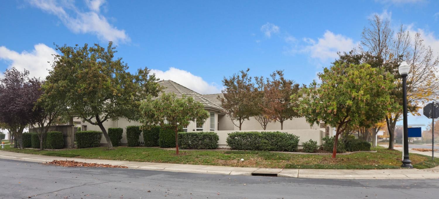 Pristine single story on a spacious corner lot in the premier 55+ gated community of Heritage Park, with a wonderful HOA offering an abundance of activities and social events. This home has just been updated with fresh interior paint, new carpet, new water heater and refreshed landscaping and sod. It has an open floor plan with a bright kitchen featuring granite counters, island, eating bar and large dining area. The adjoining living room has exterior access to the covered patio and a gas burning fire place to cozy up by during dark winter evenings. Large primary suite with walk-in closet, dual sink granite counter vanity, tile shower, and backyard access. The second bedroom has a perfect set up for an office or library with built in shelves, desk, and inviting French doors. Private backyard with plenty of room to relax and gather with family and friends. The laundry room features a sink and lots of storage cabinets. The large HOA clubhouse has vast amenities such as pool and spa, pickleball and tennis courts, bocce ball courts, exercise room, gathering areas, and much more. Close to dining, shopping, and freeway access, this home has all conveniences minutes away.