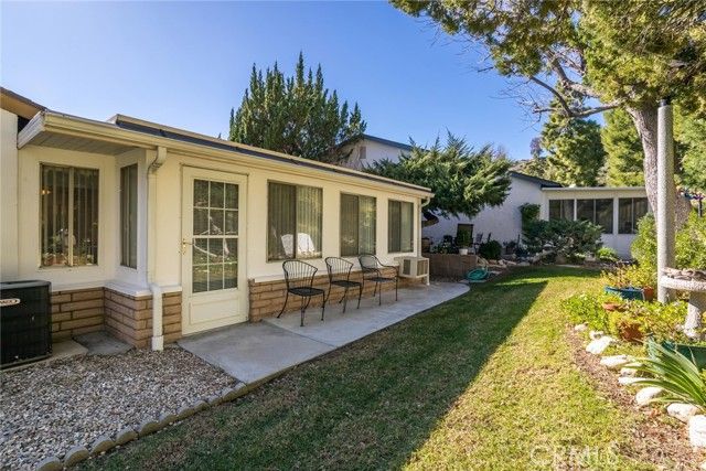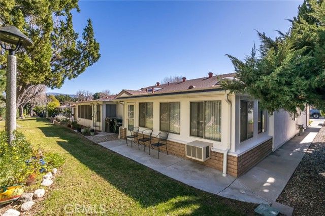 Welcome home to easy living in a vibrant 55+ community! Step through the charming entryway of this inviting end-unit condo and enjoy the perfect blend of comfort and convenience. Inside, you’ll find plush carpeting and ceiling fans in every main room, providing year-round comfort. The bright, well-appointed kitchen features ample cabinet space, beautiful natural stone countertops and backsplash, and a cheerful window over the sink that fills the space with natural light. All appliances are included—including the washer and dryer—for effortless move-in living. The living area is enhanced by a well-placed skylight and a sliding glass door that opens to the enclosed patio—an ideal spot for morning coffee or evening gatherings overlooking the semi-private backyard. The spacious primary suite offers a peaceful retreat with a dressing area, double mirrored closets, and direct access to the enclosed patio. A front bedroom is perfect for guests, a home office, or hobbies, and is conveniently located near the hallway bath featuring a walk-in shower and cabinetry with display shelving. Additional highlights include a side walkway with easy access to the back of the home. All of this is set within a beautifully maintained, gated 55+ community that offers endless opportunities to stay active, social, and connected. Enjoy a recently refurbished pool and hot tub (2023), auditorium, clubhouse, exercise room, game room, wood working, ceramics, shuffleboard, horseshoe court, basketball, picnic, BBQ's, lawn bowling - plus two golf courses! The HOA covers trash, sewer, building and roof, landscaping/gardener, special cable TV offer, insurance and more! Gated entry with guard and patrols 24/7/365.