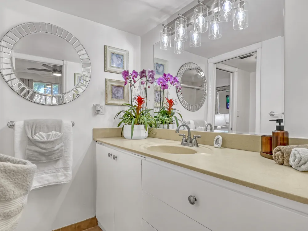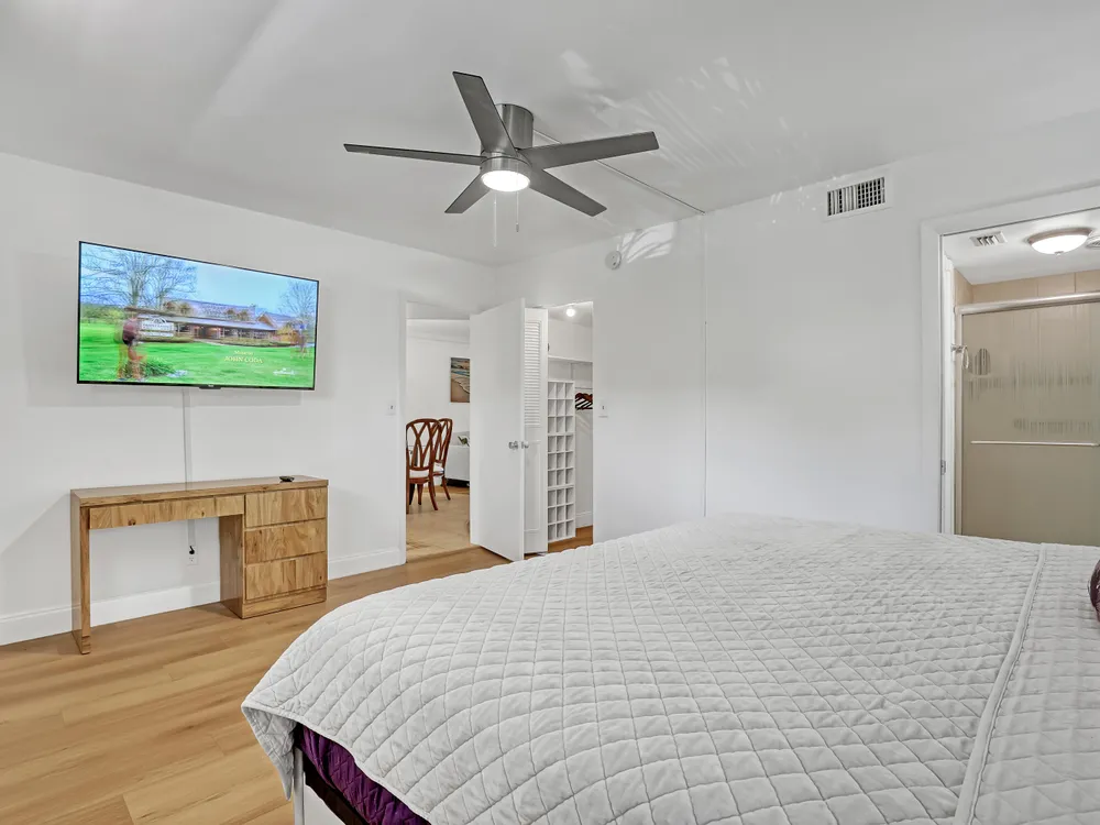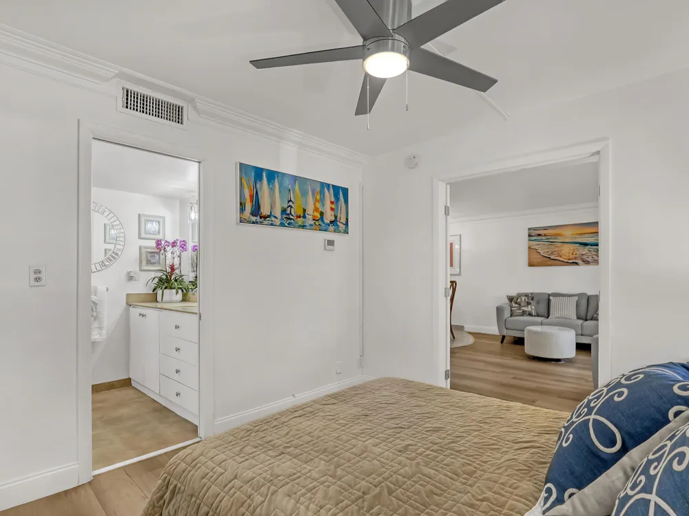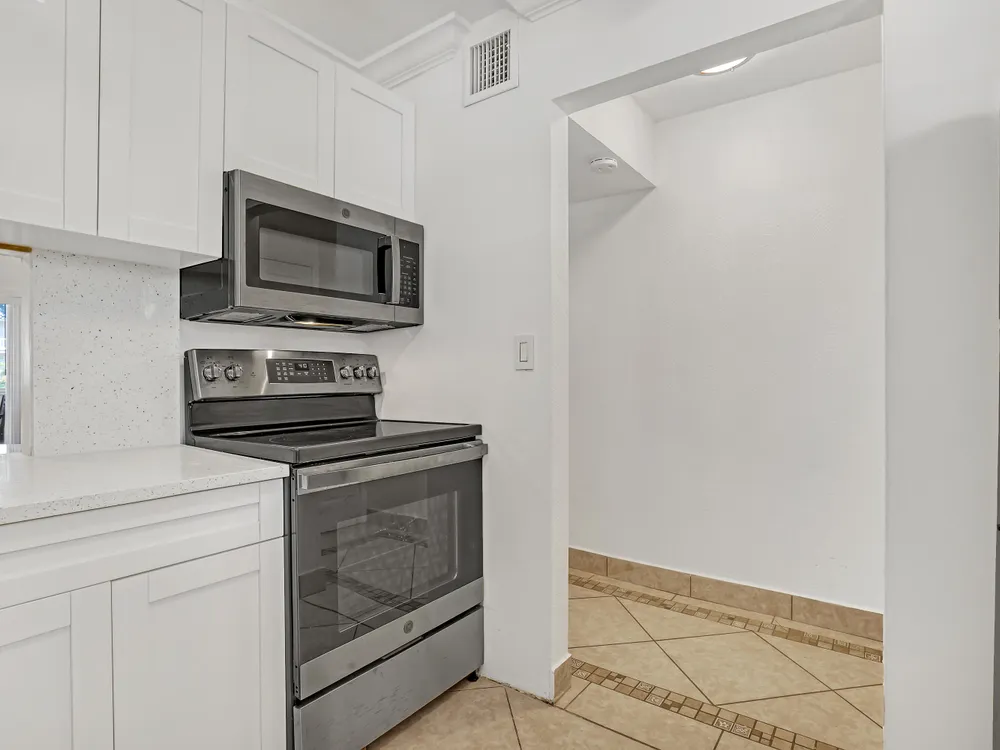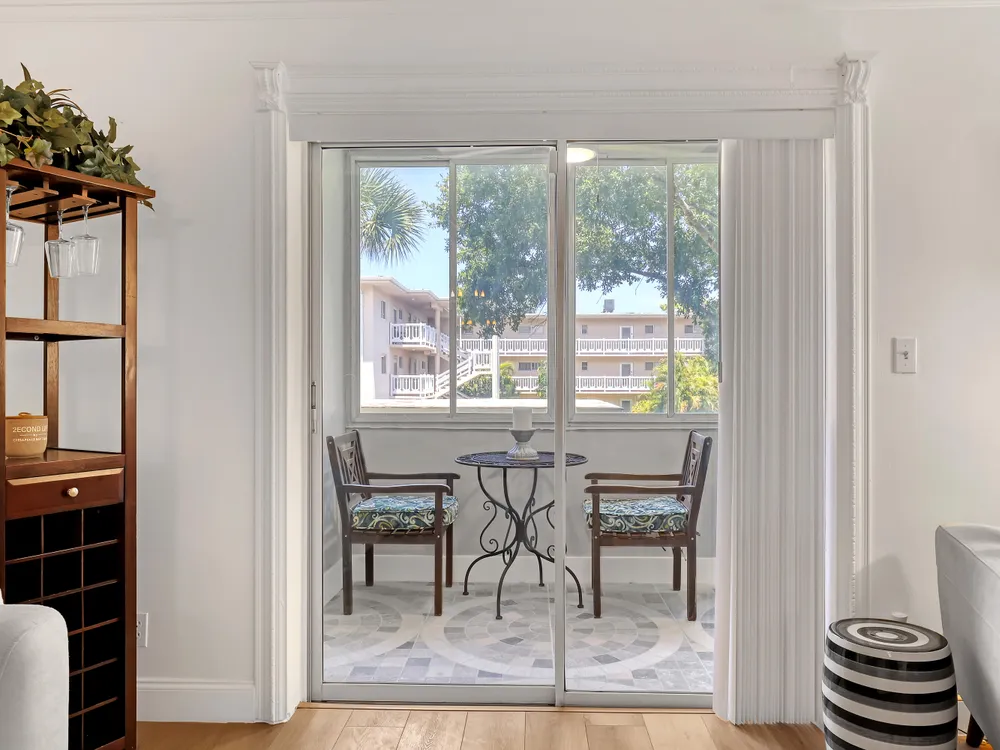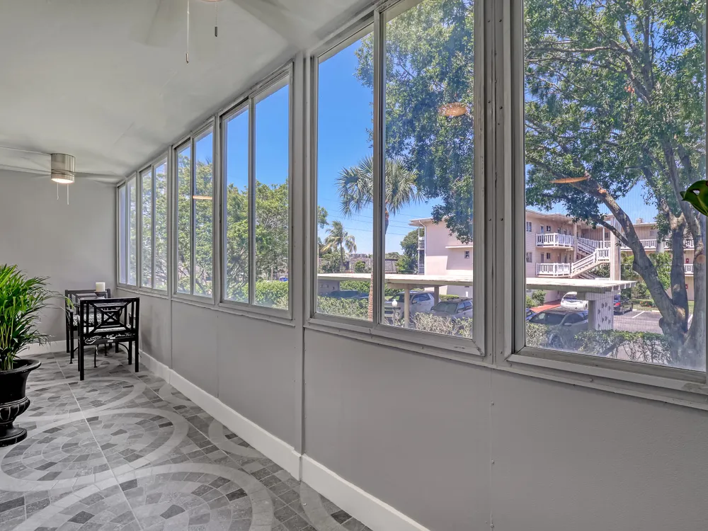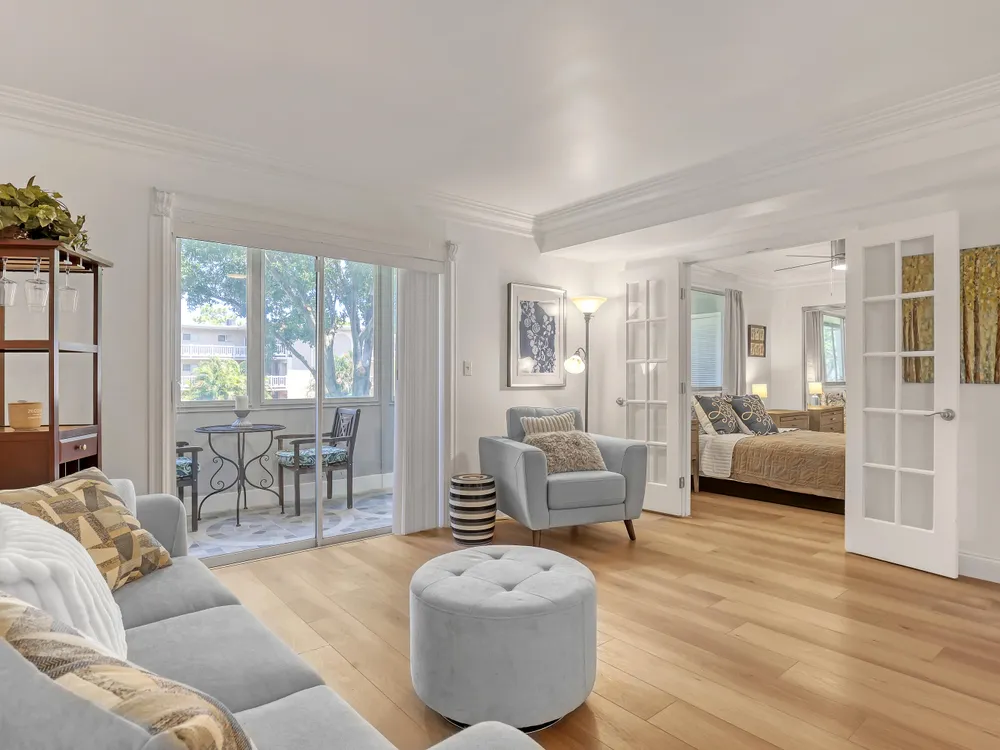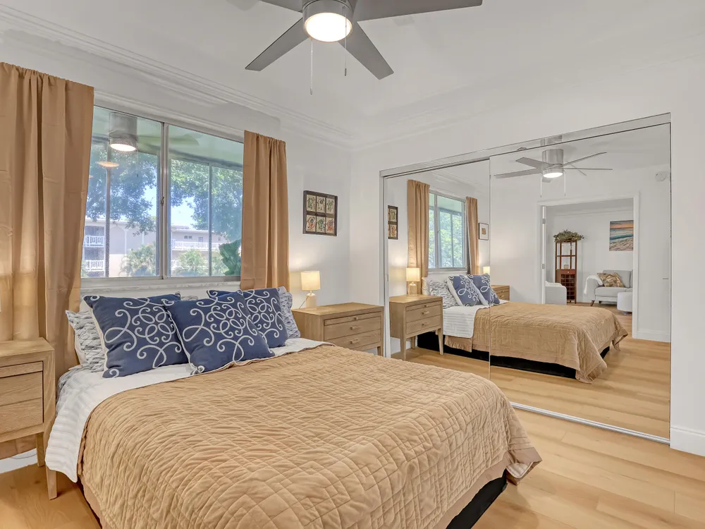 Beautifully renovated and thoughtfully designed, this elegant condo in Lake Clarke Gardens offers modern comfort and charm. Enjoy brand new wood floors, a fully remodeled kitchen with never-used stainless steel appliances, quartz countertops, and custom cabinetry. The updated bathroom features new fixtures, and the master bedroom includes a spacious walk-in closet with built-in storage. A French door leads into the second bedroom, perfect as a guest room or home office. The enclosed balcony features a stunning newly tiled stone floor--an ideal space for morning coffee, a glass of wine, or an intimate dinner for two. With new ceiling fans, an alarm system, and sophisticated details throughout, this move-in ready unit is a true gem.