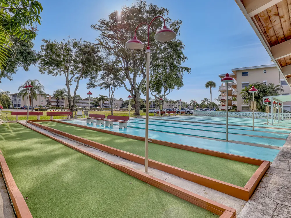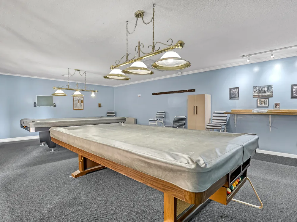 - Billiard Room, Bocce, Clubhouse, Community Room, Community Bus, Elevator, Fitness Center, Game Room, Pickleball, Pool, Putting Green