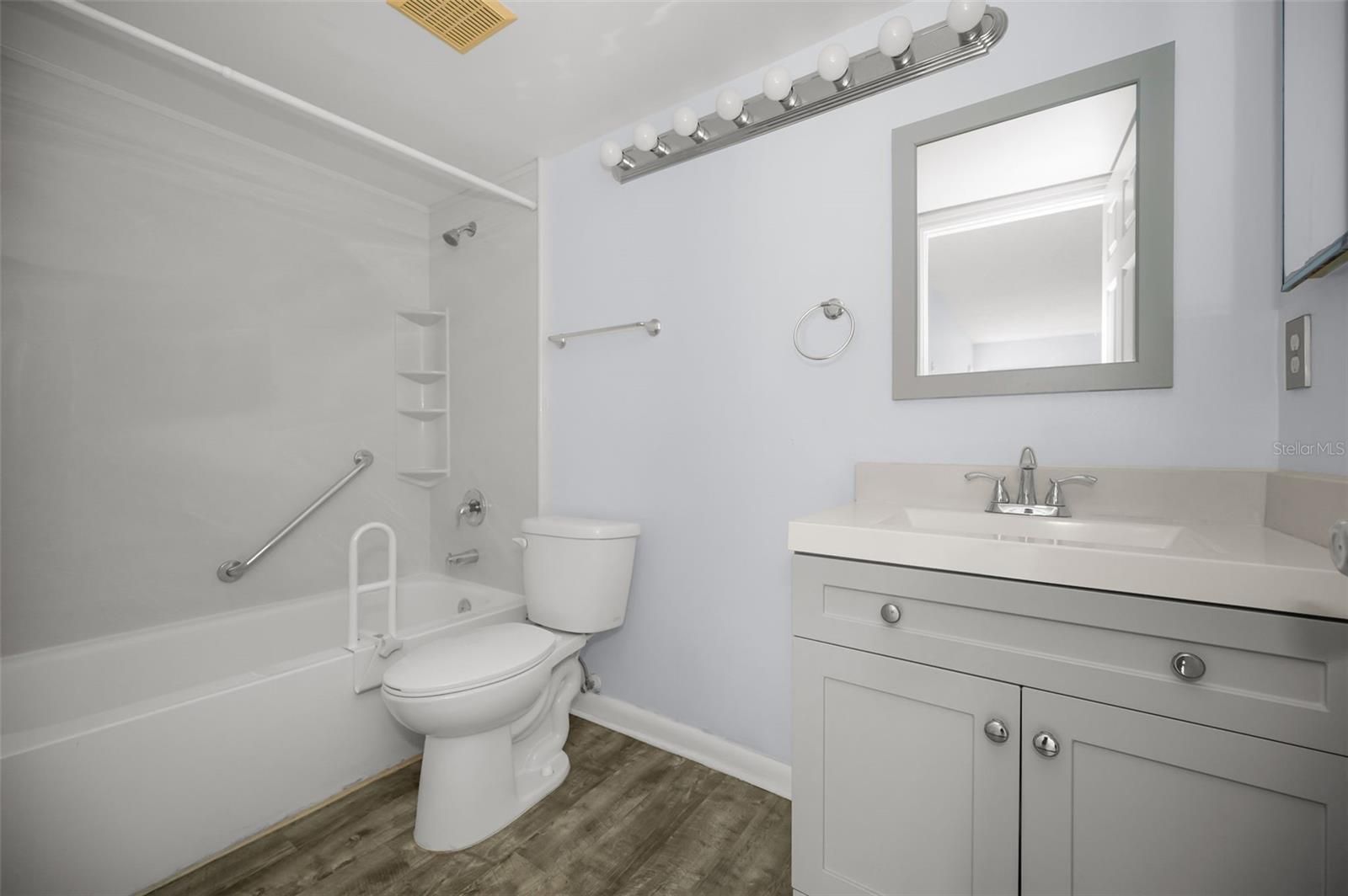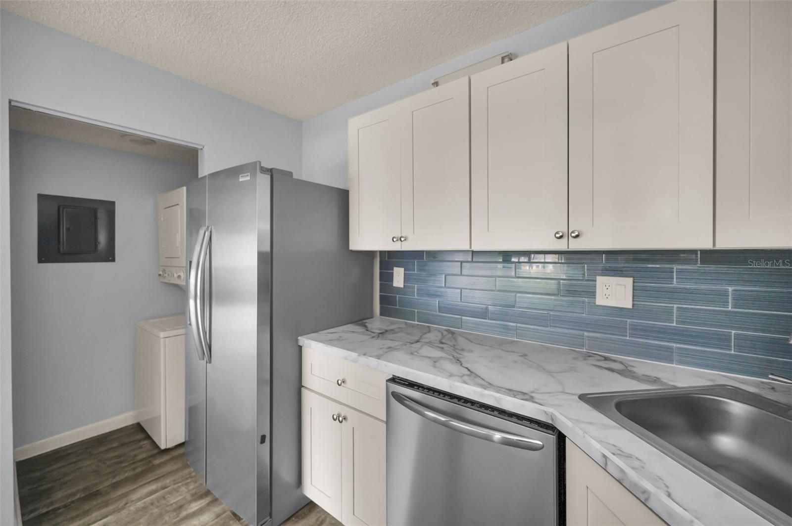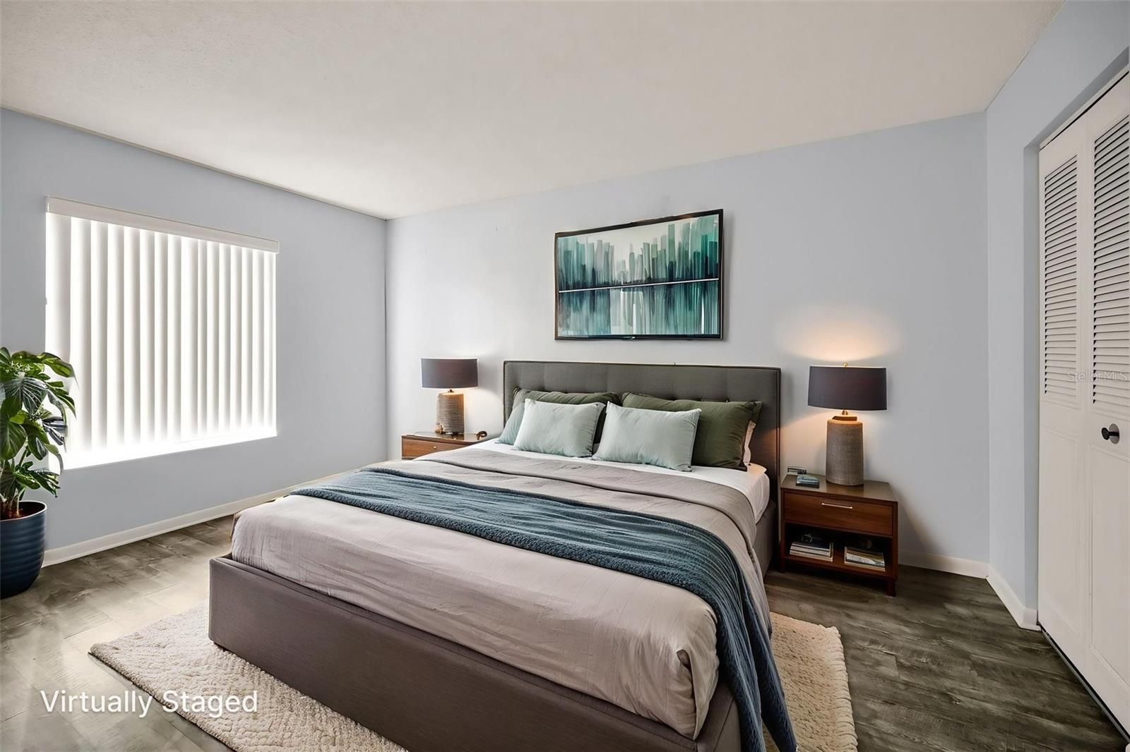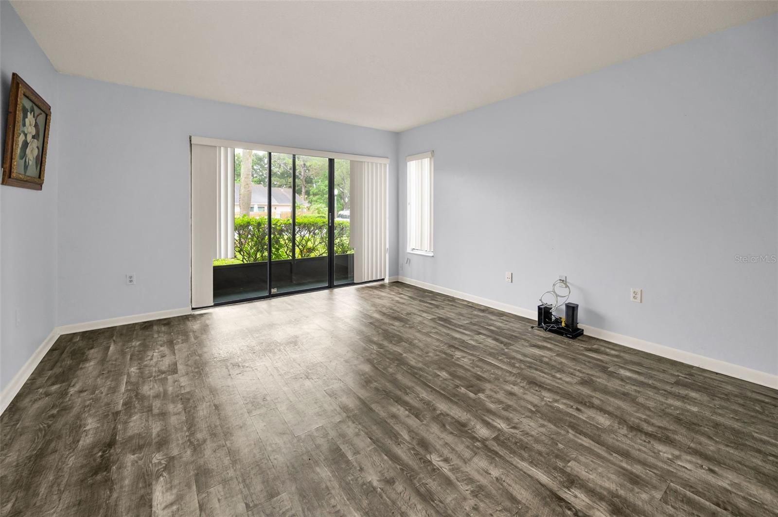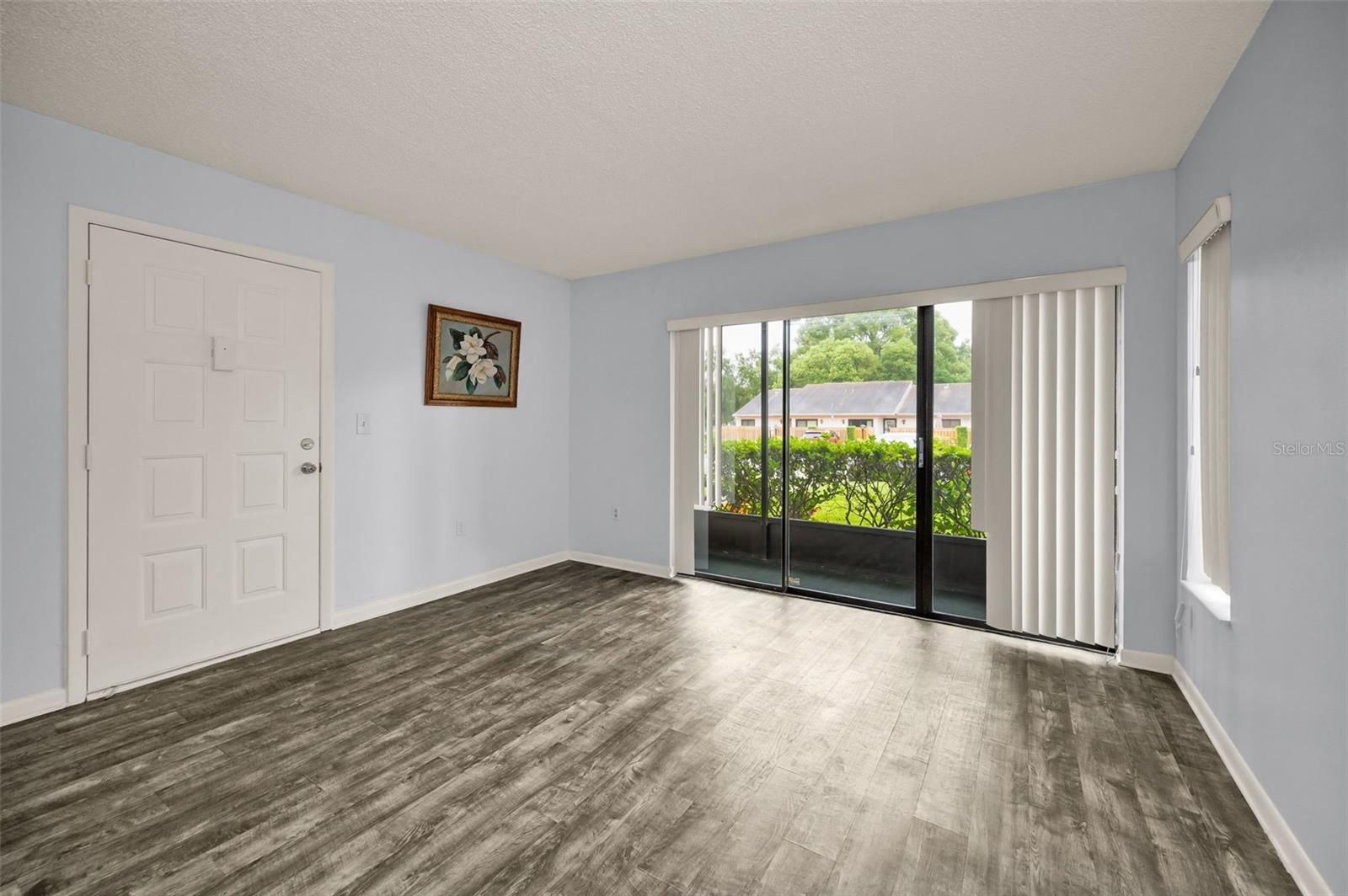 One or more photo(s) has been virtually staged. Welcome to this beautifully maintained one-bedroom, one-bathroom condominium located in the desirable Pine Ridge at Palm Harbor—a pet-friendly retirement community offering comfort, convenience, and a vibrant lifestyle. This move-in-ready residence exudes modern elegance and is privately situated at the rear of the complex, showcasing true pride of ownership. For use as your primary residence, vacation home or investment property with no wait-time to rent! The interior features luxury vinyl plank flooring throughout, creating a seamless and stylish look. The kitchen is a dream with solid Shaker style cabinetry, glass tiled backsplash and newer appliances. The well-designed bathroom offers dual access from both the hallway and the spacious primary bedroom, which also includes a generous walk-in closet. The living room has a slider door to a quaint patio, covered and screened. A Newer HVAC system (2024) and hot water heater for your peace of mind. 805 sqft. includes the covered patio. Low HOA fees (334.06) include: roof, cable, internet, sewer, trash, water, external pest control, external maintenance, Heated Pool and Spa, Shuffleboard court, Clubhouse, walking trails and an on-site manager. Pine Ridge is a great location near restaurants, shopping, medical and dental facilities, beaches, Honeymoon Island and more! All room dimensions approximate. Call today for your in-person or live virtual tour today!