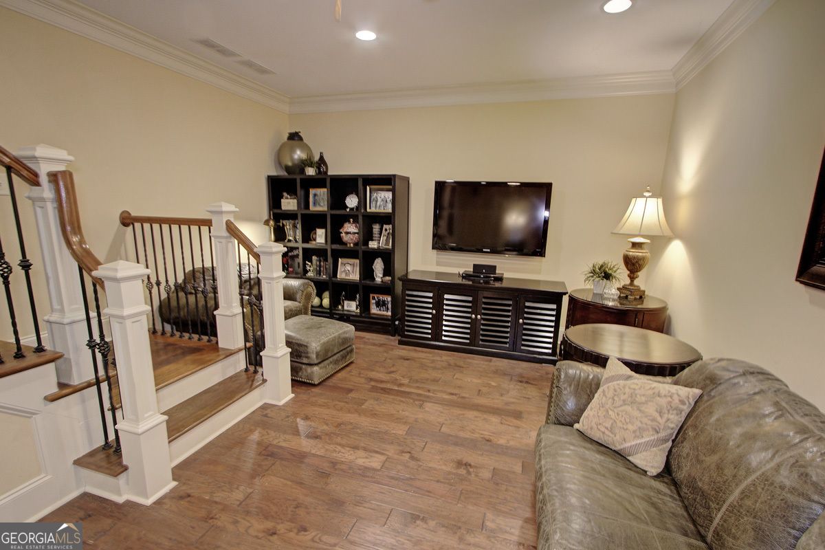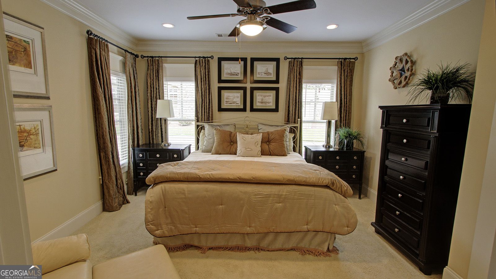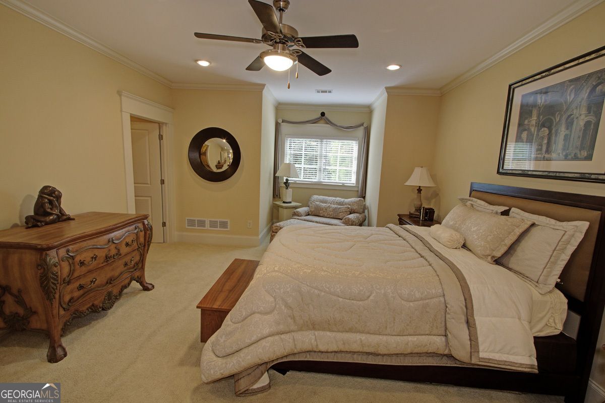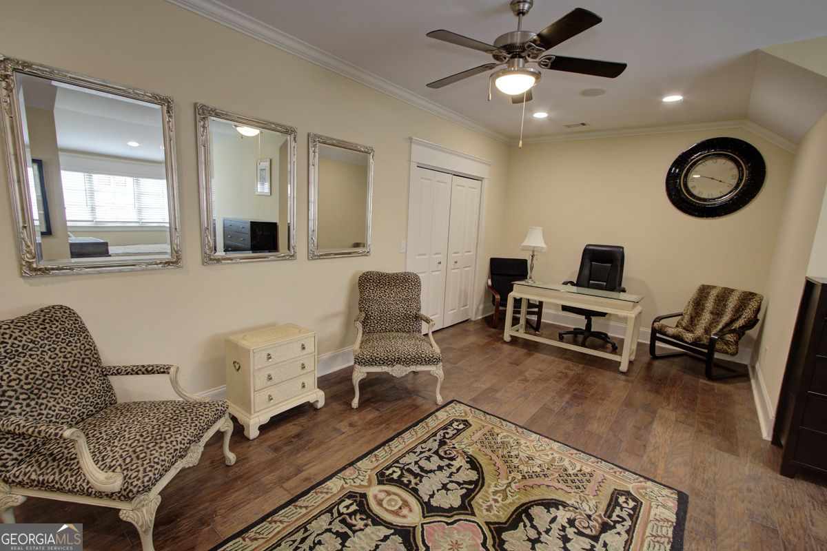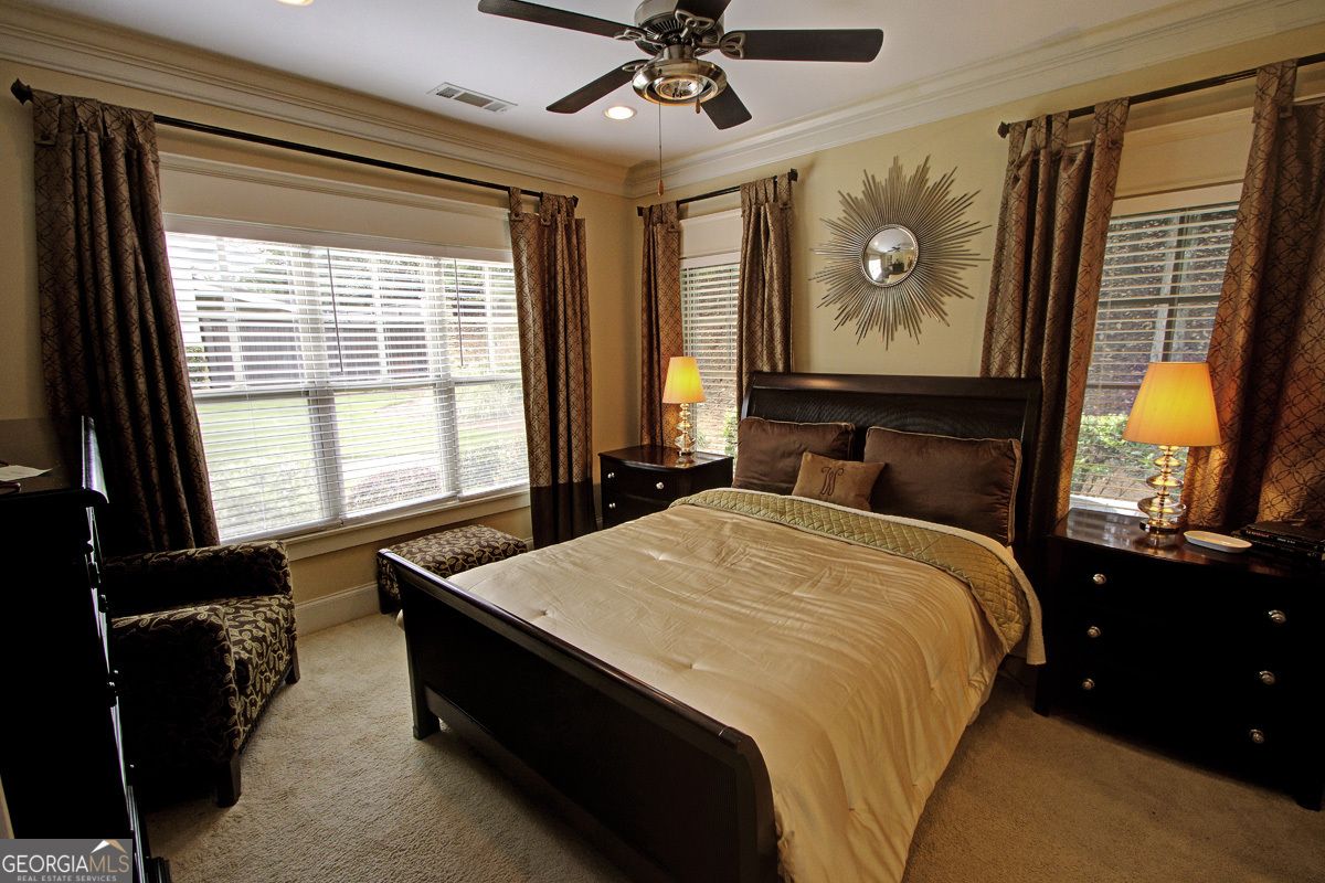 Experience Exceptional 55+ Living in Wellstone - Welcome to 2689 Middlecreek Way, a beautifully designed 4-bedroom, 3.5-bath residence offering 3,014 square feet of thoughtful living space in one of Forsyth County's most desirable active-adult communities. Ideally located, this home is the closest residence to the clubhouse complex-just steps from the fitness center, pool, game room, library, and community garden-while also being minutes from GA-400, Northside Forsyth Hospital, Lake Lanier, shopping, dining, and medical offices. The versatile floor plan includes two primary suites, both on the main level with another bedroom upstairs, designed for comfort and flexibility. The main level features an inviting great room with a gas-log fireplace, a formal dining area, and a chef's kitchen with a large island, stained cabinetry, solid-surface counters, a breakfast bar, and a walk-in pantry-all with a seamless view to the living area. A dedicated office, powder room, and spacious laundry with sink add everyday convenience. Upstairs, discover a private guest suite, loft/landing, and a large multipurpose bonus room-perfect as a 4th bedroom, studio, office, or media retreat. Thoughtful architectural touches include coffered ceilings, crown molding, bookcases, plantation shutters, and hardwood floors. Outdoor living is enhanced by a front porch and private patio overlooking a wooded berm. Forsyth County homeowners over 65 enjoy significant property tax advantages, making this home a smart long-term choice. Monthly HOA dues cover exterior maintenance, landscaping, termite, trash, and access to the community's extensive amenities.