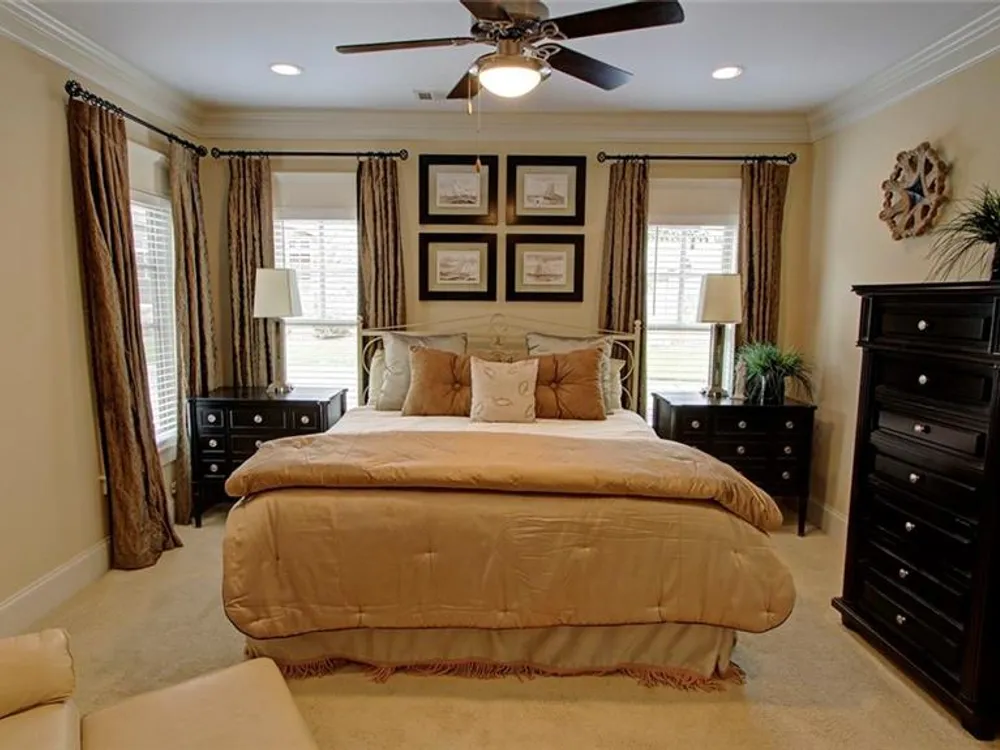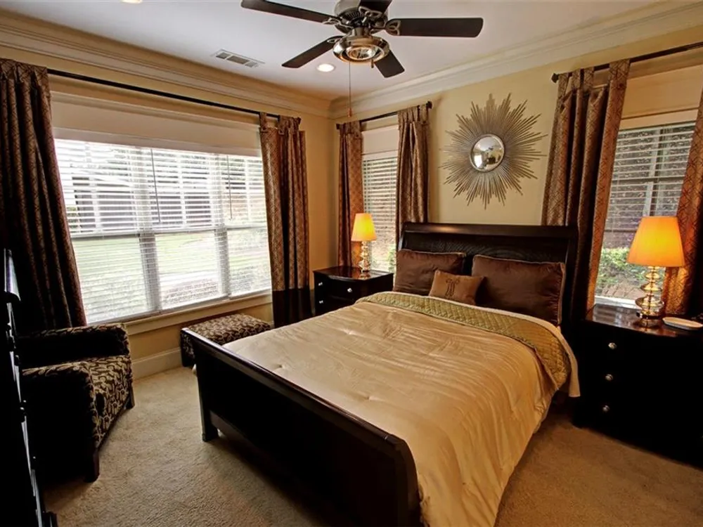 Experience Exceptional 55+ Living in Wellstone - Welcome to 2689 Middlecreek Way, a beautifully designed 4-bedroom, 3.5-bath residence offering 3,014 square feet of thoughtful living space in one of Forsyth County’s most desirable active-adult communities. Ideally located, this home is the closest residence to the clubhouse complex—just steps from the fitness center, pool, game room, library, and community garden—while also being minutes from GA-400, Northside Forsyth Hospital, Lake Lanier, shopping, dining, and medical offices. The versatile floor plan includes two primary suites, both on the main level with another bedroom upstairs, designed for comfort and flexibility. The main level features an inviting great room with a gas-log fireplace, a formal dining area, and a chef’s kitchen with a large island, stained cabinetry, solid-surface counters, a breakfast bar, and a walk-in pantry—all with a seamless view to the living area. A dedicated office, powder room, and spacious laundry with sink add everyday convenience. Upstairs, discover a private guest suite, loft/landing, and a large multipurpose bonus room—perfect as a 4th bedroom, studio, office, or media retreat. Thoughtful architectural touches include coffered ceilings, crown molding, bookcases, plantation shutters, and hardwood floors. Outdoor living is enhanced by a front porch and private patio overlooking a wooded berm. Forsyth County homeowners over 65 enjoy significant property tax advantages, making this home a smart long-term choice. Monthly HOA dues cover exterior maintenance, landscaping, termite, trash, and access to the community’s extensive amenities.