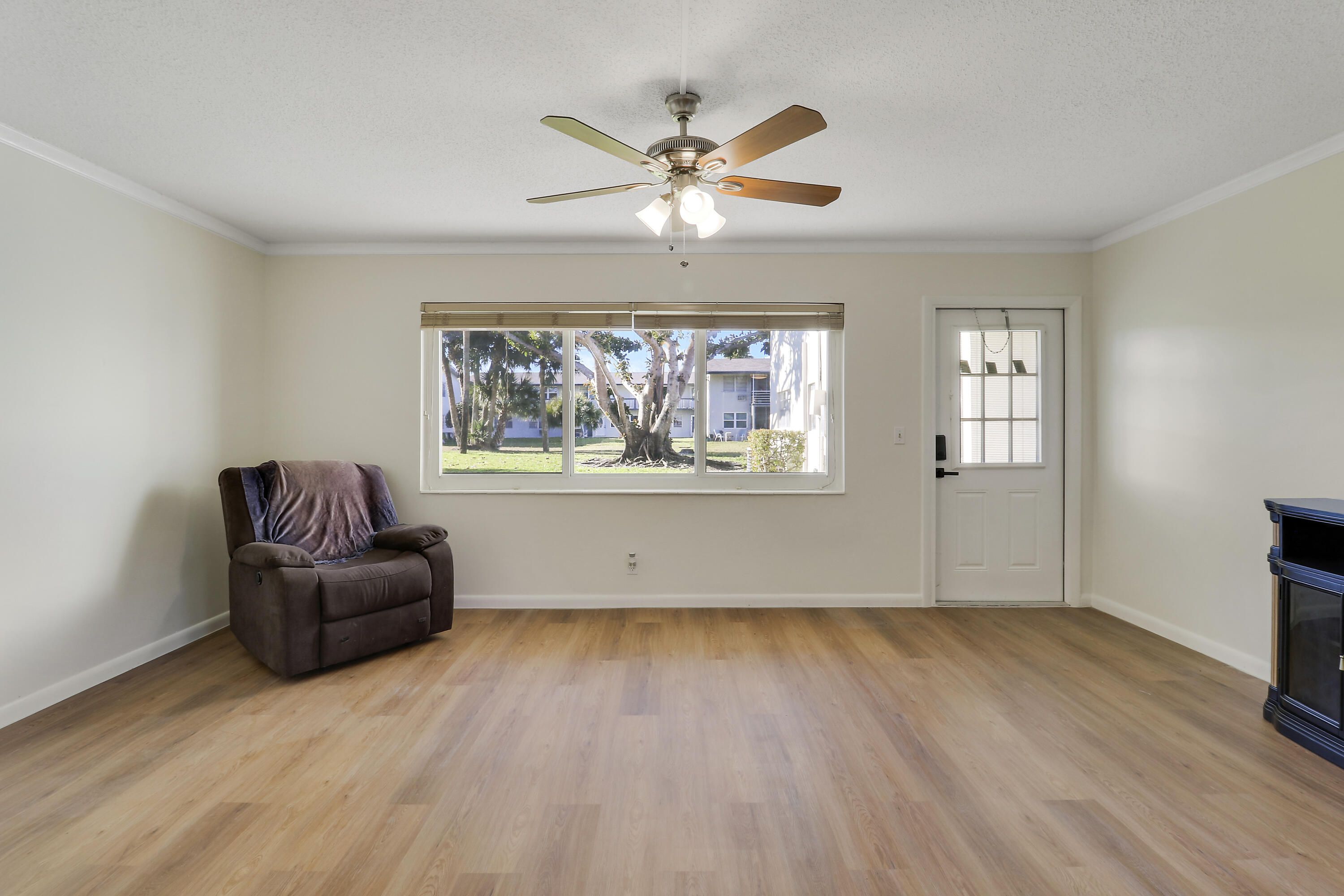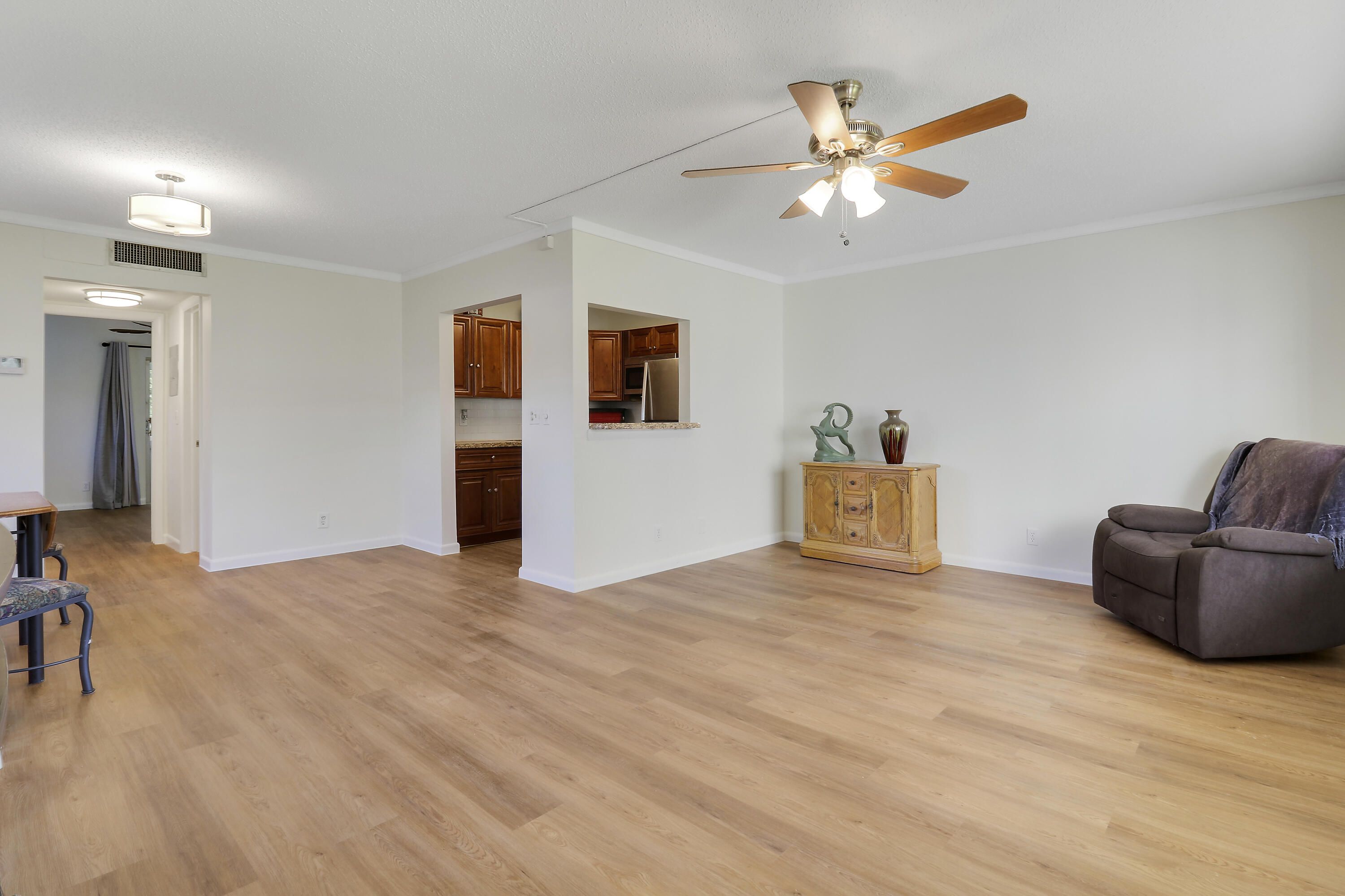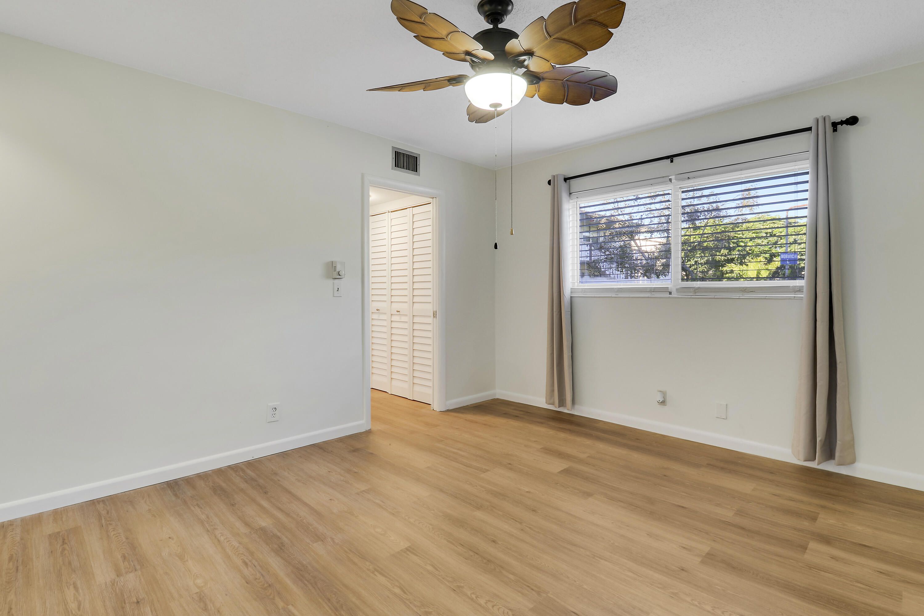 Rare to the market, a FULLY RENOVATED FIRST FLOOR - CORNER UNIT. Freshly painted, new flooring throughout, and central air and heat. This condo is truly move in ready! Also featuring brand new electrical panel and impact windows. With no rental restrictions, this unit can be rented right away! It is perfect as a primary residence, seasonal getaway, or income-producing property. Conveniently located off of Okeechobee Blvd. in an active 55+ community; near shopping, dining, and just a short drive to the beach. Make it yours today!