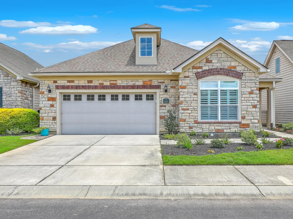 Welcome to care-free living at its best! This is the former ''Promenade'' model and offers loads of upgrades. Open living and dining room spaces are showcased by soaring 9' & 10' tray ceilings, an abundance of natural light, luxury wood flooring and gas fireplace with custom built-ins. Gourmet kitchen alert! Designed to awaken your inner chef, it features gorgeous maple cabinetry with under-mount lighting, granite countertops, marble backsplash, large island w/ bar seating, top of the line stainless steel appliance package which includes gas range, built-in microwave & double ovens and walk-in pantry. Master suite has tray ceilings, custom shades, walk-in closet, luxury bath w/ dual vanities, tile flooring, linen closet & walk-in tile shower, plus french doors to the sun porch andcourtyard. The secondary bedrooms are well sized and the 2nd bath features a low step-in whirlpool tub designed with massage jets.. perfect for hydrotherapy. 3rd bedroom can be used as a den/study, which has french doors, plantation shutters and wood flooring. The front porch, sun porch and courtyard offer wonderful outside spaces and make it easy to extend entertaining to the outdoors! Large courtyard is private with custom brick paving, walkways, garden beds, fire pit, covered patio and can be accessed from the master suite, living areas and also through a front gate. This neighborhood offers residents a well appointed clubhouse and swimming pool and the HOA covers exterior home care and yard maintenance. It truly is a carefree lifestyle!