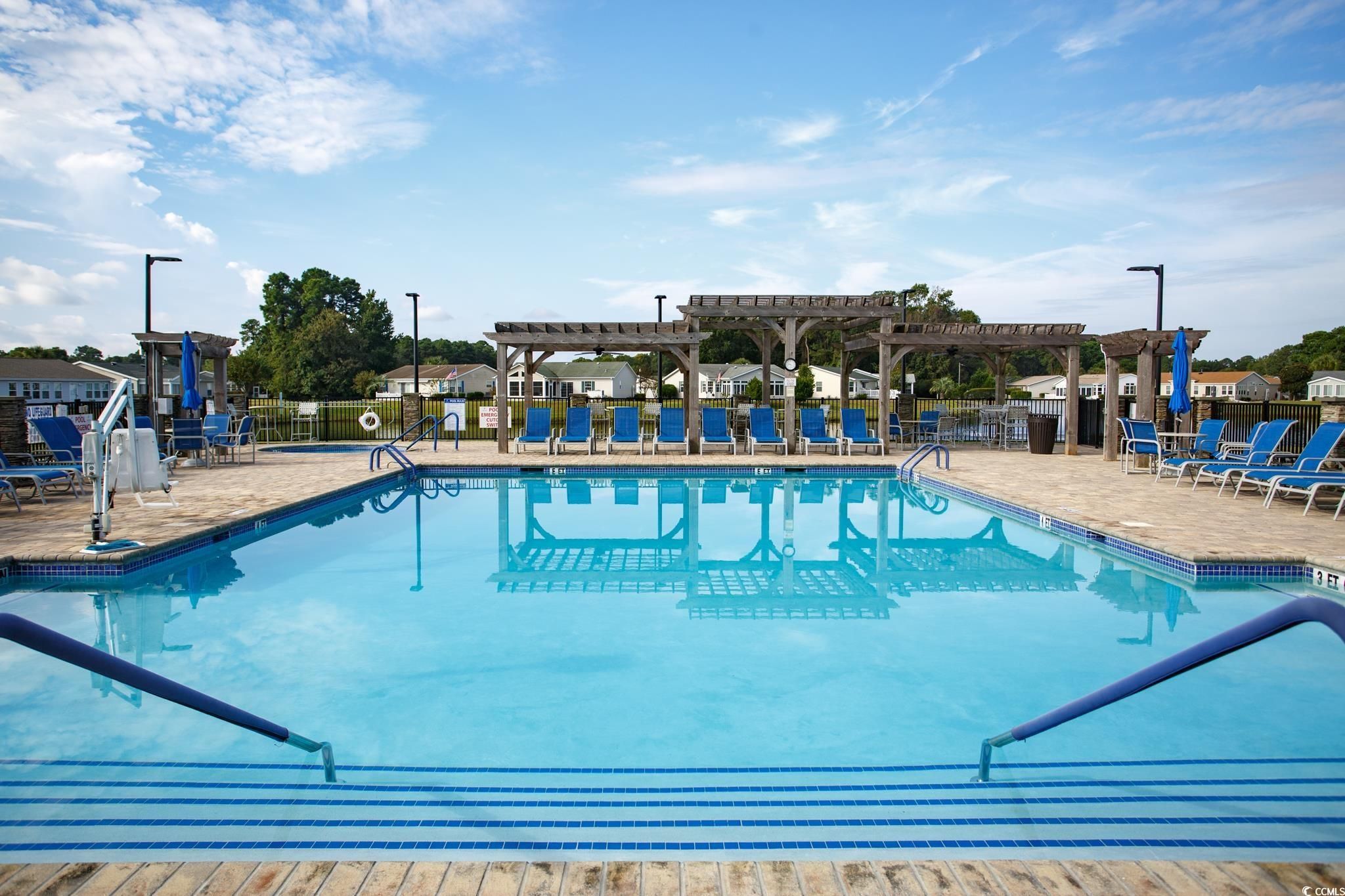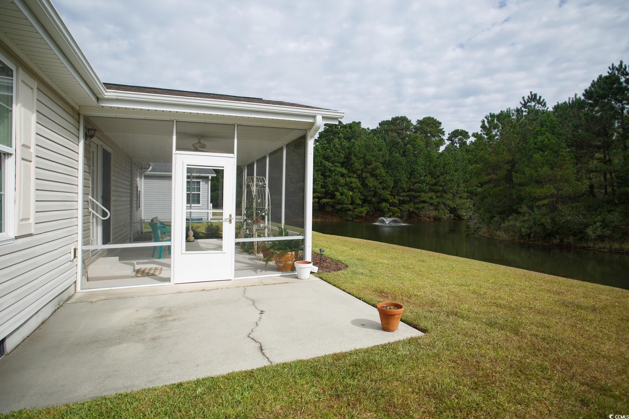 Colorful flowers welcome you home to this bright and impeccable 3-bedroom, 2-bath with gleaming hardwood floors, modern comforts, and tranquil views of the pond from a screened porch in the back. Spacious Master Suite with a tray ceiling, double vanity, separate shower, and garden tub for relaxed soaking. Fully equipped kitchen with stainless steel appliances, work island, backsplash, and desk area. New fridge, washing machine, and dryer. Freshly painted interior. Ceiling fans in porches and most rooms. A new roof was installed in 2024. This peaceful and active 55+ community covers lawn care, leaving you more time to enjoy the indoor and outdoor pools, hot tub, pickleball, shuffleboard, gym, lake with paddle boats, fishing lake, craft room, ballroom, exercise room, billiards, and library. Excellent location close to the beach, shopping, restaurants, golf courses, and medical centers, including Conway hospital. Just a short drive to downtown Conway and the Riverwalk. Lot fee covers mowing, edging, trash, lot taxes, and full amenity access. Move right in and call this your refuge! LEASED LAND
