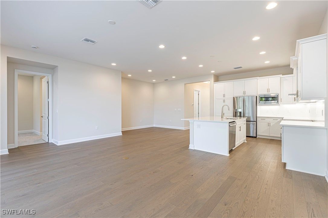 New Construction, available for immediate occupancy!! “Halo” floor plan has 2 bdrms, a den and 2 baths. Upgraded gourmet kitchen with stainless steel appliances and designer lighting, which includes a gas dryer and gas range, quartz countertops, white cabinets with soft close, with built-in Cabinet Pantry! Glass entry doors, engineered wood flooring in foyer, den, kitchen and family room and upgraded carpet in the bedrooms! The master bdrm is a retreat, a luxurious master bath w/his and her sinks and 2 large walk-in closets. Pre-plumbed for a laundry sink and a patio kneewall with summer kitchen stubout! Valencia Sky amenities includes fitness center, pools, tennis, pickle ball, bocce ball, restaurant, dog park and so much more! All prices subject to increase w/o notice. We do not warrant the accuracy of fees & measurements, information provided is for information only & subject to errors, omissions, assessments, or change of fees without notice. This material is based upon information, which we consider reliable, but because third parties have supplied it, we cannot represent that it is accurate or complete, and it should not be relied upon as such. It is the responsibility of the buyers’ agent and/or their client to verify all information including, but not limited to: fees potential assessments, and measurements.