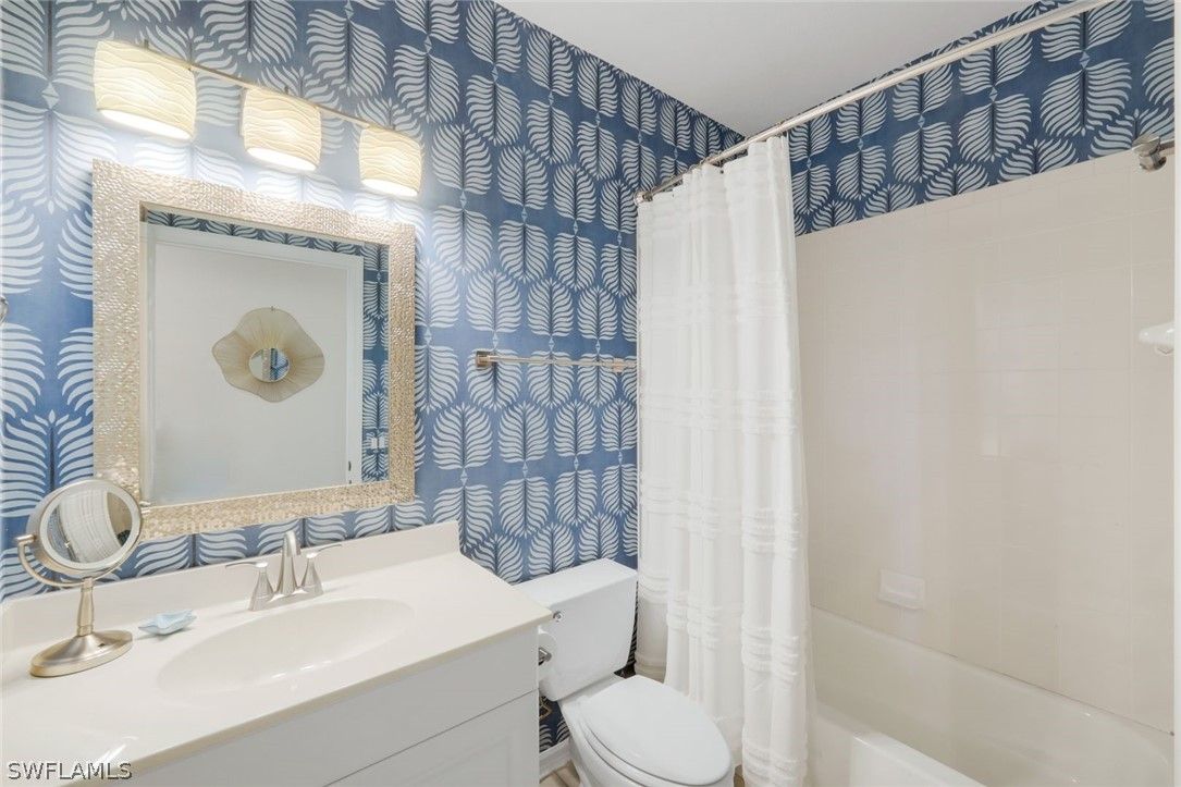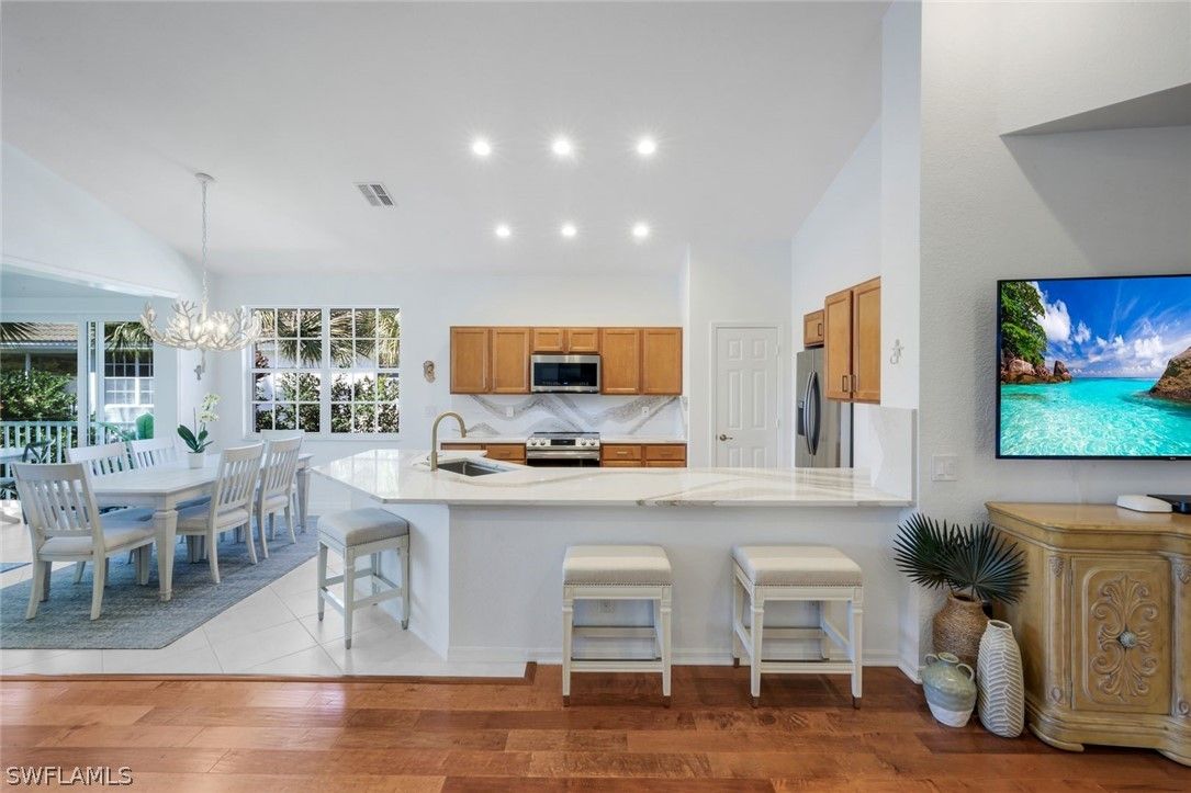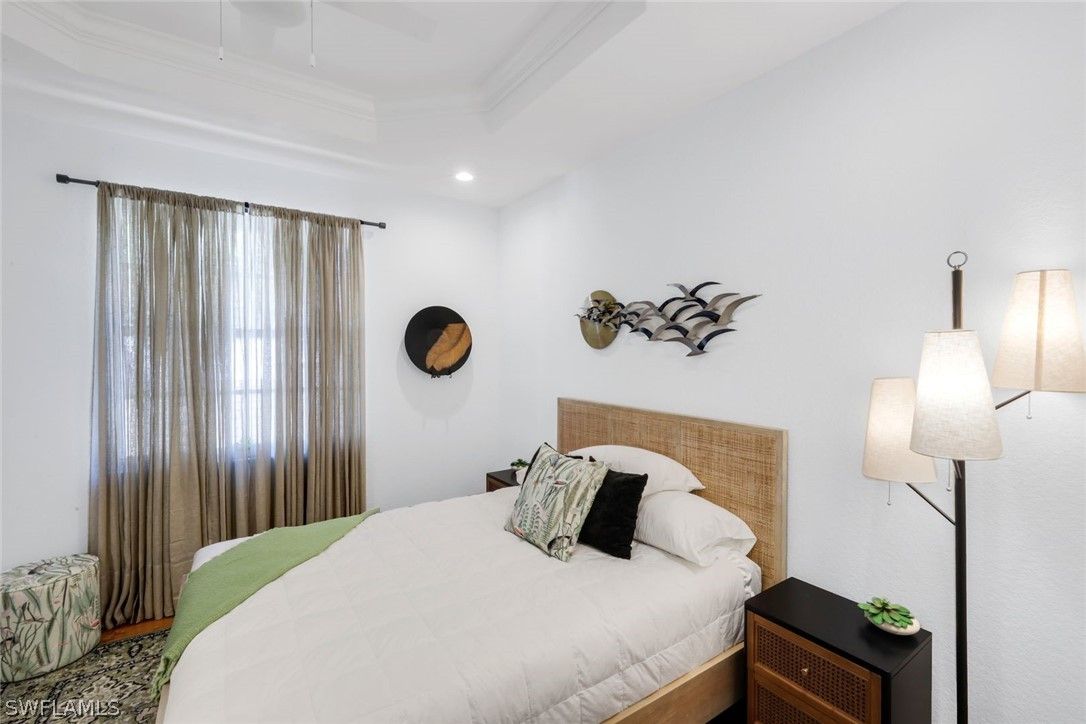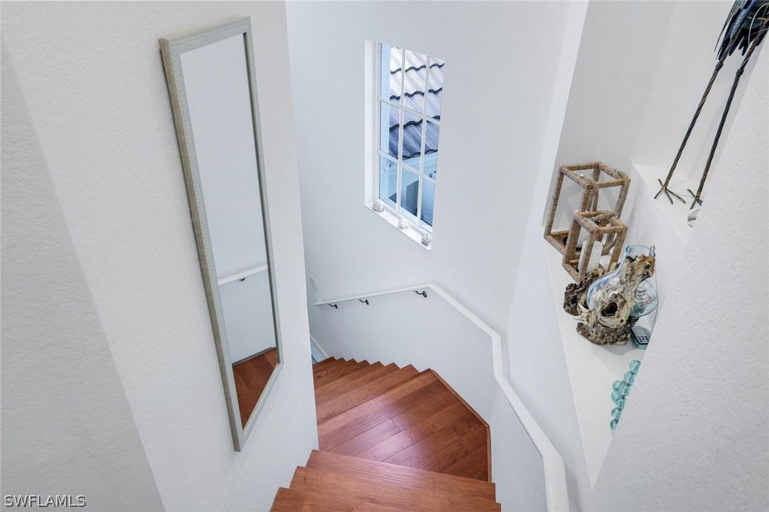 Sunsets, Long Lake views and more from this beautifully renovated, 3 Bedroom + Den (or 4th bedroom option), 2 bath, 2240 sq ft lakefront condominium located in Bay Pointe of Bonita Bay. This second floor/upper condominium has been "reimagined" as part of the renovations. The floor plan is like no other in Bay Pointe, and provides true "open living", to include soaring ceilings, crown moldings, and incredible sunsets based on its western, rear facing location. This beautiful home offers many updates including Quartz counters and matching backsplash in the "chef inspired" kitchen, new convection range/cooktop, all Stainless appliances, newer kitchen cabinets w/soft close features, Breakfast bar and Dining area. The Lanai is glassed in with impact resistant sliding doors, which brings the outside in when desired, complete with custom remote-controlled shades. Additionally, there are five ceiling fans and Decora switches throughout the home. This home boasts a "Great Room" concept with volume ceilings and comfortable dining area with beautiful long views of the Lake and Bonita Bay's Natural Wildlife. The Master Bedroom welcomes you with 8 ft. double doors, vaulted ceilings, walk in closet with custom features, a full ensuite with dual sinks, separate soaking tub and large shower. The Den/fourth bedroom is perfect for accommodating additional guests when necessary, or it is perfect to be used as a private office. Other updates include a new roof in 2021, new HWH in 2023 as well as a newer washer and dryer set. The Clubhouse at Bay Pointe at Bonita Bay has a beautiful pool, spa/tub, enclosed gathering room with sink/fridge/tables/chairs, and a private fitness facility for Bay Pointe Residents only. Amenity rich Bonita Bay is truly a wildlife sanctuary. All Residents of Bonita Bay have exclusive access to Bonita Bay's Luxurious Private Beach Park and Pavillion directly on Bonita Beach, a full-service Marina and Restaurant, Pristine Parks, twelve miles of Bike/Jog/Walking paths and nature trails, Boat launch, Kayak use, Fishing Pier, Community Tennis/Pickleball/Bocce. Bonita Bay is one of the most beautiful Communities in Southwest Florida keeping nature a component of the Bonita Bay lifestyle. Close to shopping, dining, beaches, and RSW.