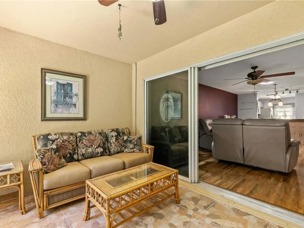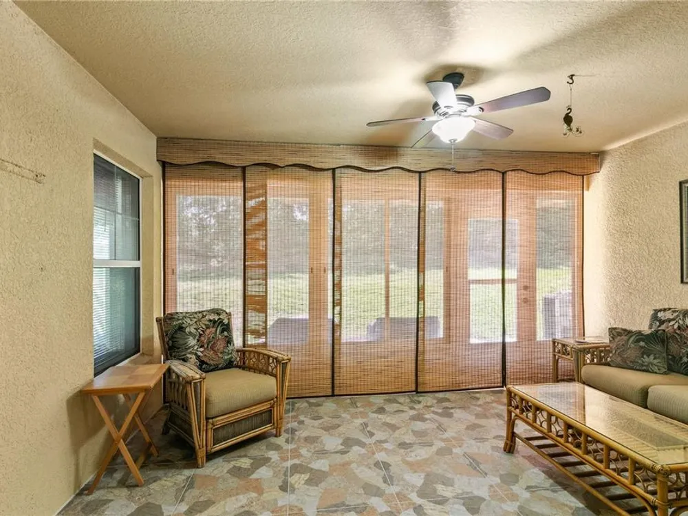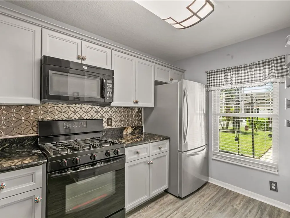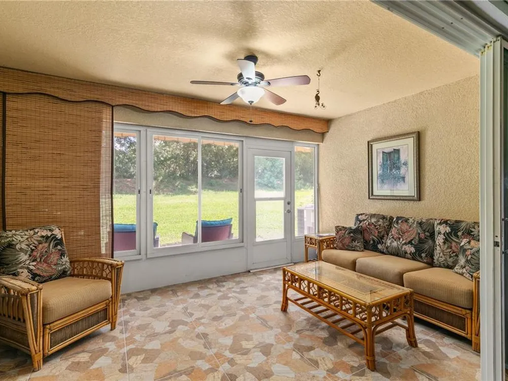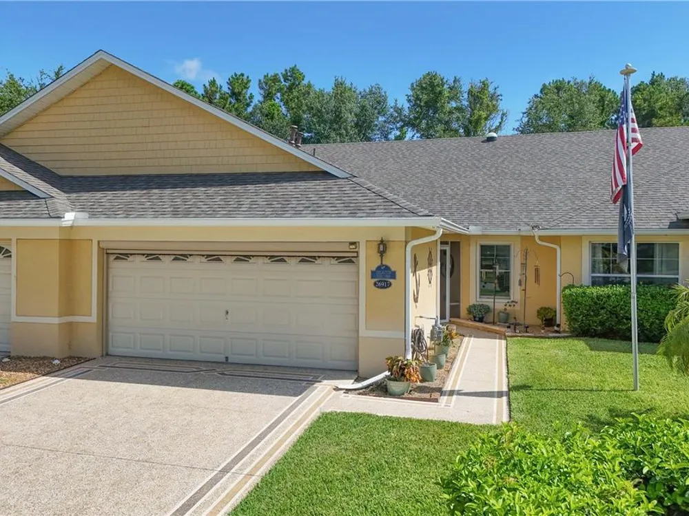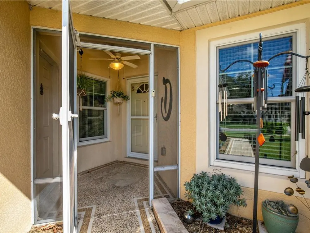 Paradise found! Adorable and well maintained villa in Arlington Ridge. Modern 2 bedroom, 2 bath, maintenance free exterior and yard work. No neighbors behind you in the premier guarded gated community. Situated close to the community amenities, restaurant and pub. 18 hole golf course. No extra cost for social or golf memberships. Driving range, putting greens, lighted tennis and pickleball courts, heated swimming pools, hot tub and SPECTACULAR fitness center. All close to home in this guarded, gated golf cart community. Close to shopping and dining. Roof new in 2024. Floors new in 2021. A/C new in 2021. Gutter guards with leaf filters. Electric screen on the garage. Electric awning over back patio. Porch floor is stone. Master bathroom fully remodeled. Second bathroom has walk in shower tub. Granit countertops in the kitchen. New refrigerator. Gas stove. Indoor laundry room. Back porch is glassed in. Water softener is one year old.