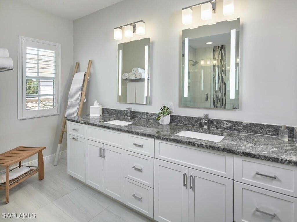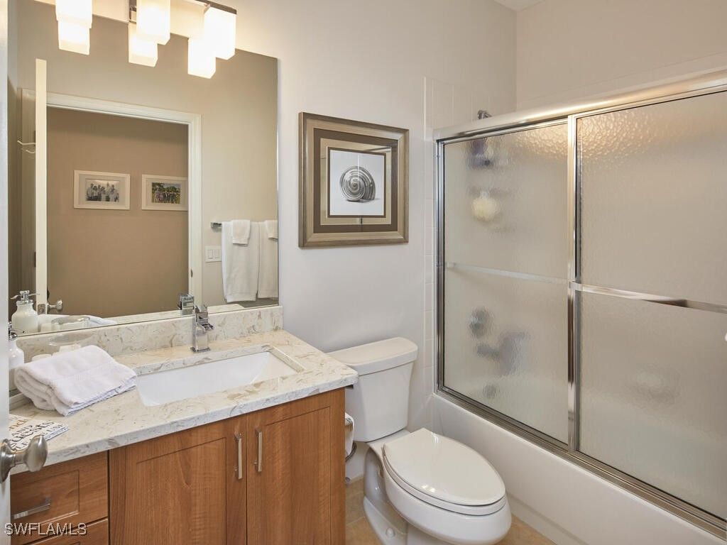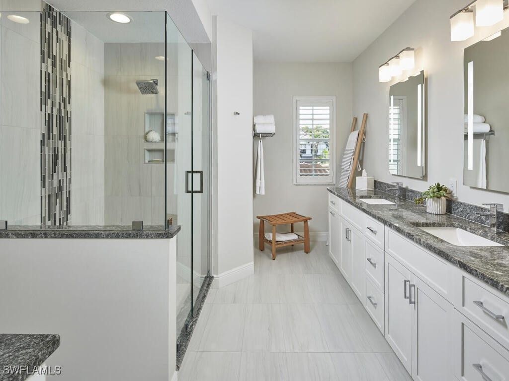 Spectacular in every way with custom updated bathrooms, kitchen, glassed-in lanai with a seamless transition, all overlooking a shaded and tranquil lakeside setting. With three bedrooms and two full baths this perfect 2nd floor Bay Pointe condominium features tile flooring throughout the living areas and fine laminate flooring in the bedroom and stairs. Fine details include plantation shutters throughout quartz countertops, LED lighting, crown moulding and more. The unmatched kitchen includes custom 42-inch soft close cabinets, soft close drawers, hidden under cabinet electrical outlets, under cabinet lighting, granite sink, quartz countertops, a Jenn-Air refrigerator, Bosch induction cooktop, U-Line wine cooler. The Bay Ponte condominium is rare in that not only do residents enjoy the community pool and spa but Bay Pointe also has a gathering room and fitness room. Experience all that Bonita Bay offers with access to a private marina, community beach facility, the finest club lifestyle available with the Bonita Bay Club’s dining, golf, tennis, pickleball, fitness and spa facilities.