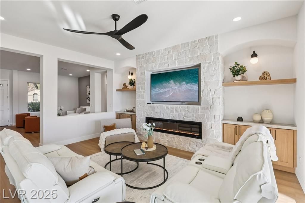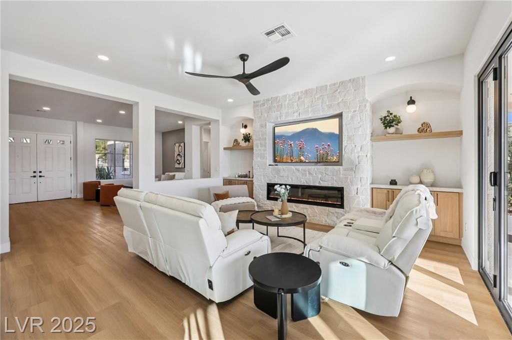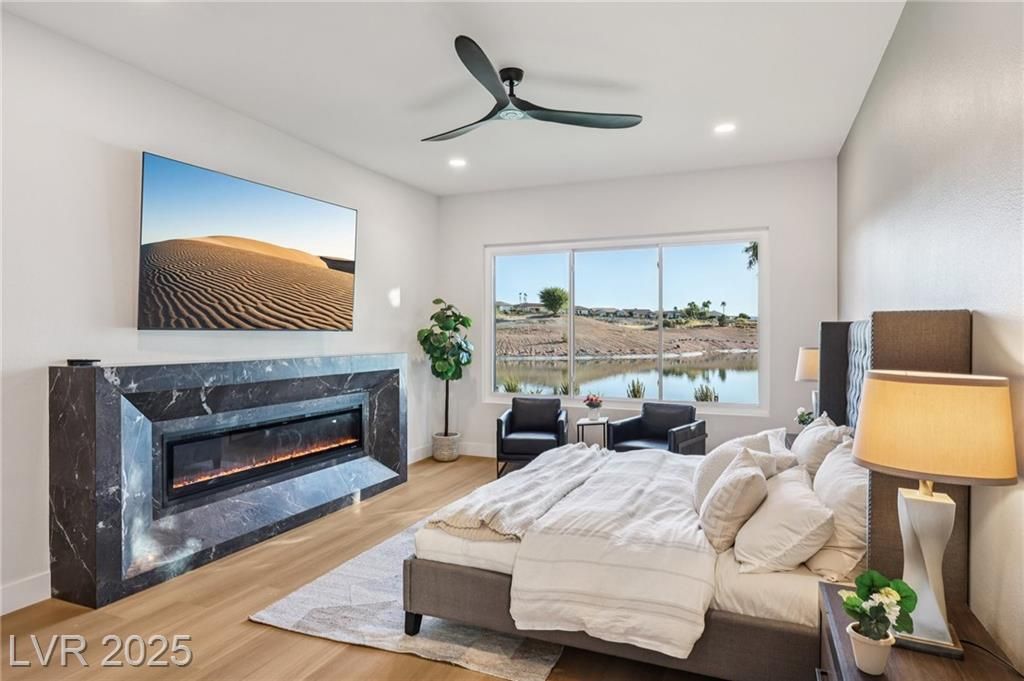 EXPERIENCE THE LUXURY OF 55+ LIVING LIVING IN SUN CITY ANTHEM. NESTLED PERFECTLY ON AN OVERSIZED LOT WITH STUNNING VIEWS OF THE WATER, THIS IS ONE OF A KIND, FULLY REMODELED HOME WITH FULLY PAID OFF SOLAR HAS ABSOLUTELY NO EXPENSES SPARED! UPGRADED W/ TOP QUALITY MATERIALS & FIXTURES INCLUDING: BRAND NEW FLOORS THROUGHOUT, FRESH INTERIOR TWO TONE PAINT, TWO-TONE CABINETRY W/ HIGH END DESIGNER HARDWARE, CUSTOM FABRICATED TAJ MAHAL QUARTZITE COUNTERTOPS W/ OVERSIZED WATERFALL ISLAND, BRAND NEW UPGRADED APPLIANCE PACKAGE WITH 48in FORNO RANGE AND DOUBLE OVEN IN THE KITCHEN, 2 CUSTOM BUILT FIREPLACE FEATURE WALLS, HAND PICKED DESIGNER FIXTURES/FAUCETS/LIGHTING THROUGHOUT, A SPA STYLE PRIMARY BATH WITH BEAUTIFUL WHITE OAK CABINETRY, OVERSIZED MIRRORS & A CUSTOM TILED SHOWER! FULL LANDSCAPE OVER-HALL FRONT AND REAR COVERED PARIO AND LIGHTING! ENJOY THE TRANQUIL LIFESTYLE OF THIS UNIQUE WATER VIEW AND VIBRANT 55+ COMMUNITY. THIS HOME IS COMPLETELY TURN KEY AND READY TO MOVE IN!