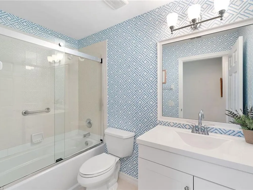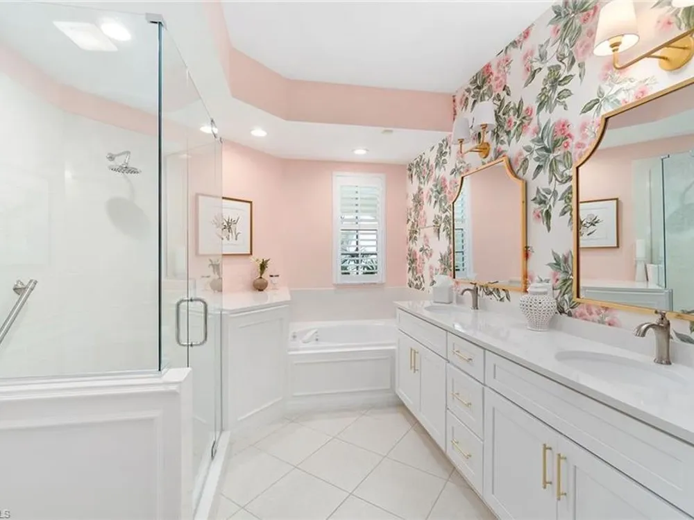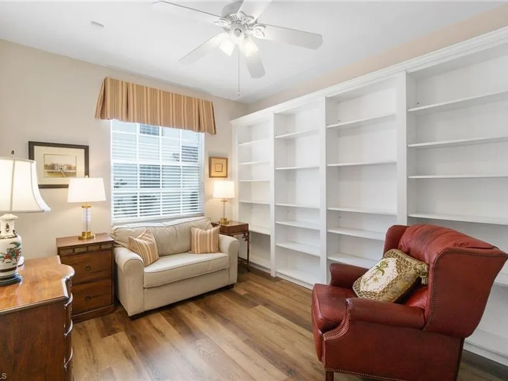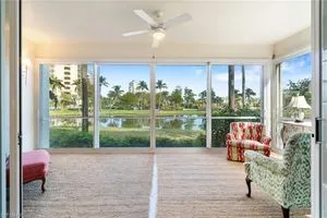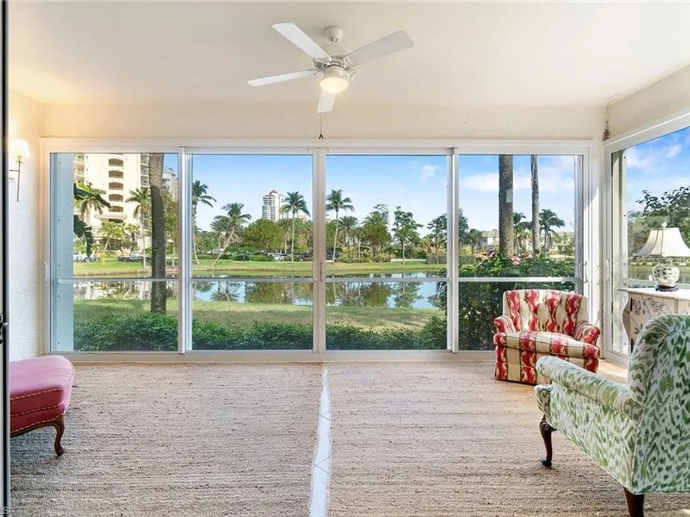 Experience effortless elegance in this beautifully upgraded first-floor residence in the coveted Bay Pointe at Bonita Bay. This spacious condominium lives like a single-family home—without the maintenance—offering the ideal blend of comfort, luxury, and location. Step into the expansive enclosed lanai, where tranquil views of a sparkling pond and lush, manicured landscaping create a serene backdrop for morning coffee or evening relaxation. Watch native wildlife and soak in the peaceful natural surroundings day and night. At the heart of the home is a show-stopping kitchen featuring upgraded quartz countertops, sleek white cabinetry, newer stainless-steel appliances, and stylish gold accents. A stunning glass tile backsplash adds an extra layer of sophistication, while the oversized pantry with built-in shelving ensures ample storage for all your culinary needs. Both bathrooms have been thoughtfully renovated with premium quartz countertops, white cabinetry, and designer wallpaper, adding a vibrant touch to the elegant finishes. The expansive primary suite offers the ultimate retreat, complete with a large walk-in closet, private lanai access, dual vanities, a soaking tub, and a separate walk-in shower.Additional highlights include beautiful tile flooring throughout the main living areas and matching luxury vinyl in the bedrooms and den. The den is accented with built-in cabinetry and shelving, making it a perfect office or flexible living space. A generous two-car garage rounds out this well-appointed home.Enjoy all that Bonita Bay has to offer, including a private beach park on the Gulf of Mexico, over 12 miles of scenic walking and biking trails, three community parks, and a full-service marina. Optional membership to the Bonita Bay Club grants access to world-class golf, tennis, dining, spa services, and more—some of the finest amenities in Southwest Florida.