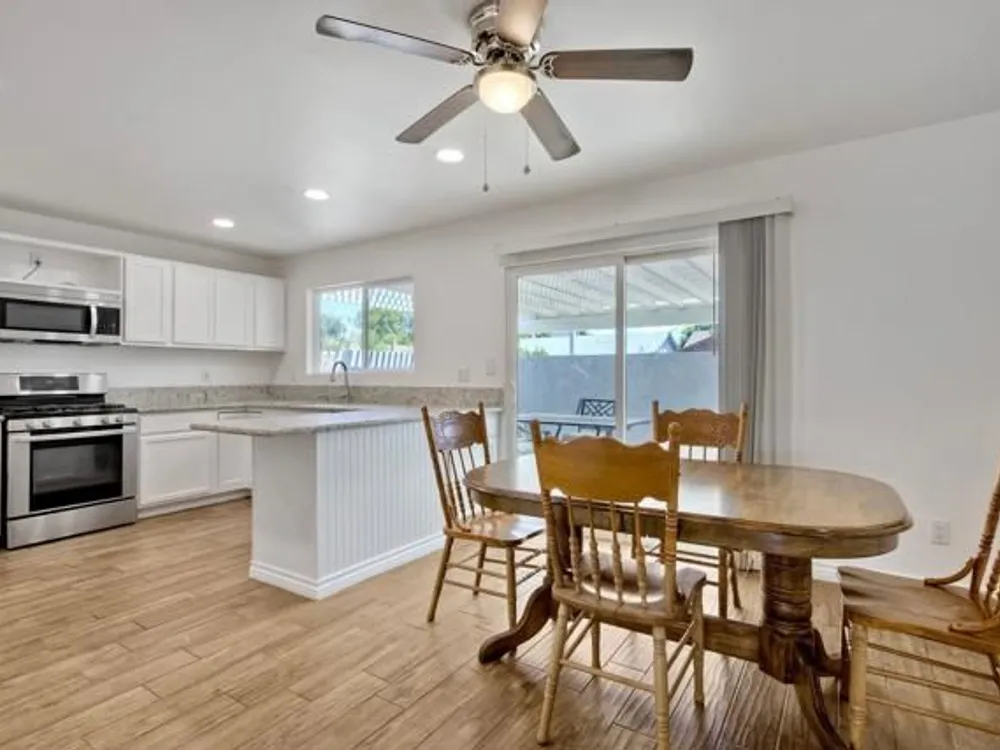 This beautifully updated 4-bedroom, 2-bathroom single-family ranch home blends modern comfort with timeless style, creating the perfect setting for everyday living. Inside, you’ll find a thoughtfully designed open floor plan filled with natural light, highlighted by newer planked tile flooring that flows seamlessly throughout the home. The freshly remodeled kitchen offers both beauty and function with contemporary finishes, while the newly updated bathrooms bring a spa-like touch to your daily routine. Every detail has been carefully chosen to provide a balance of elegance and practicality. Step outside and discover your own private oasis. A spacious front courtyard invites you to enjoy quiet mornings with coffee or intimate al fresco dining under the stars. The expansive backyard is a true retreat, offering multiple mature fruit trees—including pomegranate, orange, apricot, and peach—perfect for harvesting fresh, seasonal flavors right at home. With room to relax, play, or entertain, this outdoor haven is designed to be enjoyed year-round. Beyond the property, the location offers a lifestyle of convenience and natural beauty. Just a short walk away, the scenic Salt Creek Trail provides 8.5 miles of paved, stroller- and wheelchair-friendly pathways, ideal for cycling, morning jogs, or leisurely strolls along the creek bed. It’s the perfect blend of neighborhood charm and access to the outdoors. Move-in ready and brimming with modern updates, this home is more than just a place to live—it’s a place to thrive. With its combination of thoughtful upgrades, inviting outdoor spaces, and a prime location, this rare find is ready to welcome you home.