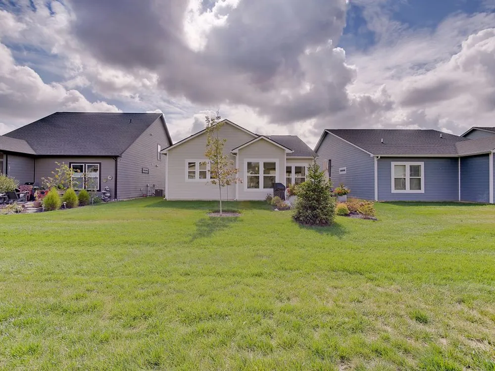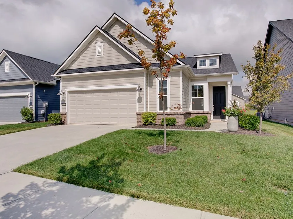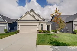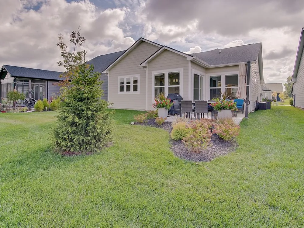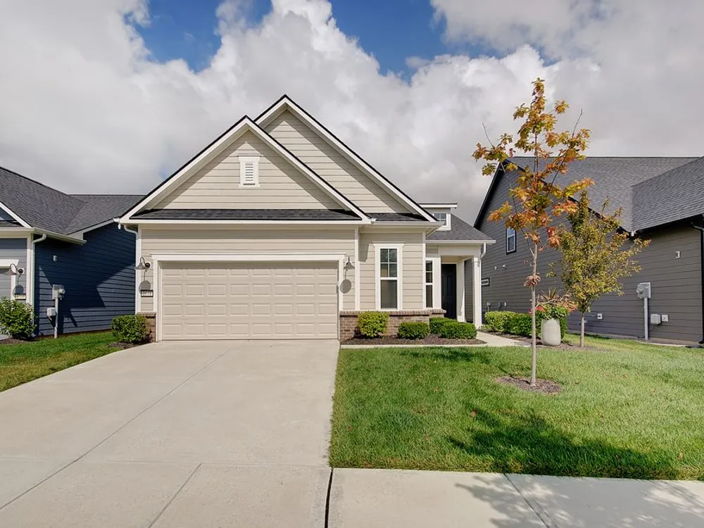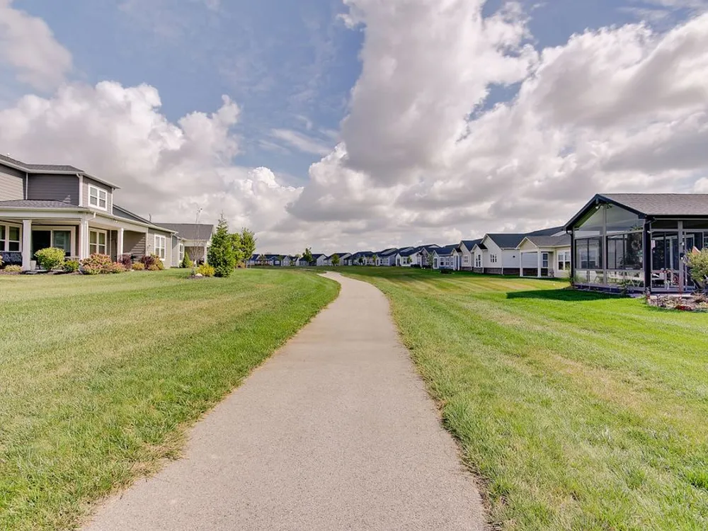 Experience the pinnacle of maintenance-free living in this exquisite Meadow floorplan home. This residence offers a harmonious blend of modern design and comfort. The open floor plan, enhanced by high ceilings, allows natural light to pour in, creating a bright and inviting atmosphere. Ample storage options, including a finished garage with an expansive bump-out for your golf cart, ensure functionality meets style. Unwind in the charming sunroom, perfectly positioned off the kitchen, to enjoy serene sunrises. Enjoy evenings on your oversized patio! The community amplifies the allure of this home with resort-style amenities such as a 13,000-square-foot clubhouse, indoor and outdoor pools, a fitness center, and a golf simulator. Additionally, multiple athletic courts and picturesque walking paths provide recreational opportunities for all. Indulge in the upscale lifestyle this vibrant community offers.