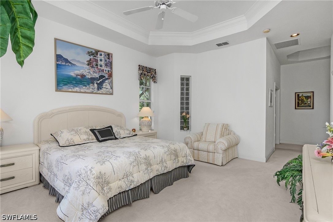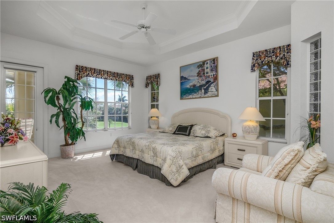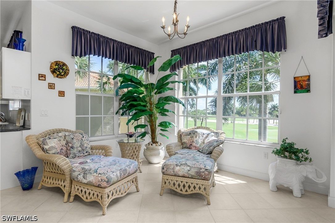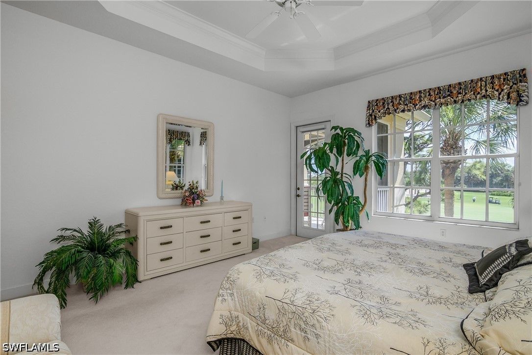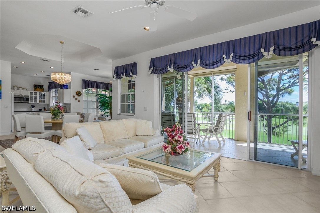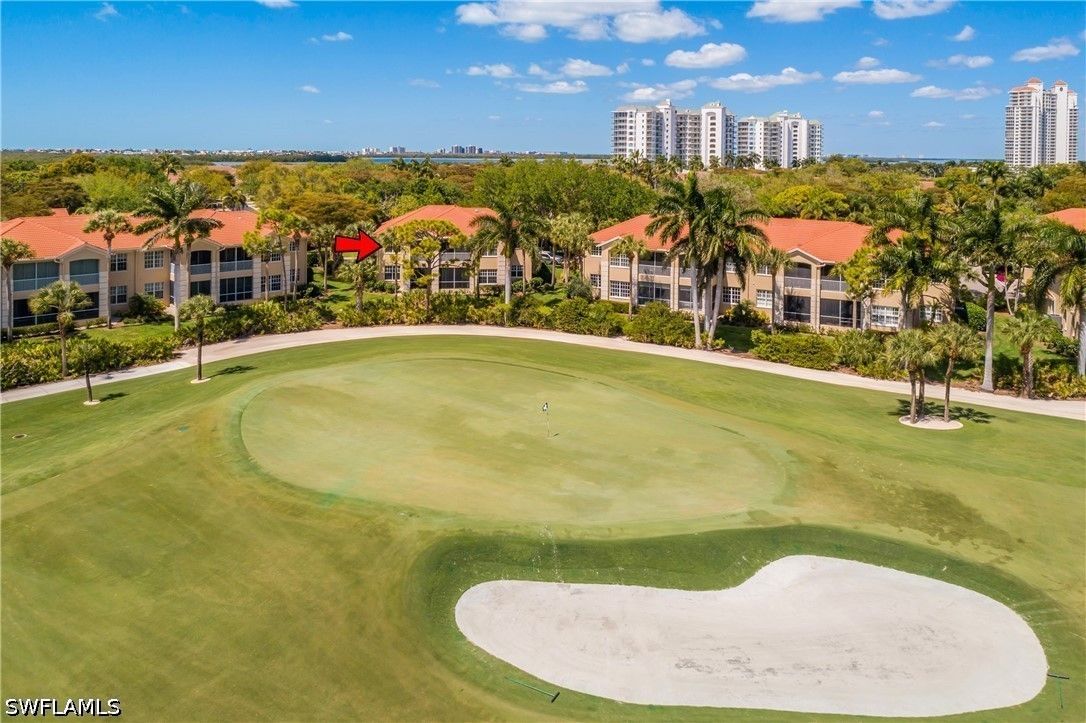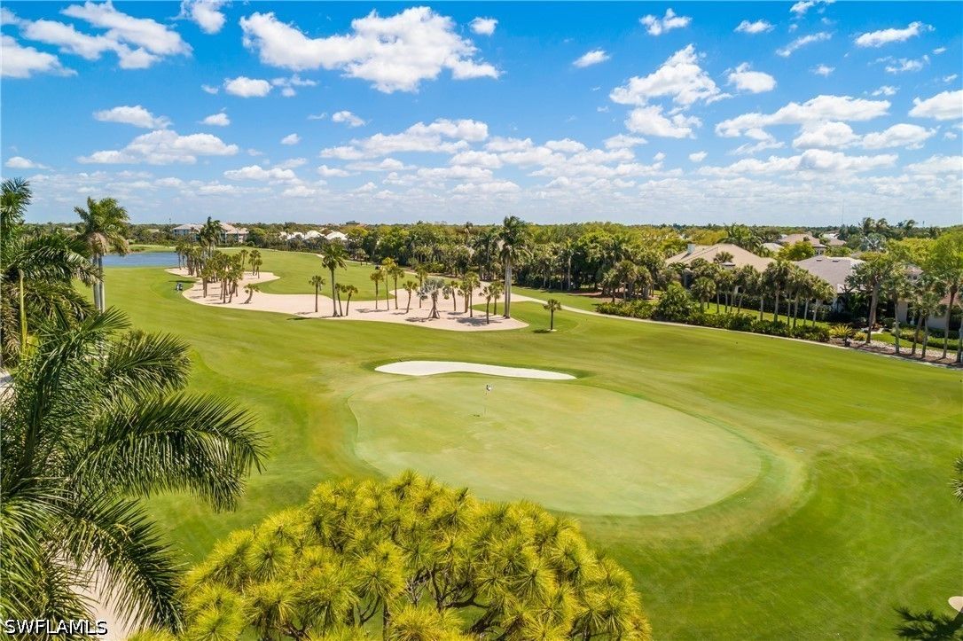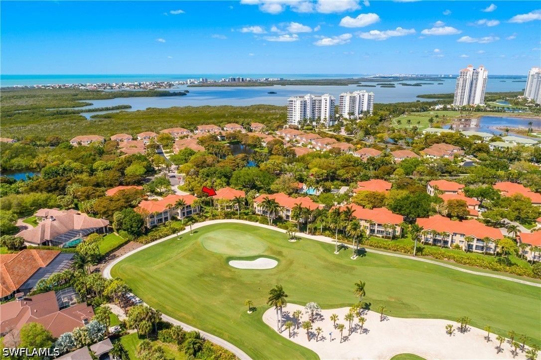 The Hamptons at Bonita Bay offers an exceptional blend of privacy, space, and resort-style living within Bonita Bay. This intimate, low-density condominium enclave features beautifully designed carriage homes, a private community pool and spa, and access to world-class amenities including a private beach park, marina with waterfront dining, 12 miles of scenic walking and biking trails, three community parks, and optional golf club membership. This residence is one of only two units in the building, capturing stunning southeastern views over the 14th green of the Bay Island golf course. Offering three bedrooms plus a den, three full bathrooms, a two-car garage, and a private elevator, it lives like a single-family home with the ease of maintenance-free living. Inside, the open-concept layout spans approximately 2,600 square feet and is thoughtfully appointed with diagonal tile in the main living areas, plush carpeting in the bedrooms, tray ceilings with crown molding, and recessed lighting throughout. The owner’s suite is a true retreat, featuring a generous walk-in closet, dual vanities, and a separate soaking tub and walk-in shower. The kitchen is both functional and inviting, complete with Corian countertops, a full appliance package, and a walk-in pantry. Just beyond the gates, convenience meets lifestyle along the U.S. 41 (Tamiami Trail) corridor, where dining, shopping, and everyday essentials are moments away. Directly in front of the community, Promenade at Bonita Bay offers an upscale, walkable destination with charming boutiques, cafés, and restaurants—perfect for enjoying the vibrant coastal lifestyle right at your doorstep.