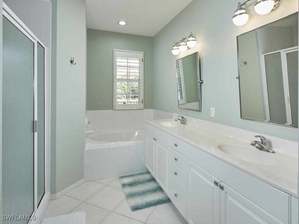 Turnkey furnished opportunity waiting for you to enjoy for season. Freshly painted in neutral tones while all carpets and tile floors have been professionally cleaned (2025). Additional refinements to your new home: new GE range (2024), smart garage door opener with battery backup (2024). In 2022, a bathroom refresh was completed including painting, installing new light fixtures, mirrors, medicine cabinets and toilets. Other thoughtful updates include newer carpet on the stairs; kitchen sink, faucet, and garbage disposal replacement (2021); lanai sliding door runners and rollers serviced as well as lanai screens upgraded to No Seeum quality. Plus, the LG OLED 55” television, beverage cooler & Sonos sound system makes entertaining or watching your favorite team a breeze. While driving through the neighborhood you will notice the recent Bay Pointe enhancements: paver driveways and sidewalks, fresh exterior paint as well as new light fixtures and building numbers. Bay Pointe condominium enjoys a spacious pool facility with ample sunning deck and spa, community room and fitness room. Experience all that Bonita Bay offers with access to a private marina, community beach facility, the finest club lifestyle available with the Bonita Bay Club’s dining, golf, tennis, pickleball, fitness and spa facilities.