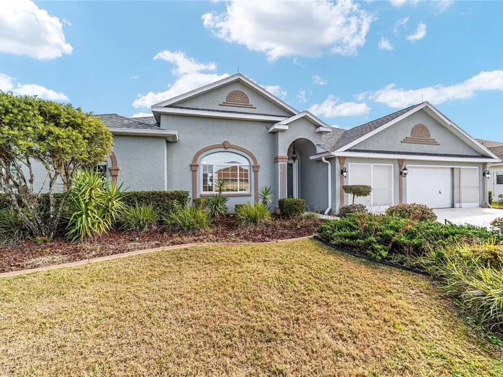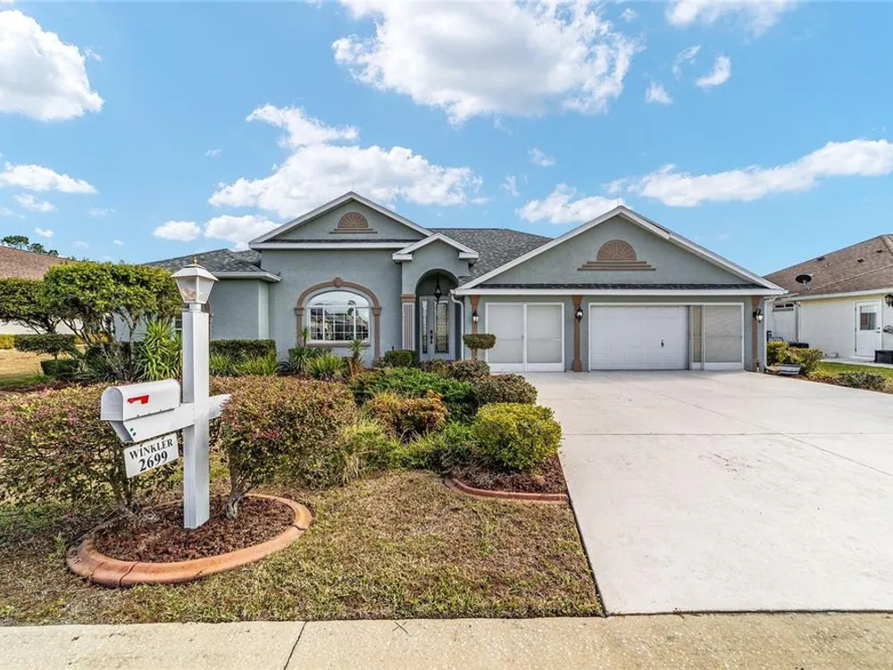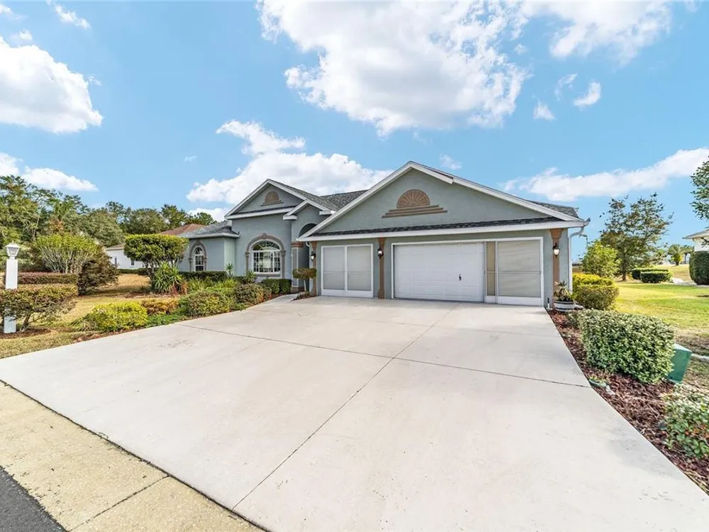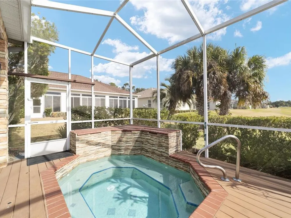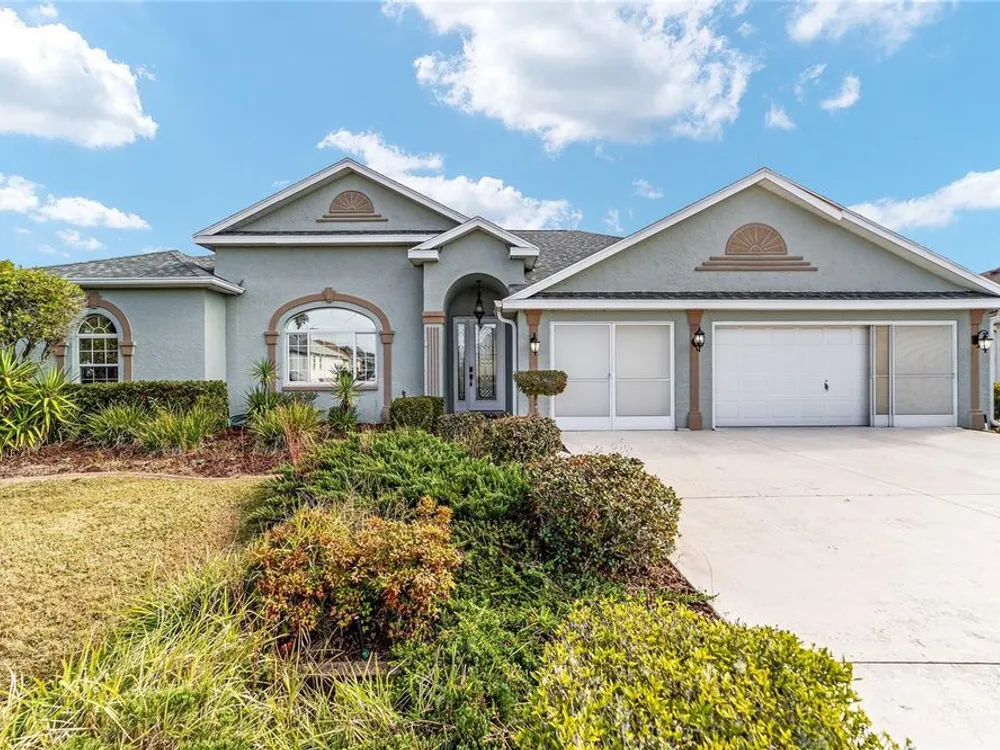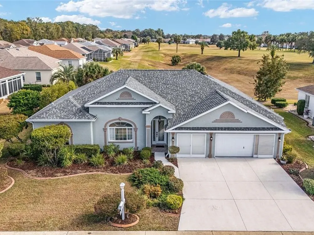 Discover a sanctuary of refinement and comfort in the heart of Ocala at this newly listed Mediterranean Palm model home in Ocala Palms, a highly popular 55+ golfing community. Meticulously maintained and recently updated, this exquisite residence boasts an impressive 2272 square feet of living space, enveloped in sophistication from the landscaped front yard to the luxurious interiors. Step inside to find a sprawling layout featuring a large kitchen equipped with brand-new, top-of-the-line stainless steel GE Pro appliances. The formal dining room and living room shine with new hardwood plank flooring, setting a polished stage for entertaining and daily enjoyment. The primary bedroom suite offers an expansive en-suite bathroom and a vast walk-in closet, with sliding doors that open directly onto the enchanting lanai. One of the three bedrooms has been cleverly adapted to serve as office space, providing flexibility while maintaining the option to revert to a bedroom as your needs dictate. Custom touches such as new crown molding, electric window shades, hardwood flooring and distinguished architectural details like tray ceilings, a gas fireplace, majestic 10-foot doors, and soaring 12-foot ceilings amplify the home's grandeur. The custom-designed lanai is a masterpiece of outdoor living, featuring vinyl plank flooring, decorative stone walls, and pre-wiring for sound. It overlooks the serene golf course, offering an idyllic spot to enjoy the sunrise with a cup of coffee or unwind in the evening with the soothing sounds of the waterfall from the heated, lighted salt water spa tub. Beyond leisure, the home is practical too, with an oversized, screened three-car garage that includes built-in cabinets and easy attic access. Recent upgrades in 2023: a brand-new roof, new top of the line SS kitchen appliances, interior paint, new crown molding, new hardwood plank flooring, and a conversion to salt water to the Jacuzzi on the lanai, including a new electric fully digitalized monitoring system, new pump, and new jacuzzi gas heater. Have peace of mind knowing that along with these 2023 updates, you also have a recently replaced AC system (2017), a 2017 HW heater, and new exterior paint in 2020. The in-round propane gas tank services the gas range, gas fire place and gas jacuzzi heater. Nestled within a community brimming with amenities, this home is literally across the street, a mere minutes from essential shopping at Publix Super Market, restaurants, several medical facilities, beauty salons, veterinary clinic, banks etc. Experience the epitome of Ocala luxury living. Schedule your showing today and see why this home should top your list.