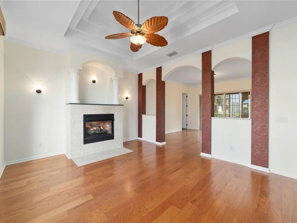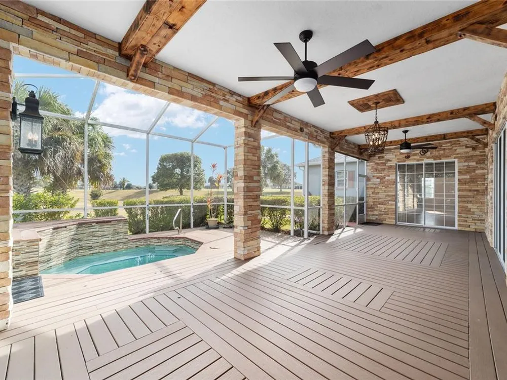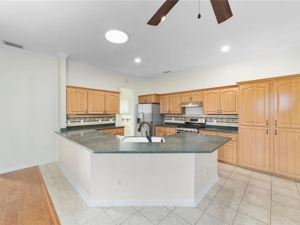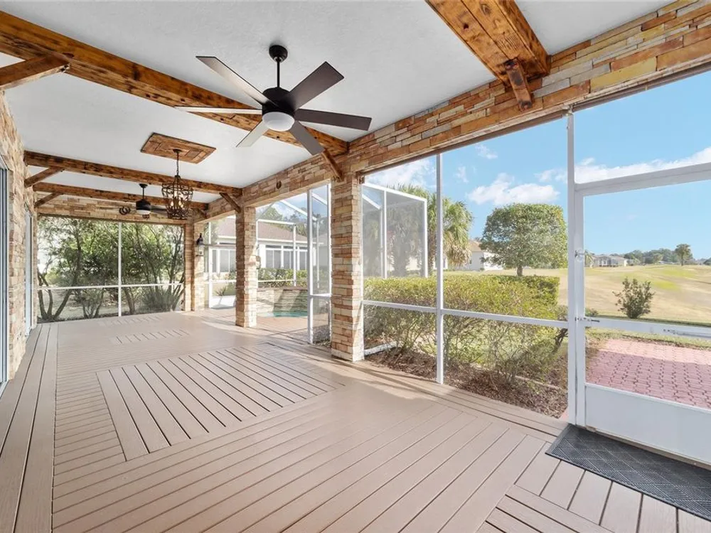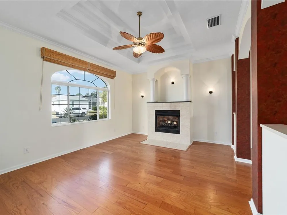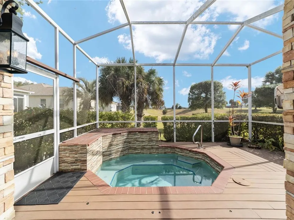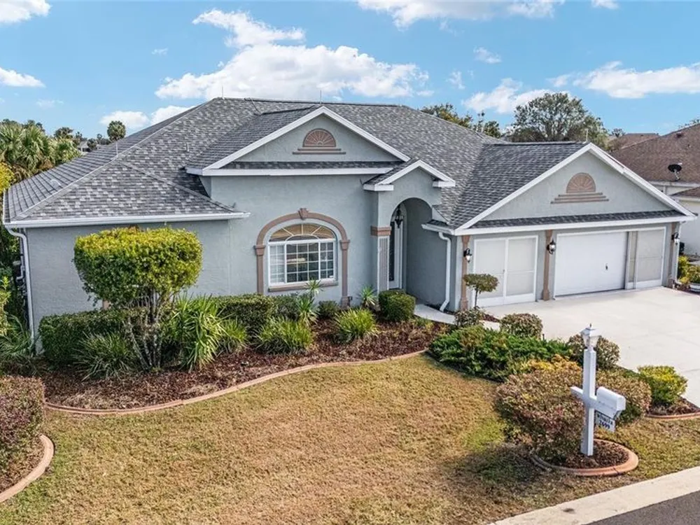 Discover a sanctuary of refinement and comfort in the heart of Ocala at this newly listed Mediterranean Palm model home in Ocala Palms, a highly popular 55+ golfing community. Meticulously maintained and recently updated, this exquisite residence boasts an impressive 2272 square feet of living space, enveloped in sophistication from the landscaped front yard to the luxurious interiors. Step inside to find a sprawling layout featuring a large kitchen equipped with brand-new, top-of-the-line stainless steel GE Pro appliances. The formal dining room and living room shine with new hardwood plank flooring, setting a polished stage for entertaining and daily enjoyment. The primary bedroom suite offers an expansive en-suite bathroom and a vast walk-in closet, with sliding doors that open directly onto the enchanting lanai. One of the three bedrooms has been cleverly adapted to serve as office space, providing flexibility while maintaining the option to revert to a bedroom as your needs dictate. Custom touches such as new crown molding, electric window shades, hardwood flooring and distinguished architectural details like tray ceilings, a gas fireplace, majestic 10-foot doors, and soaring 12-foot ceilings amplify the home's grandeur. The custom-designed lanai is a masterpiece of outdoor living, featuring vinyl plank flooring, decorative stone walls, and pre-wiring for sound. It overlooks the serene golf course, offering an idyllic spot to enjoy the sunrise with a cup of coffee or unwind in the evening with the soothing sounds of the waterfall from the heated, lighted salt water spa tub. Beyond leisure, the home is practical too, with an oversized, screened three-car garage that includes built-in cabinets and easy attic access. Recent upgrades in 2023: a brand-new roof, new top of the line SS kitchen appliances, interior paint, new crown molding, new hardwood plank flooring, and a conversion to salt water to the Jacuzzi on the lanai, including a new electric fully digitalized monitoring system, new pump, and new jacuzzi gas heater. Have peace of mind knowing that along with these 2023 updates, you also have a recently replaced AC system (2017), a 2017 HW heater, and new exterior paint in 2020. The in-round propane gas tank services the gas range, gas fire place and gas jacuzzi heater. Nestled within a community brimming with amenities, this home is literally across the street, a mere minutes from essential shopping at Publix Super Market, restaurants, several medical facilities, beauty salons, veterinary clinic, banks etc. Experience the epitome of Ocala luxury living. Schedule your showing today and see why this home should top your list.