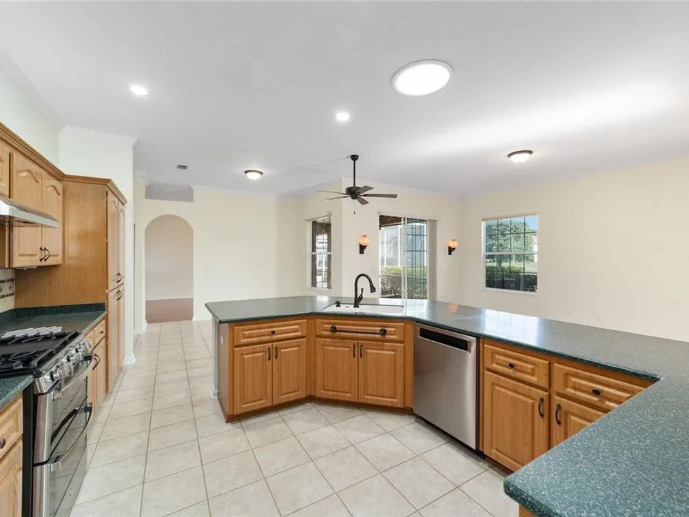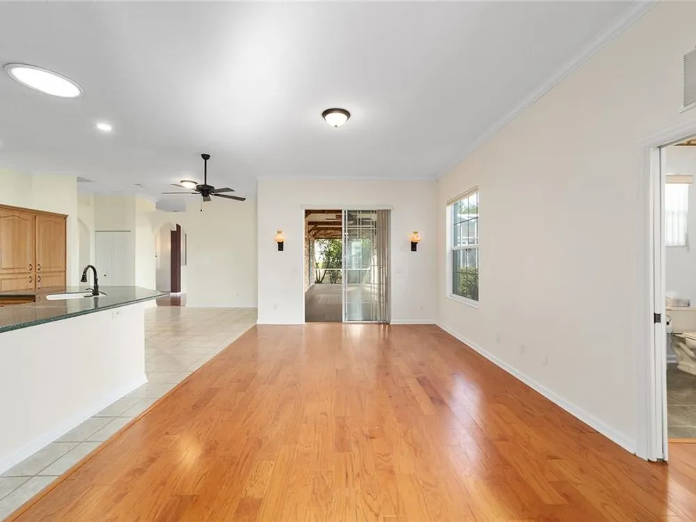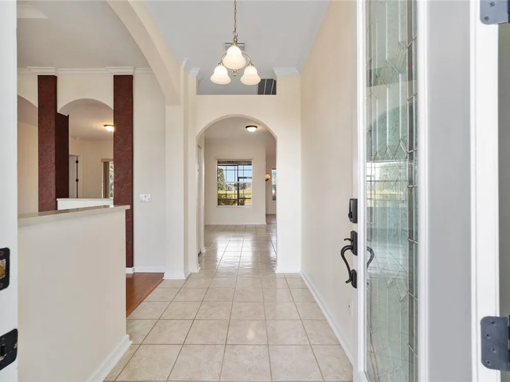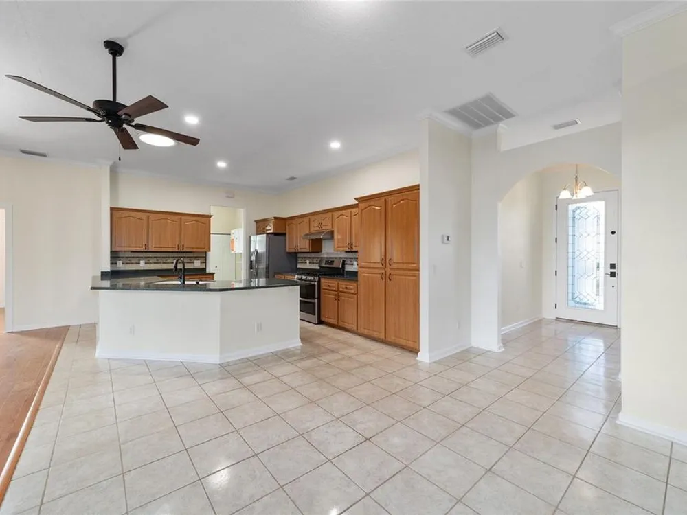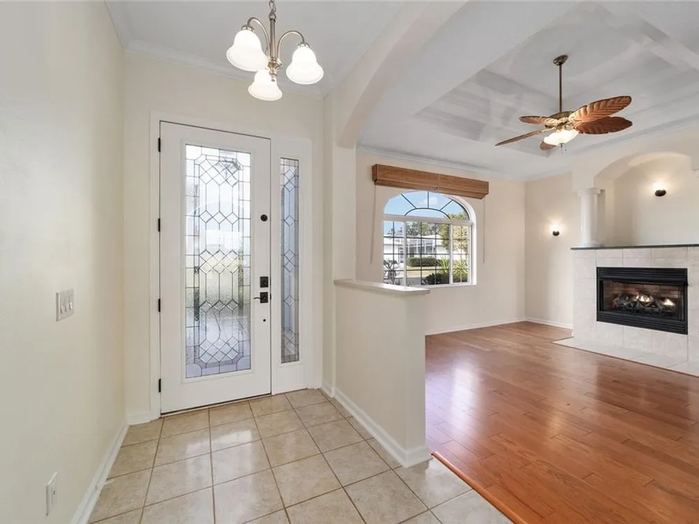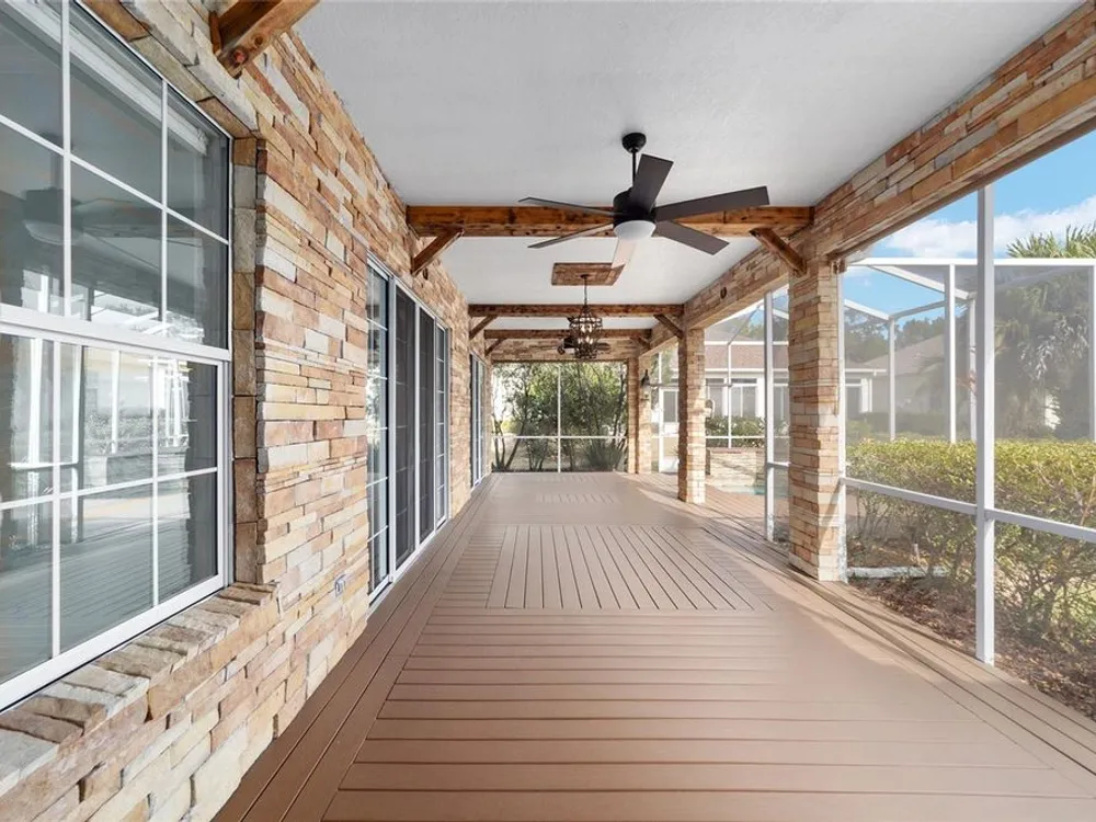 Discover a sanctuary of refinement and comfort in the heart of Ocala at this newly listed Mediterranean Palm model home in Ocala Palms, a highly popular 55+ golfing community. Meticulously maintained and recently updated, this exquisite residence boasts an impressive 2272 square feet of living space, enveloped in sophistication from the landscaped front yard to the luxurious interiors. Step inside to find a sprawling layout featuring a large kitchen equipped with brand-new, top-of-the-line stainless steel GE Pro appliances. The formal dining room and living room shine with new hardwood plank flooring, setting a polished stage for entertaining and daily enjoyment. The primary bedroom suite offers an expansive en-suite bathroom and a vast walk-in closet, with sliding doors that open directly onto the enchanting lanai. One of the three bedrooms has been cleverly adapted to serve as office space, providing flexibility while maintaining the option to revert to a bedroom as your needs dictate. Custom touches such as new crown molding, electric window shades, hardwood flooring and distinguished architectural details like tray ceilings, a gas fireplace, majestic 10-foot doors, and soaring 12-foot ceilings amplify the home's grandeur. The custom-designed lanai is a masterpiece of outdoor living, featuring vinyl plank flooring, decorative stone walls, and pre-wiring for sound. It overlooks the serene golf course, offering an idyllic spot to enjoy the sunrise with a cup of coffee or unwind in the evening with the soothing sounds of the waterfall from the heated, lighted salt water spa tub. Beyond leisure, the home is practical too, with an oversized, screened three-car garage that includes built-in cabinets and easy attic access. Recent upgrades in 2023: a brand-new roof, new top of the line SS kitchen appliances, interior paint, new crown molding, new hardwood plank flooring, and a conversion to salt water to the Jacuzzi on the lanai, including a new electric fully digitalized monitoring system, new pump, and new jacuzzi gas heater. Have peace of mind knowing that along with these 2023 updates, you also have a recently replaced AC system (2017), a 2017 HW heater, and new exterior paint in 2020. The in-round propane gas tank services the gas range, gas fire place and gas jacuzzi heater. Nestled within a community brimming with amenities, this home is literally across the street, a mere minutes from essential shopping at Publix Super Market, restaurants, several medical facilities, beauty salons, veterinary clinic, banks etc. Experience the epitome of Ocala luxury living. Schedule your showing today and see why this home should top your list.