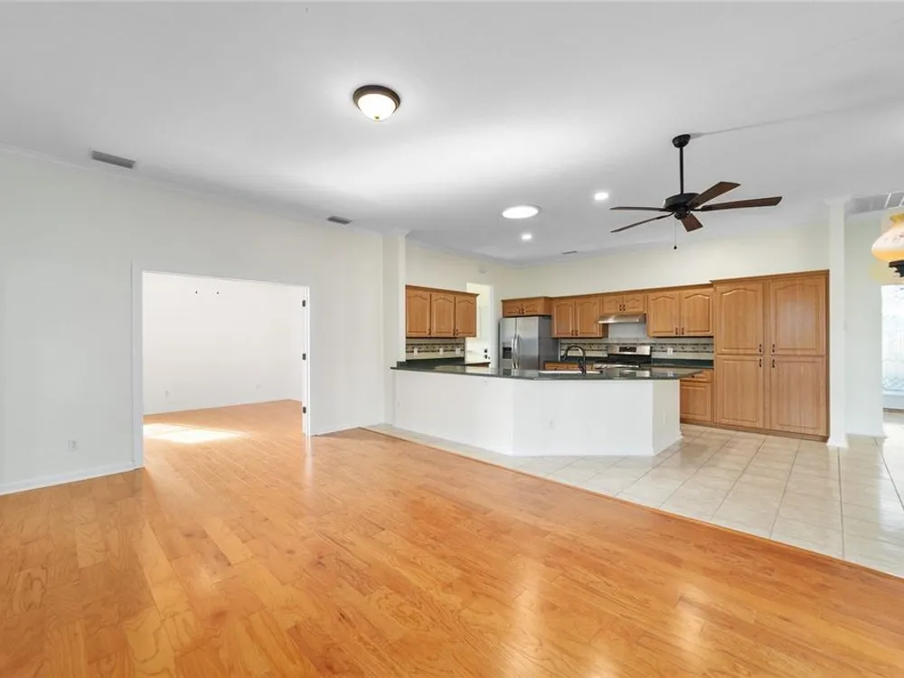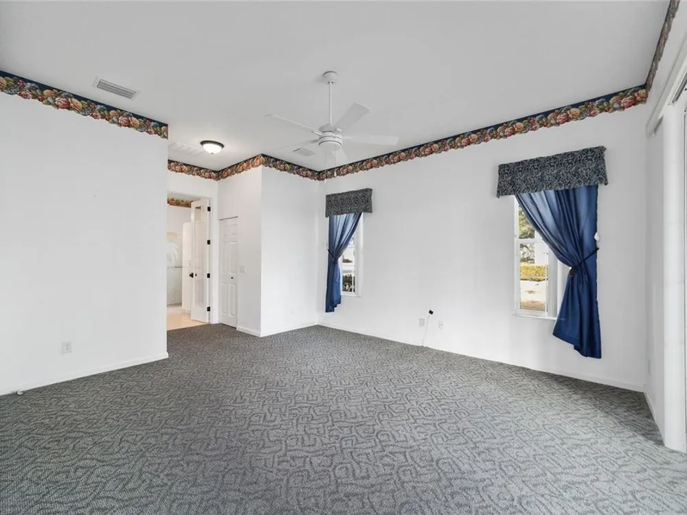 - Ceiling Fan(s), Eat-in Kitchen, Kitchen/Family Room Combo, Main Level Primary, Split Bedrooms, Walk-In Closet(s), Window Treatments