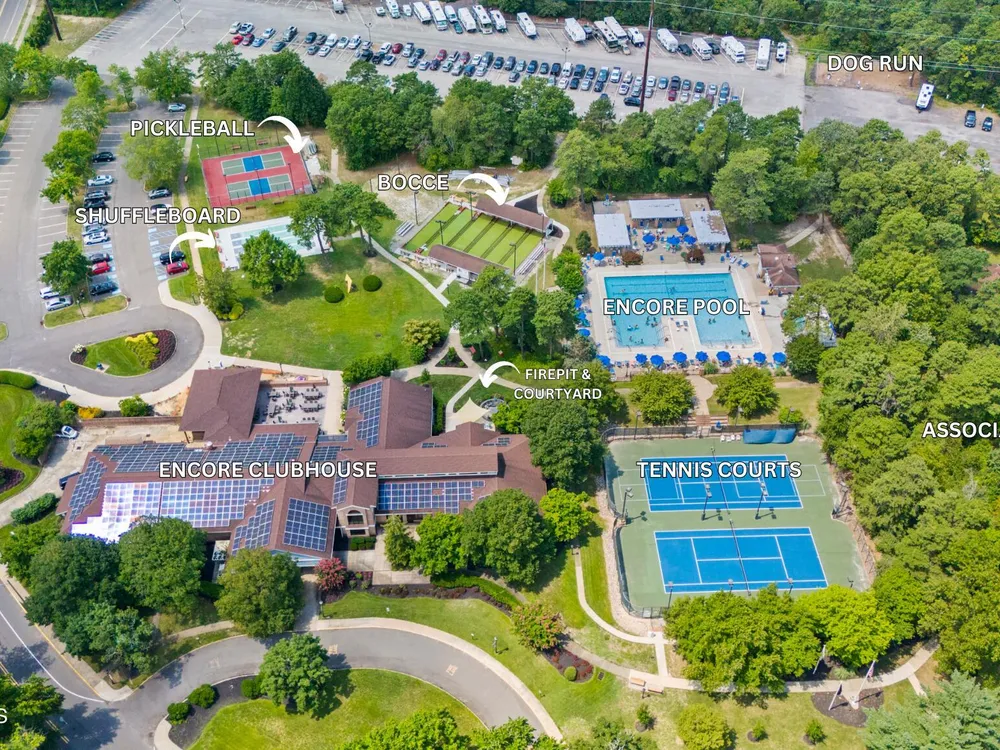 - Includes: Tennis Court(s), Spa/Hot Tub, Shuffleboard Court, Pickleball Court, Management, Controlled Access, Association, Exercise Room, Community Room, Common Access, Swimming, Pool, Golf Course, Clubhouse, Common Area, Jogging Path, Landscaping, Bocci