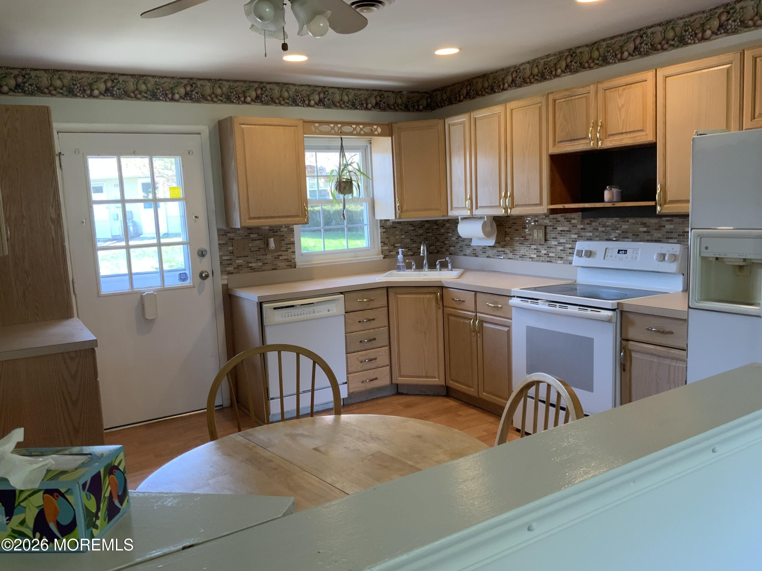 Enjoy an engaging lifestyle in this vibrant 55+ gated community, where boredom is never an option. Residents have access to a wide array of amenities, including golf, two swimming pools, three clubhouses, and numerous activities that cater to various interests. This is a fantastic opportunity to settle on a peaceful cul-de-sac in a comfortable home. The residence offers two bedrooms and one and a half bathrooms, providing ample space for relaxation and privacy. The home features a spacious living room, an eat-in kitchen perfect for casual dining, and a cozy sunroom that invites relaxation. Additionally, there is plenty of storage available in the attic, ensuring convenience and organization for homeowners.