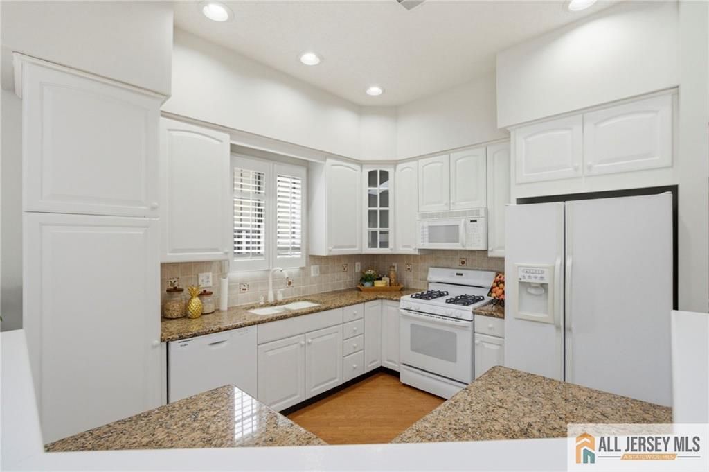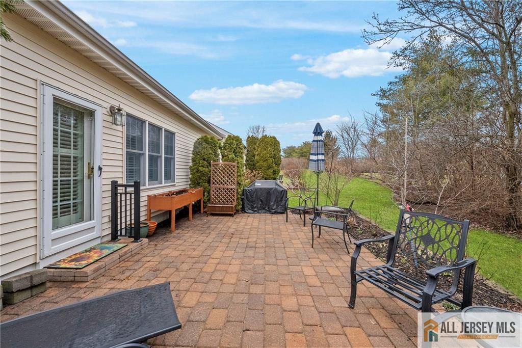 Welcome to 27 Chandler Court in the highly sought after **55+ adult community of Greenbriar at Whittingham** in Monroe. This beautifully maintained Westport model offers comfortable one level living on a premium lot with attractive landscaping and excellent curb appeal. The home features 2 bedrooms and 2 full bathrooms with a spacious open floor plan designed for easy everyday living and entertaining. The large eat in kitchen includes granite countertops, a pantry, separate dinette area, and overlooks the backyard while opening to the inviting family room with skylights, recessed lighting, and a ceiling fan. The family room leads directly to an oversized paver patio, creating a great indoor outdoor flow. A formal living room sits adjacent to the dining room, providing additional space for gatherings. Hardwood floors run throughout the kitchen, living room, dining room, family room, and hallways. The home has been freshly painted and includes a new dishwasher along with a new washer and dryer in the laundry room, which also features a sink, extra cabinetry, and convenient access to the attached one car garage. Additional features include plantation shutters, custom window treatments, recessed lighting, ceiling fans, storm door, and an upgraded front entry lock. Greenbriar at Whittingham offers a vibrant lifestyle with a beautiful clubhouse, indoor and outdoor pools, fitness center, restaurant, tennis, pickleball, social clubs, optional golf membership for the 9 hole course, and 24 hour nurse and security.