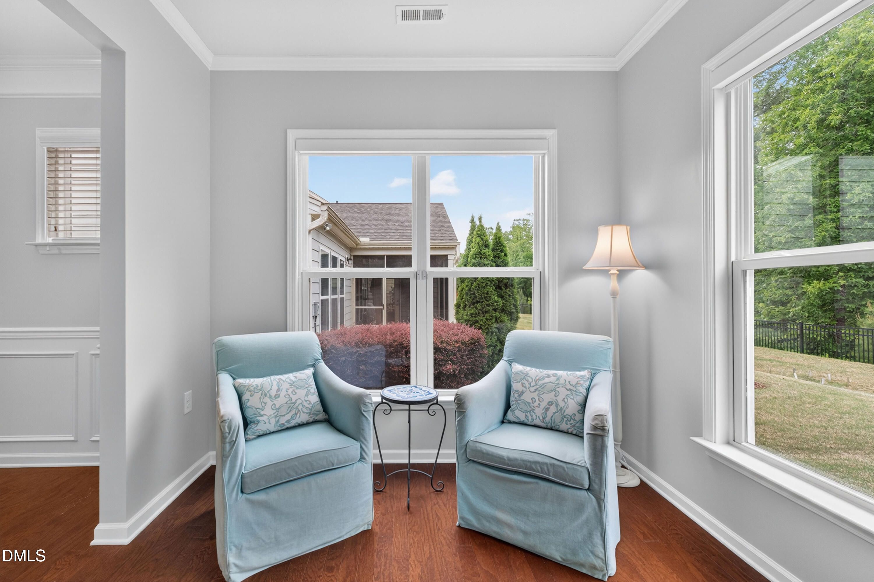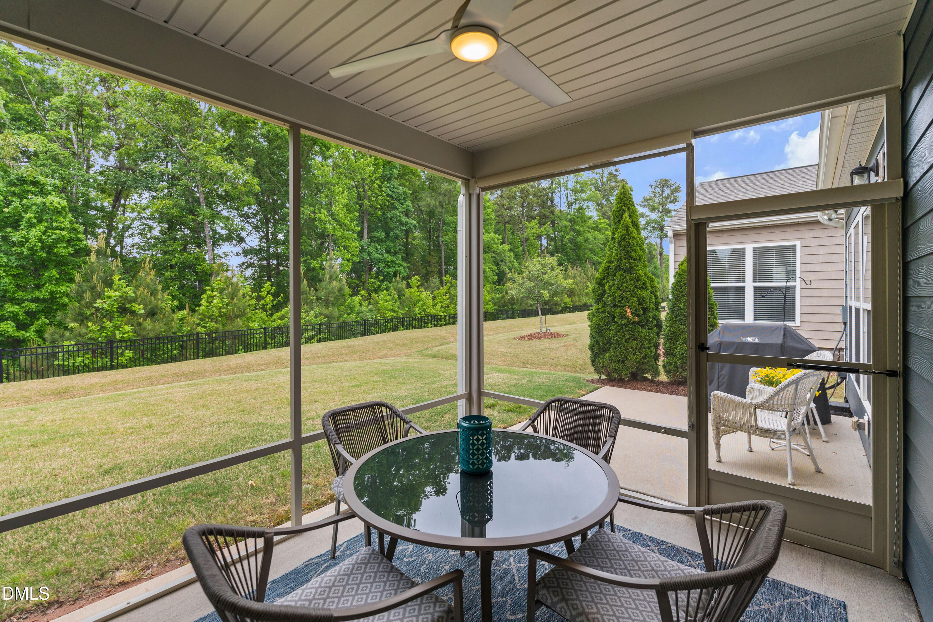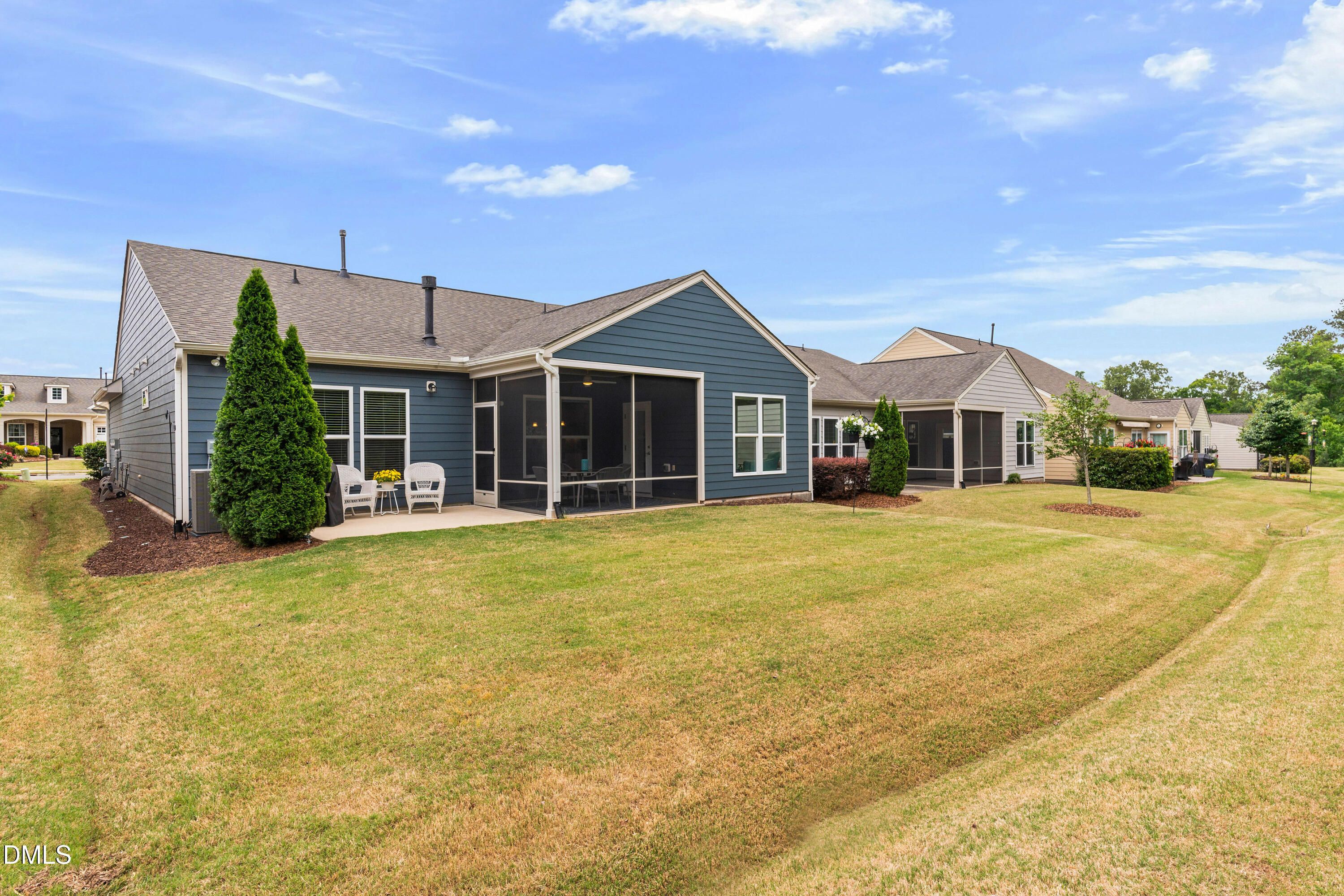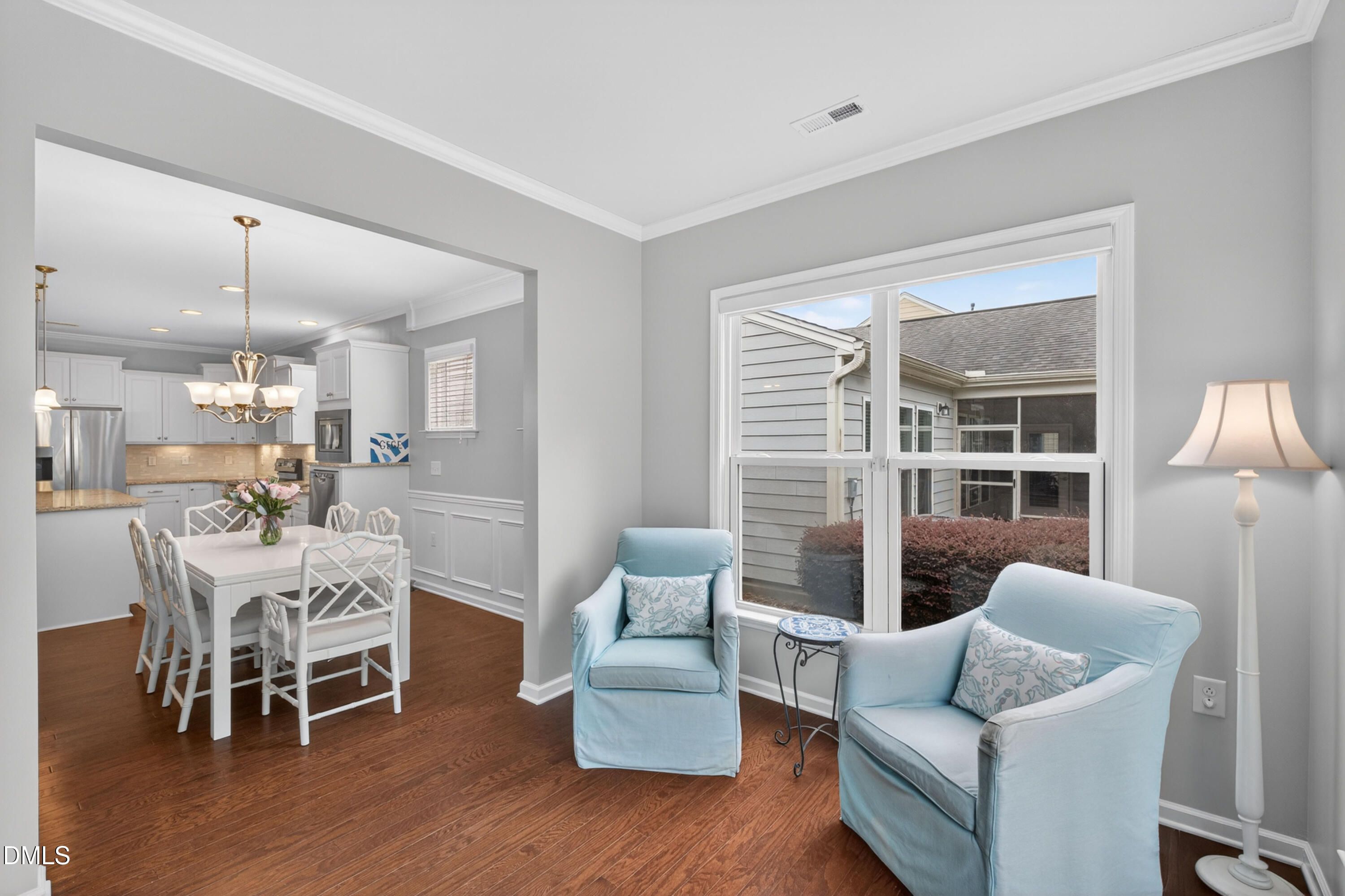 Set on a quiet street in the 55+ Del Webb Carolina Arbors community, this Abbeyville floor plan stands out for its private, wooded backyard--one of those settings that's hard to find. Well maintained with fresh interior and exterior paint, the home offers a clean, updated feel from the moment you walk in. The layout includes 2 bedrooms plus a separate office, with hardwood floors throughout the main living areas. The kitchen features white cabinetry, a modern backsplash, and a large island that serves as the focal point--perfect for casual meals or gathering with friends. The family room is centered around a floor-to-ceiling stone fireplace, adding warmth and character. From there, the home flows into the sunroom and screened porch, both positioned to take in the peaceful, tree-lined view and added privacy. The primary suite is spacious and functional, complete with a custom closet system. An oversized garage with walk-up attic access provides convenient, easy-to-reach storage. Enjoy all that Carolina Arbors has to offer, including a clubhouse, indoor and outdoor pools, fitness center, pickleball, and a wide range of clubs and activities. Convenient to Brier Creek shopping and dining, as well as RDU Airport.