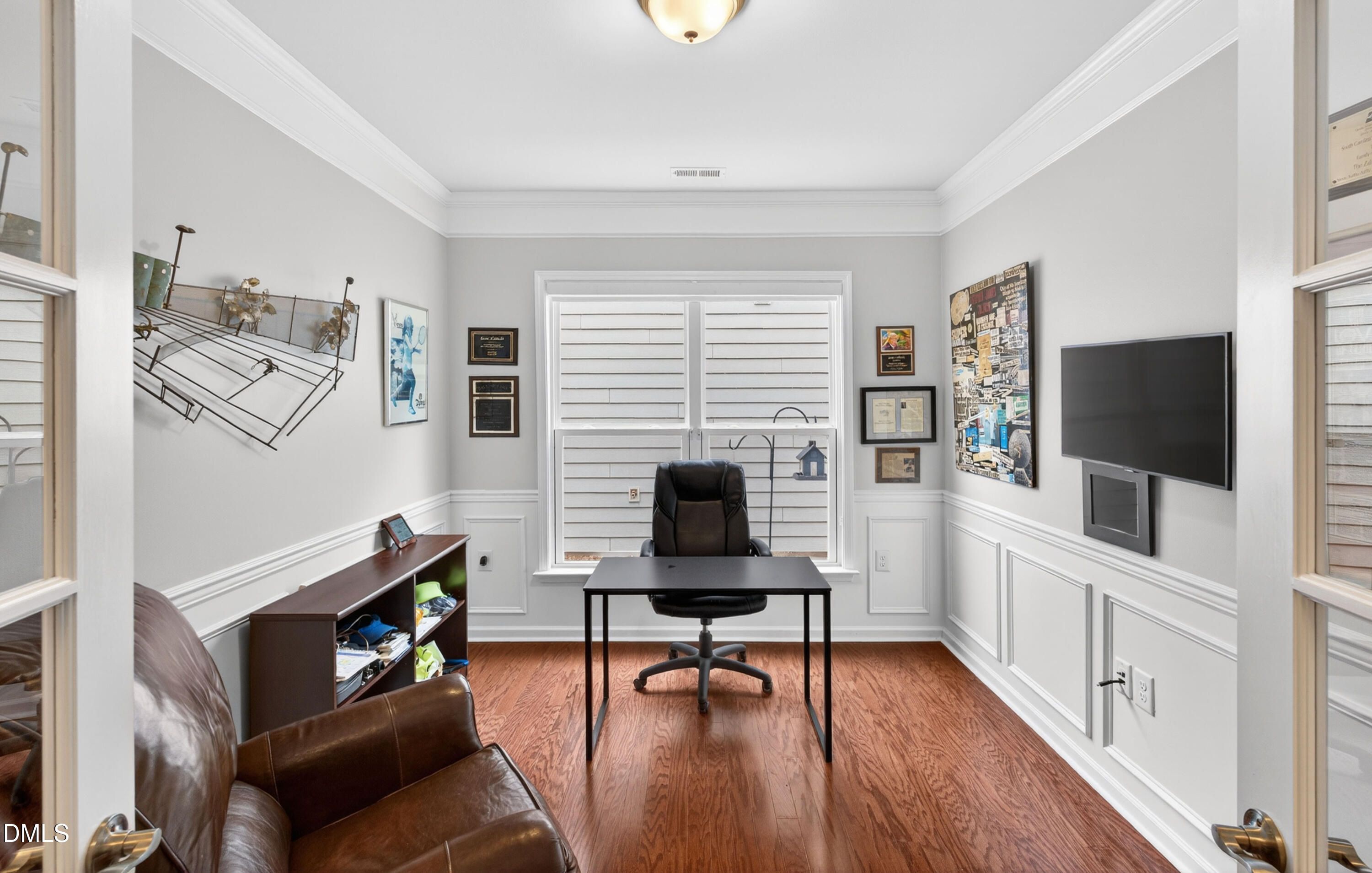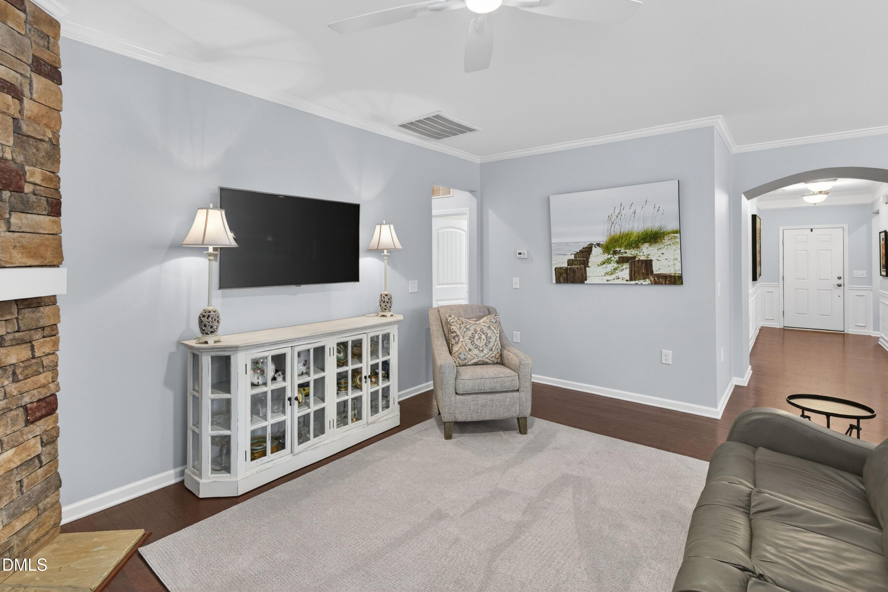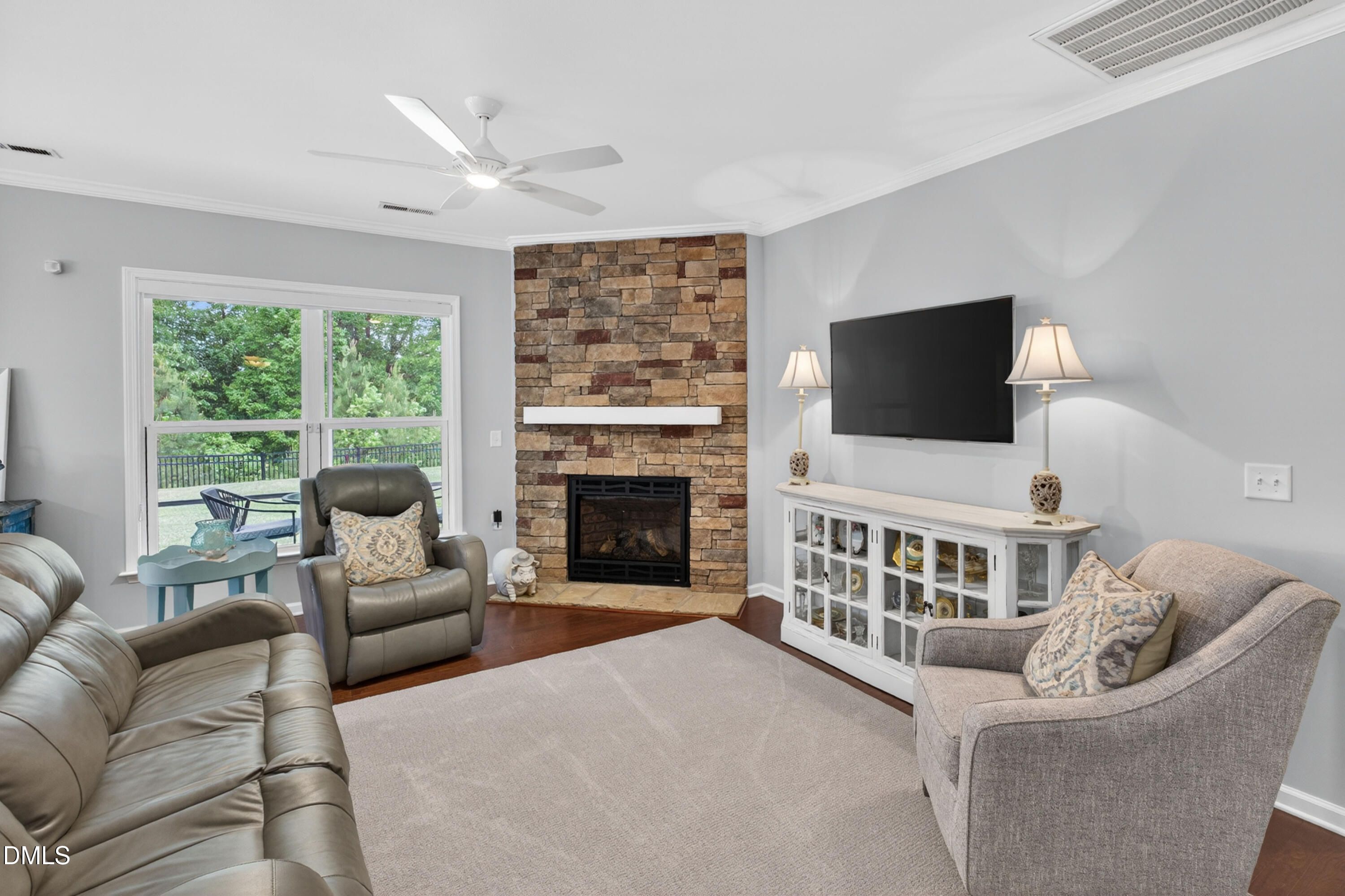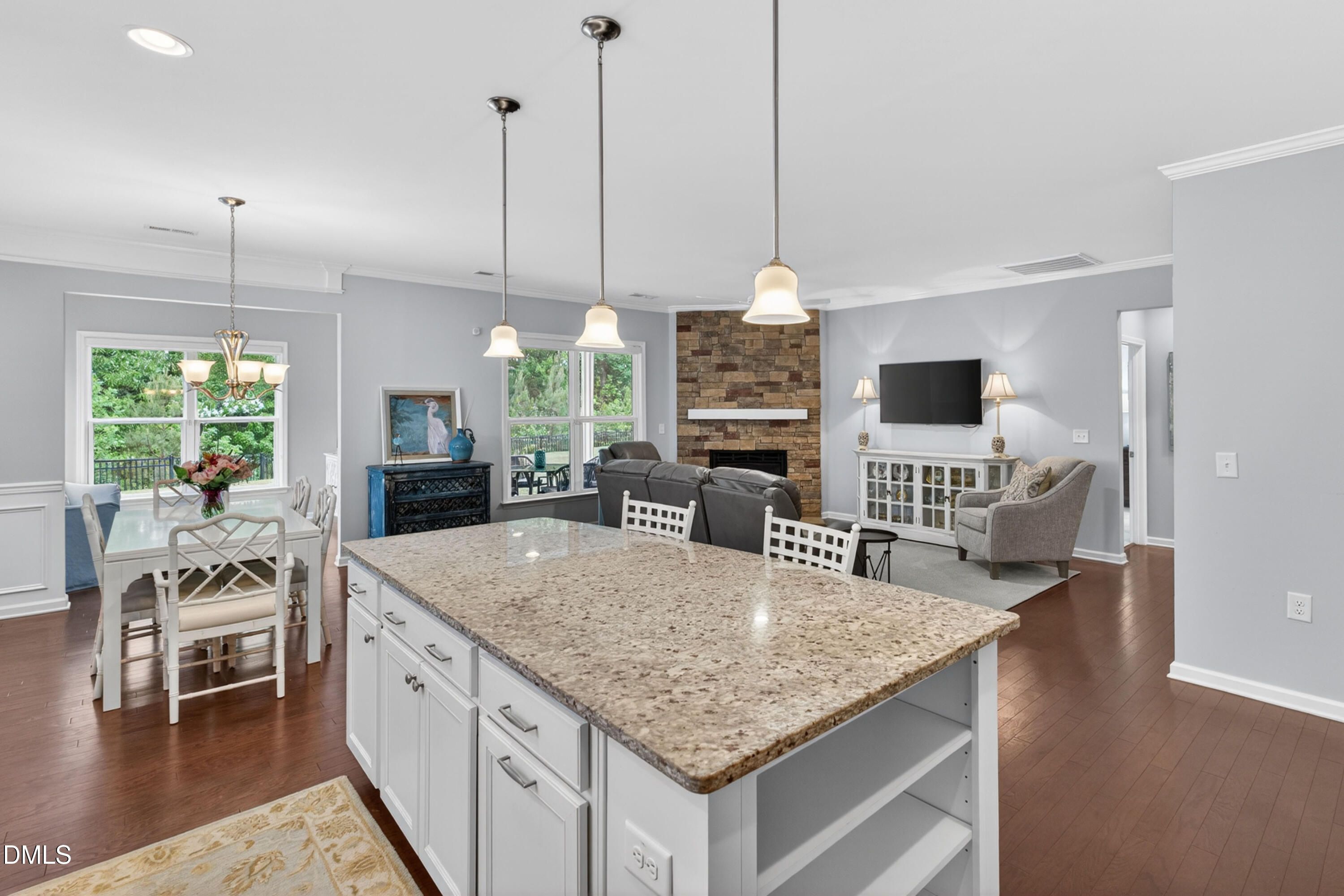 Set on a quiet street in the 55+ Del Webb Carolina Arbors community, this Abbeyville floor plan stands out for its private, wooded backyard--one of those settings that's hard to find. Well maintained with fresh interior and exterior paint, the home offers a clean, updated feel from the moment you walk in. The layout includes 2 bedrooms plus a separate office, with hardwood floors throughout the main living areas. The kitchen features white cabinetry, a modern backsplash, and a large island that serves as the focal point--perfect for casual meals or gathering with friends. The family room is centered around a floor-to-ceiling stone fireplace, adding warmth and character. From there, the home flows into the sunroom and screened porch, both positioned to take in the peaceful, tree-lined view and added privacy. The primary suite is spacious and functional, complete with a custom closet system. An oversized garage with walk-up attic access provides convenient, easy-to-reach storage. Enjoy all that Carolina Arbors has to offer, including a clubhouse, indoor and outdoor pools, fitness center, pickleball, and a wide range of clubs and activities. Convenient to Brier Creek shopping and dining, as well as RDU Airport.