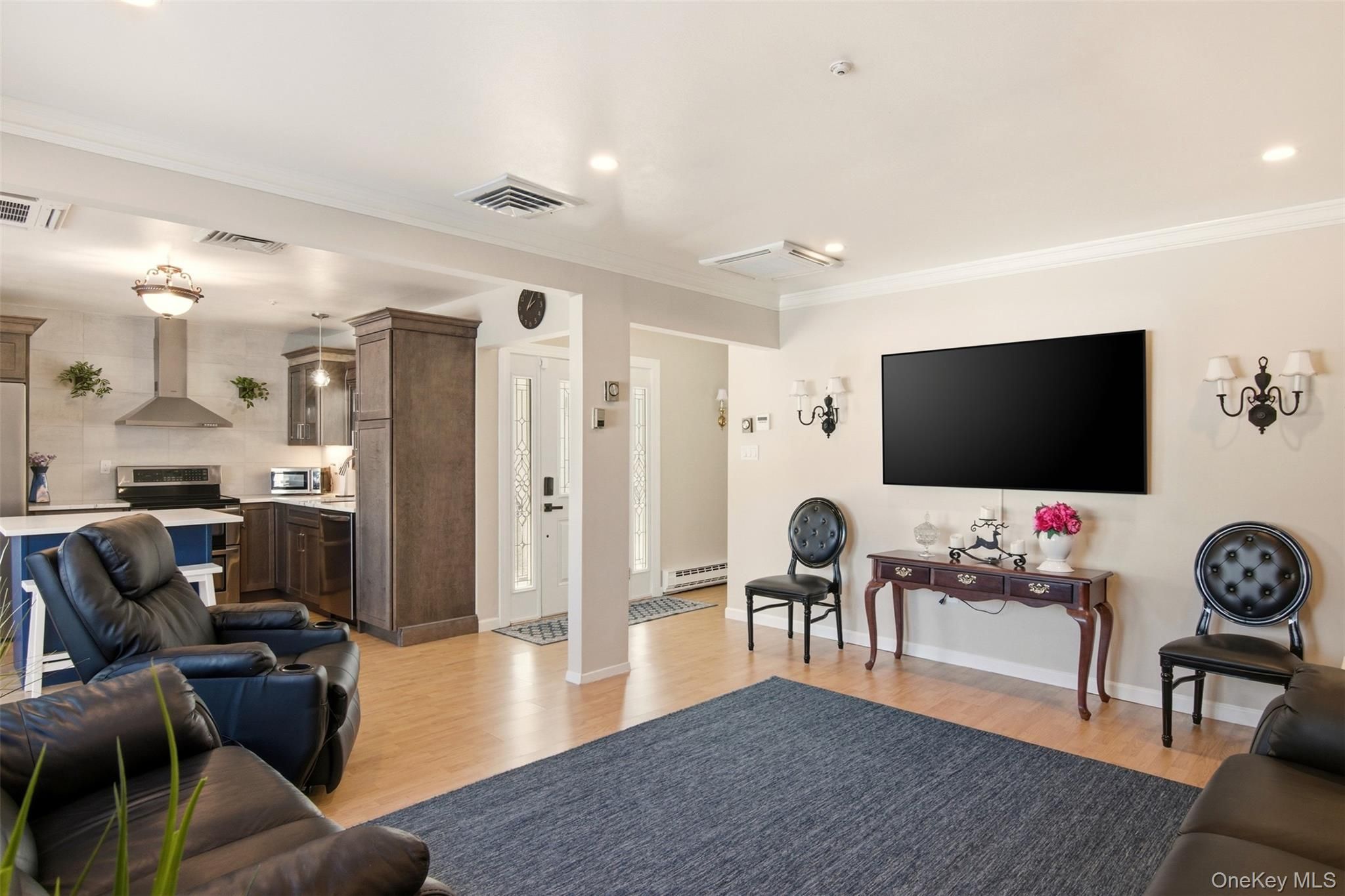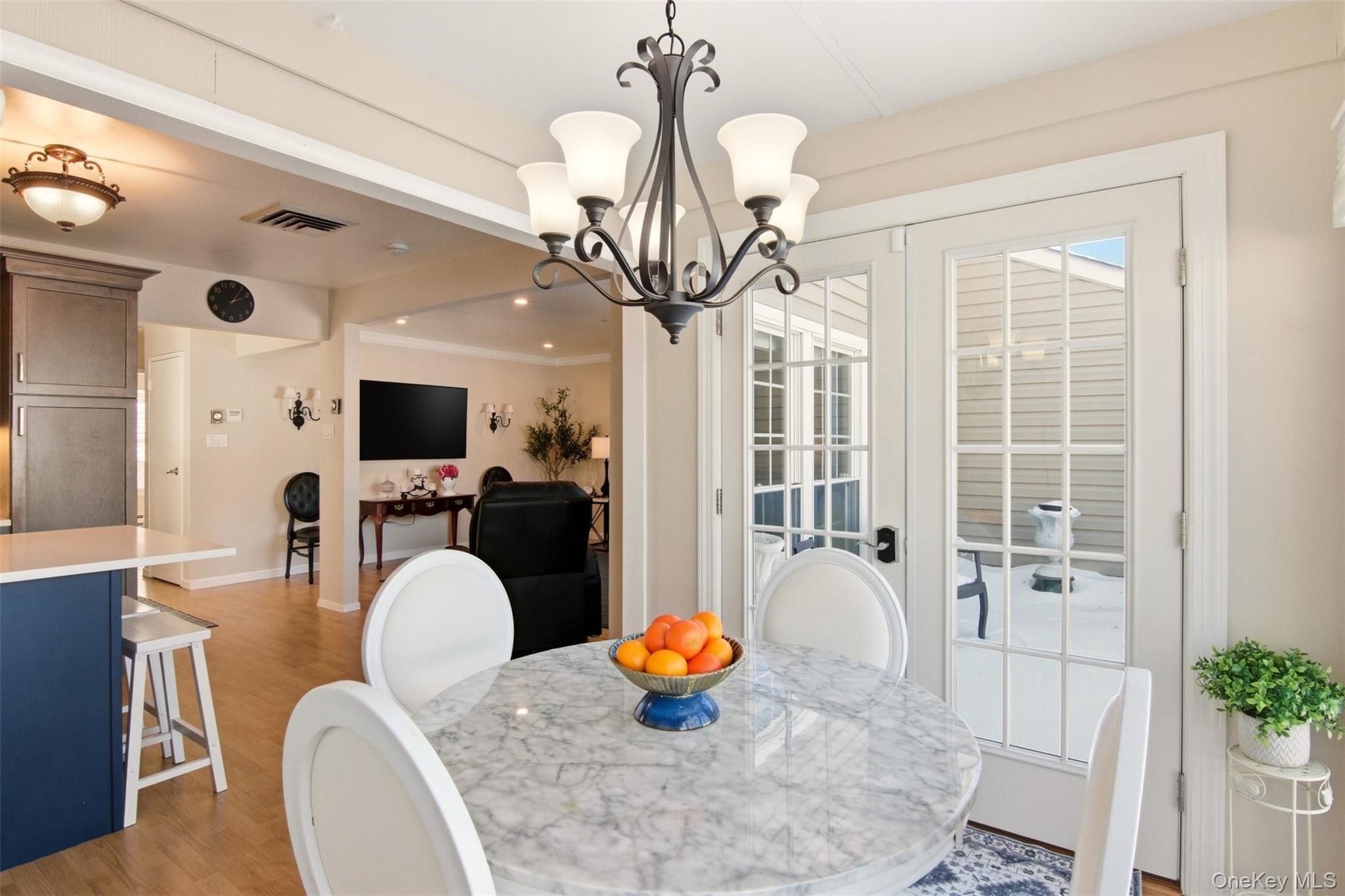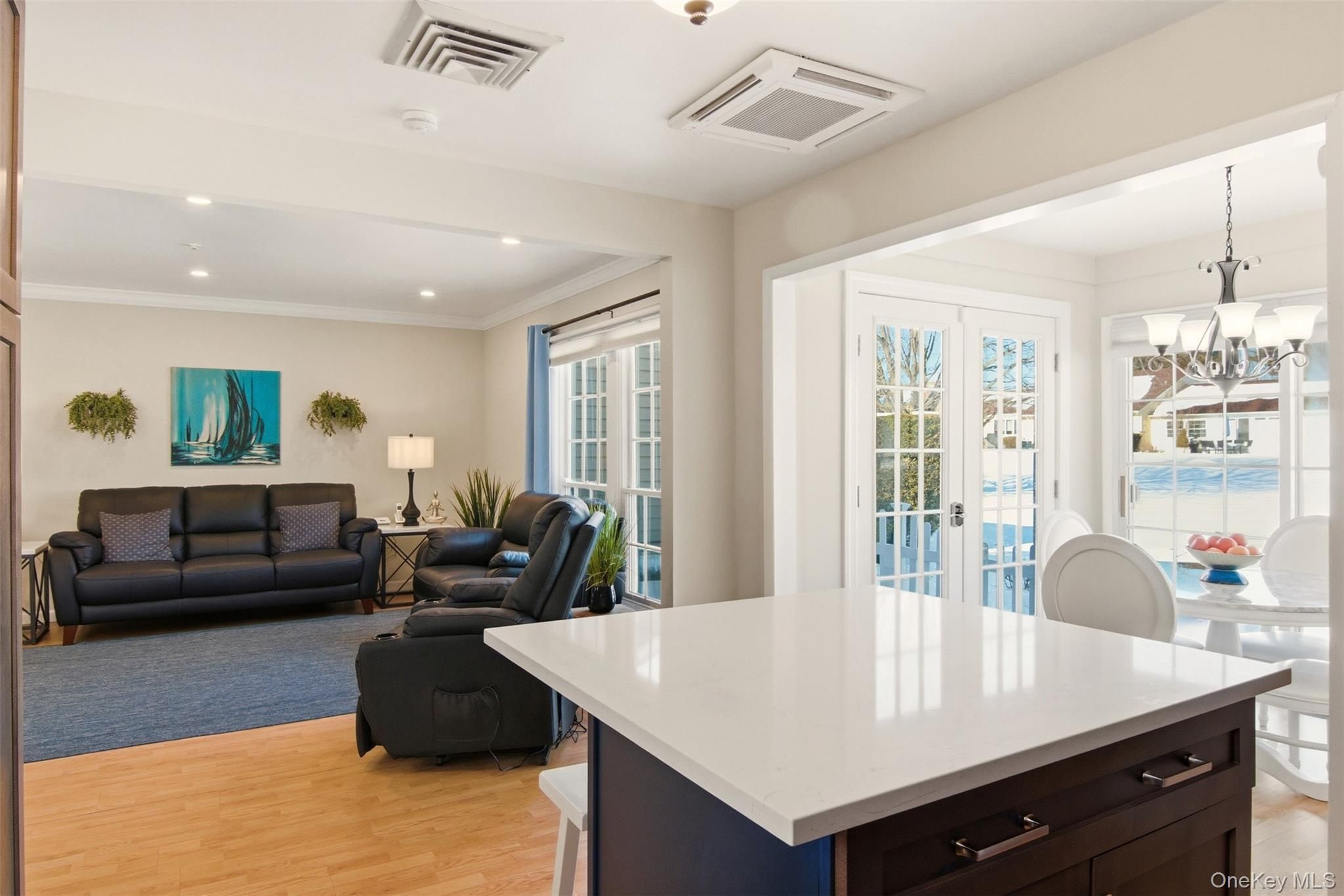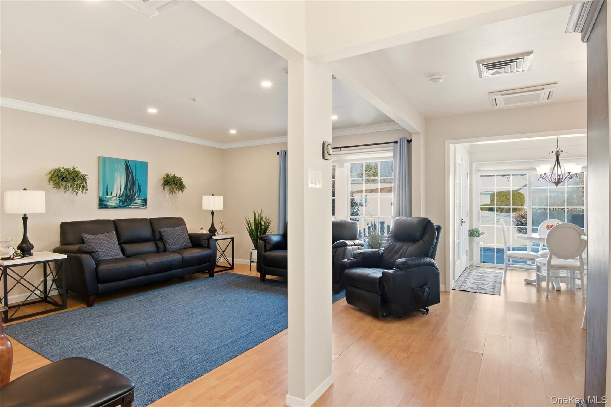 Proudly presenting this absolutely stunning, completely remodeled in 2022, 1-bedroom ground-level residence in the highly sought-after 55+ gated Woodridge/Strathmore community, offering the advantage of no one above or below for added privacy and comfort. Designed with exquisite attention to detail, this move-in ready home features an open-concept layout highlighted by newly added elegant crown moldings and recessed hi-hat lighting in the living room. The beautifully redesigned kitchen showcases quartz countertops, an enlarged island ideal for entertaining, stylish pendant lighting, Frigidaire Energy Star stainless steel appliances, stainless steel hood, striking backsplash, and custom finishes throughout. The tastefully renovated bathroom offers spa-like appeal, while the spacious bedroom includes a double closet, Hunter Douglas plantation shutters, and ceiling fan. Major improvements completed during the 2022 remodel include a 3-zone Fujitsu HVAC system with wall thermostat for heating and cooling, new breaker box with surge protector, new hot water heater, French doors leading to a private patio, new fencing and rear siding, along with washer/dryer. Enjoy the added peace of mind and convenience of a brand new roof installed in 2023. Two dedicated driveway parking spots are located directly in front of the home. This pet-friendly community offers the freedom to enjoy your home alongside your four-legged companions. Community amenities include clubhouse, pool, tennis, bocce, handball, and garden access. Common charges include cable tv, internet, water, snow removal, gutter cleaning, lawn maintenance, pool, clubhouse and common area upkeep, facilities trash collection and sewer fees. This rare and refined opportunity is in one of the area’s most desirable, active and peaceful adult communities. This home includes an extraordinary volume of upgrades, premium features and extensive renovations for this price point. A must see in person to truly appreciate.