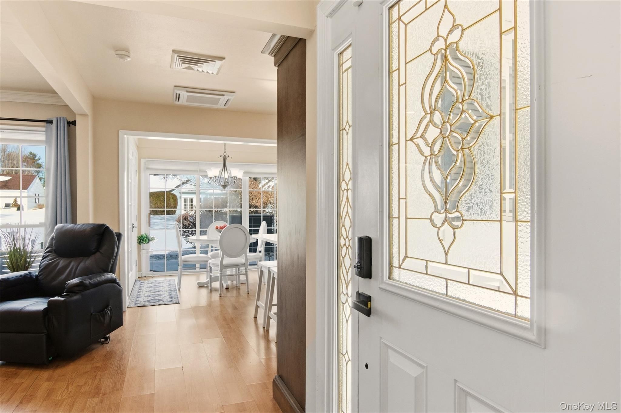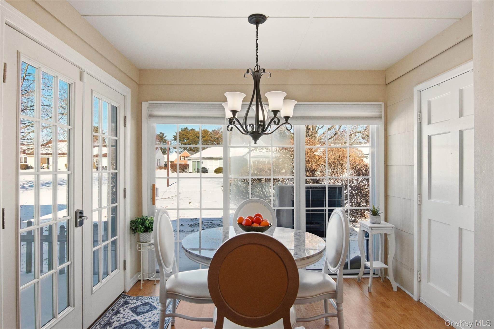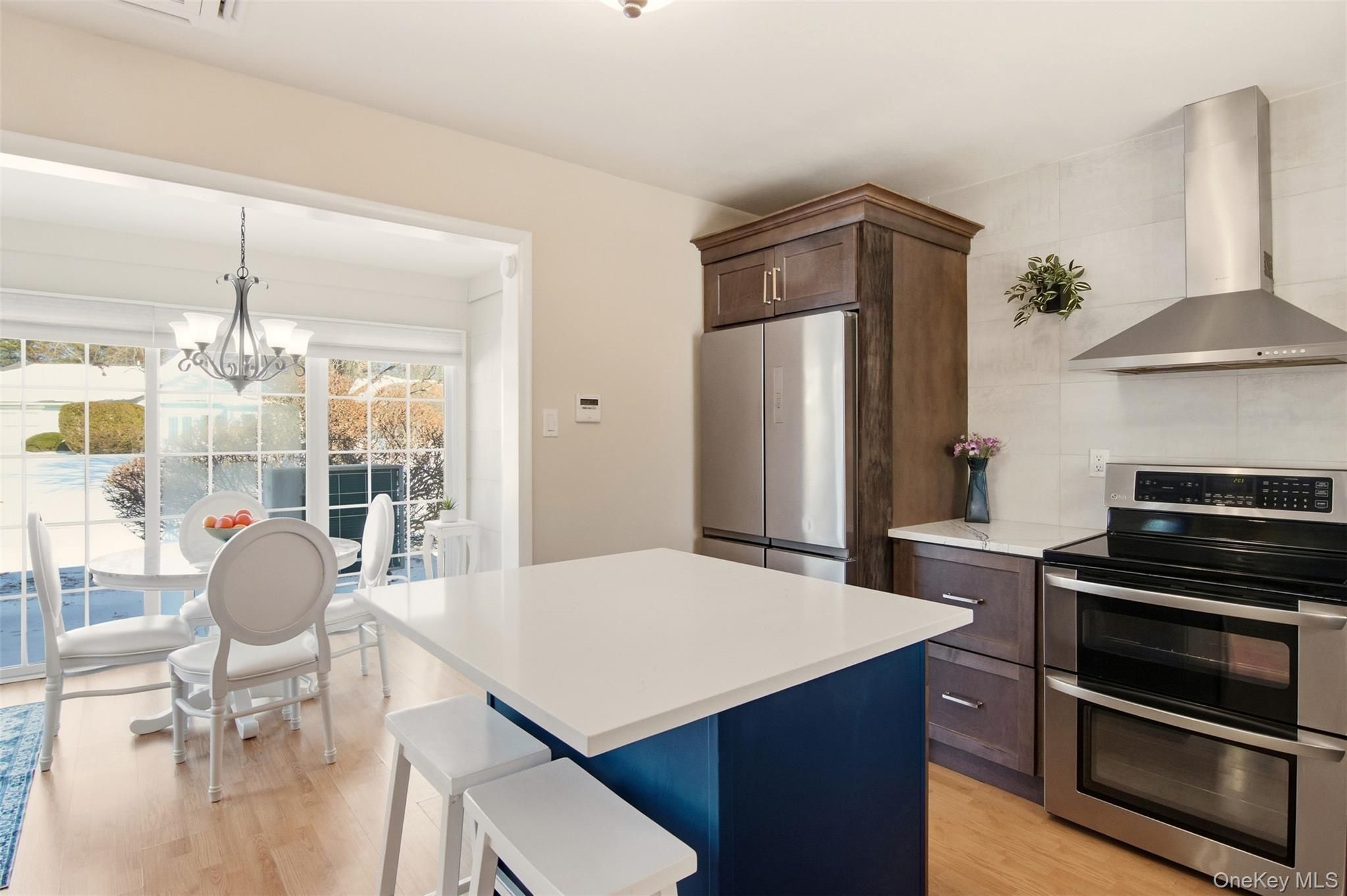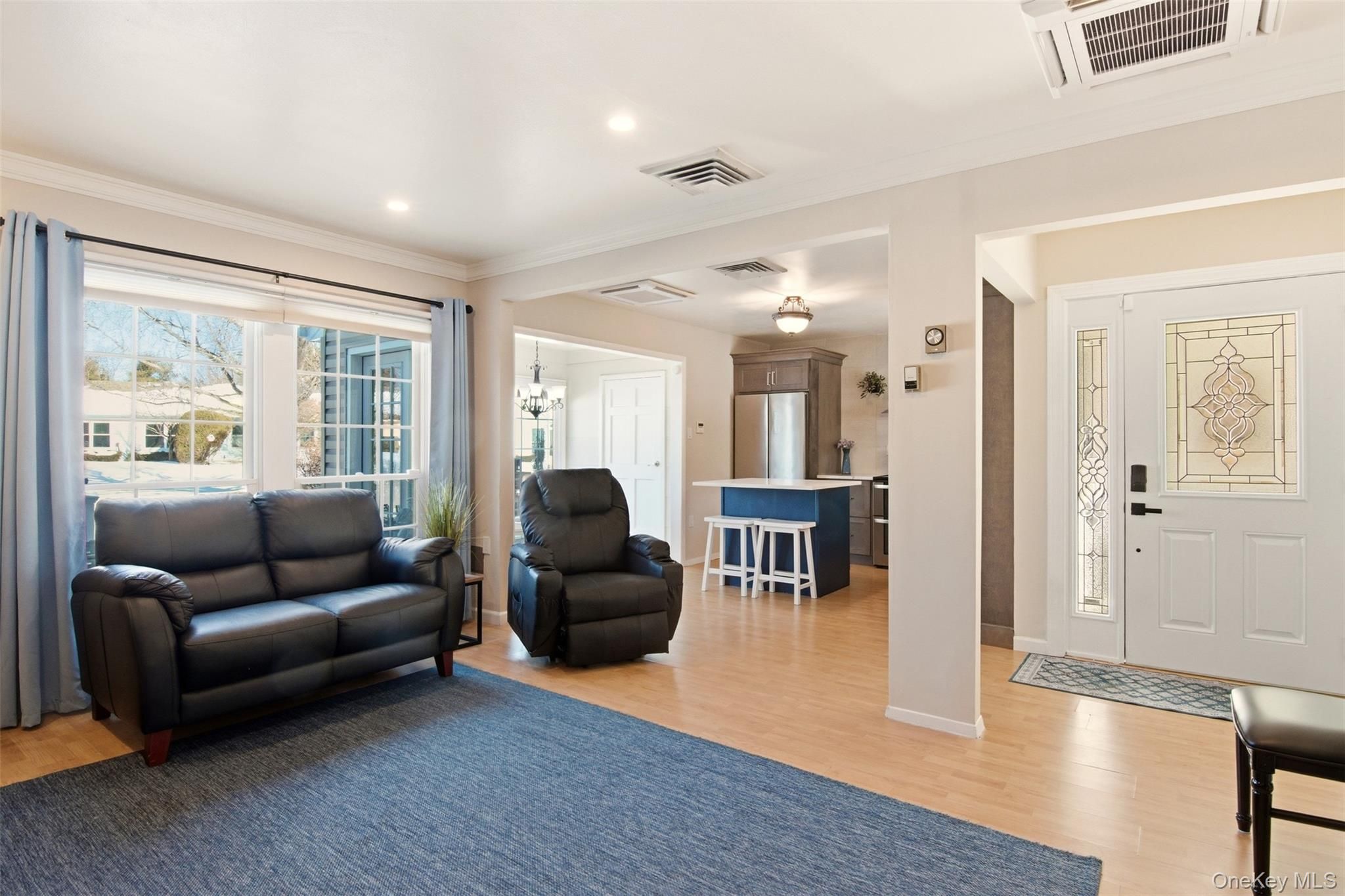 Proudly presenting this absolutely stunning, completely remodeled in 2022, 1-bedroom ground-level residence in the highly sought-after 55+ gated Woodridge/Strathmore community, offering the advantage of no one above or below for added privacy and comfort. Designed with exquisite attention to detail, this move-in ready home features an open-concept layout highlighted by newly added elegant crown moldings and recessed hi-hat lighting in the living room. The beautifully redesigned kitchen showcases quartz countertops, an enlarged island ideal for entertaining, stylish pendant lighting, Frigidaire Energy Star stainless steel appliances, stainless steel hood, striking backsplash, and custom finishes throughout. The tastefully renovated bathroom offers spa-like appeal, while the spacious bedroom includes a double closet, Hunter Douglas plantation shutters, and ceiling fan. Major improvements completed during the 2022 remodel include a 3-zone Fujitsu HVAC system with wall thermostat for heating and cooling, new breaker box with surge protector, new hot water heater, French doors leading to a private patio, new fencing and rear siding, along with washer/dryer. Enjoy the added peace of mind and convenience of a brand new roof installed in 2023. Two dedicated driveway parking spots are located directly in front of the home. This pet-friendly community offers the freedom to enjoy your home alongside your four-legged companions. Community amenities include clubhouse, pool, tennis, bocce, handball, and garden access. Common charges include cable tv, internet, water, snow removal, gutter cleaning, lawn maintenance, pool, clubhouse and common area upkeep, facilities trash collection and sewer fees. This rare and refined opportunity is in one of the area’s most desirable, active and peaceful adult communities. This home includes an extraordinary volume of upgrades, premium features and extensive renovations for this price point. A must see in person to truly appreciate.