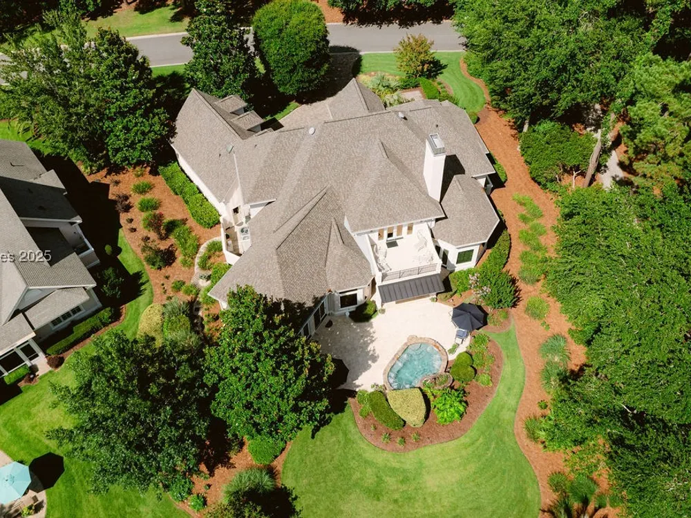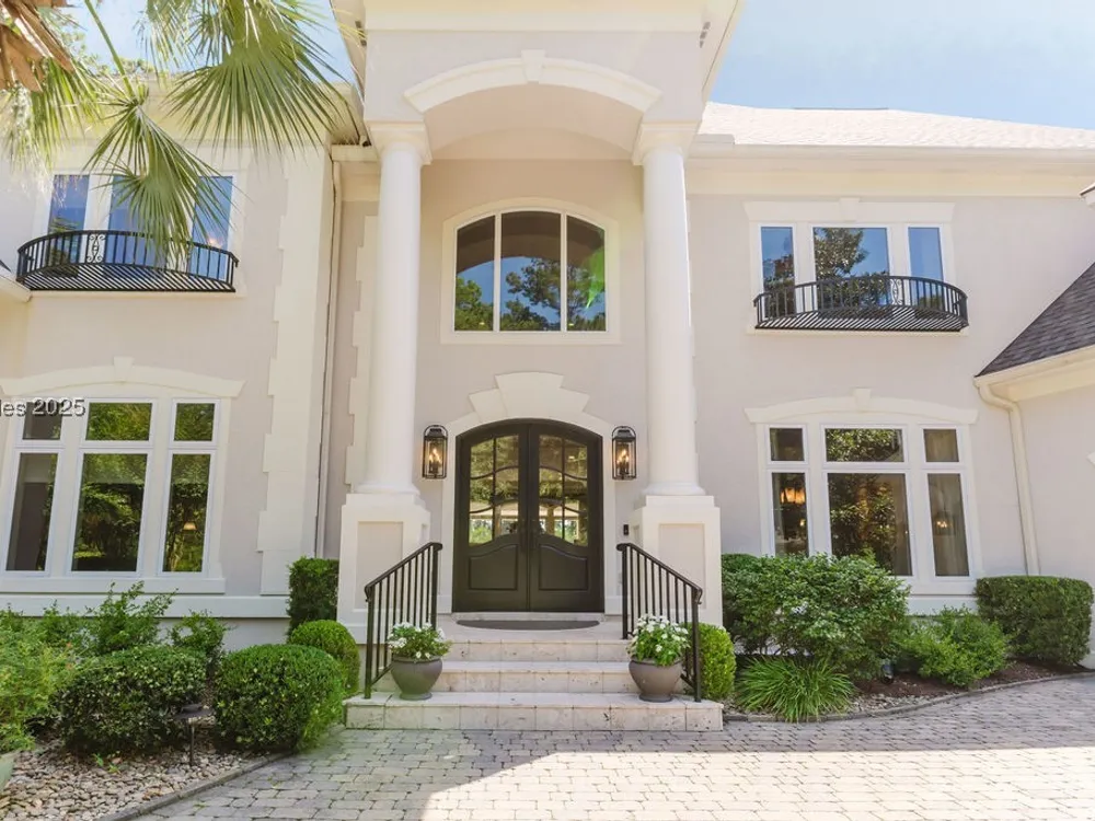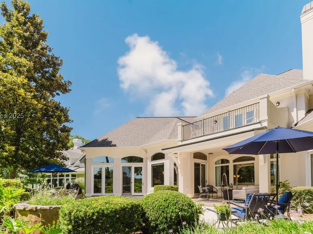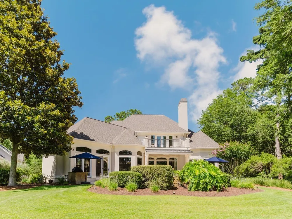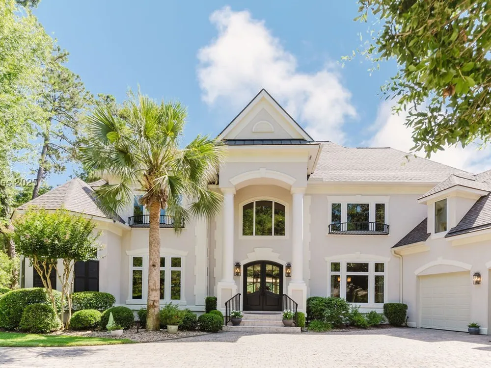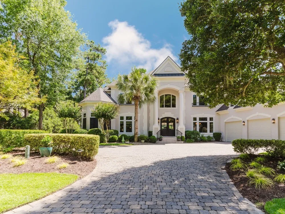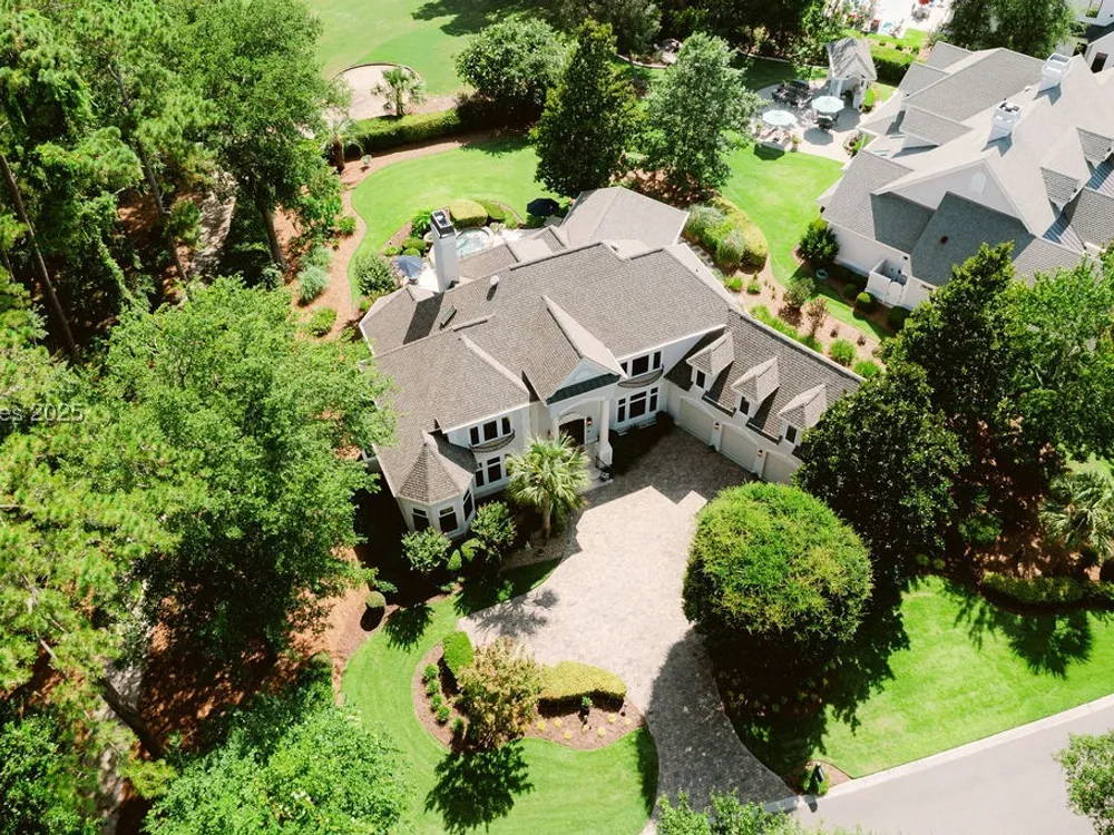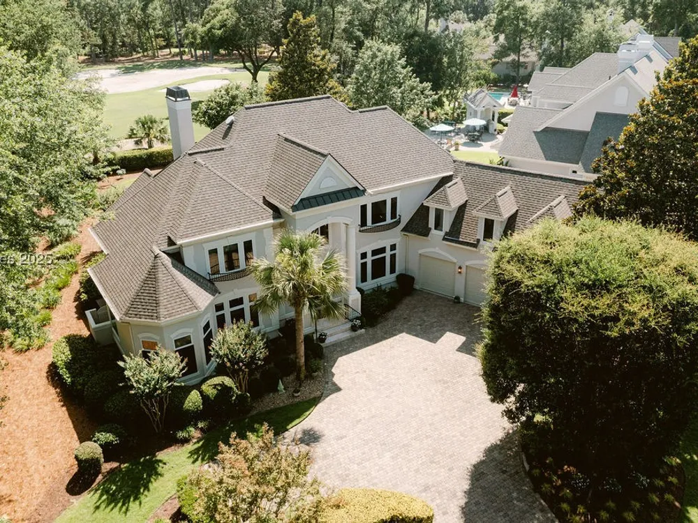 One of the best lots in The Golf Club w/ views of 16th green from front & LONG range 15th green views beyond your luxury stone SPOOL and grassy backyard. Live fencing surrounds this palatial property w/ balcony views. Making meals and memories in your gourmet kitchen or relaxing in your media room loft gives everyone ample space to enjoy. Create storied nights w/friends in your luxurious living areas and later retire in the bonus room above 3 car garage which houses all of your toys! The master suite w/ dedicated office space on primary opens to your outdoor playground with large covered veranda to take advantage of our lowcountry lifestyle.